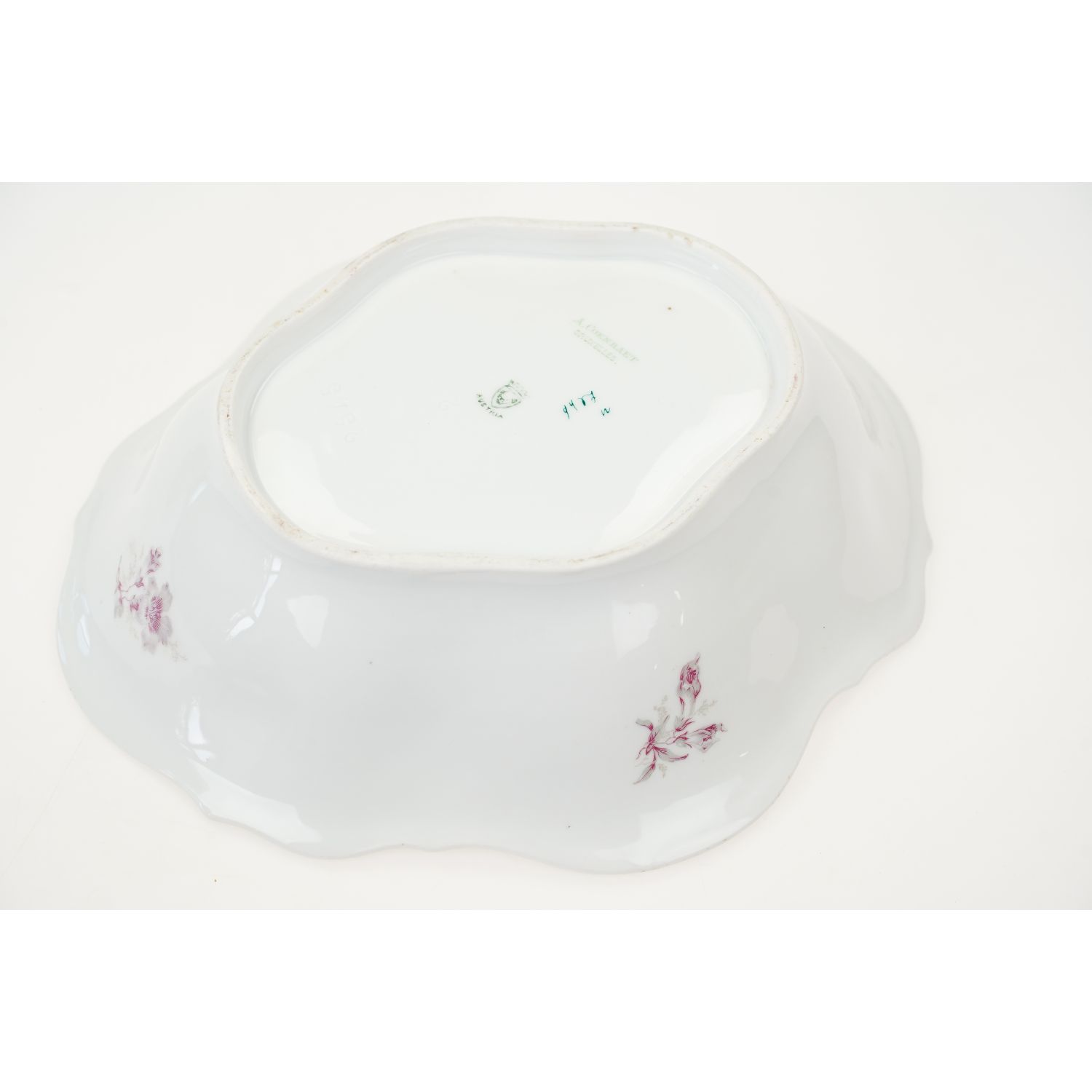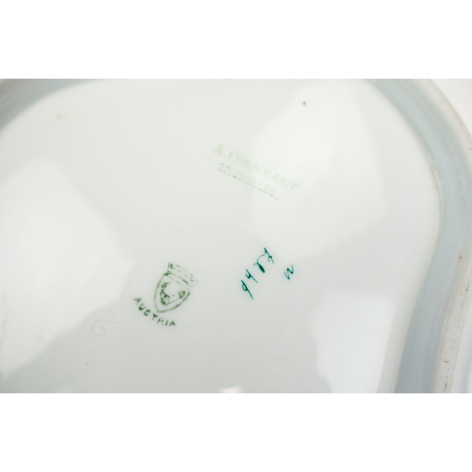 Pochodzi z Porzellanmanufaktur Gebr. Haidinger z Austrii z Elbogen, (dzisiaj Loket na terenie Czech). Sygnowana znakiem stosowanym od 1891. Obok znak A. Coenradet Bruxelles.