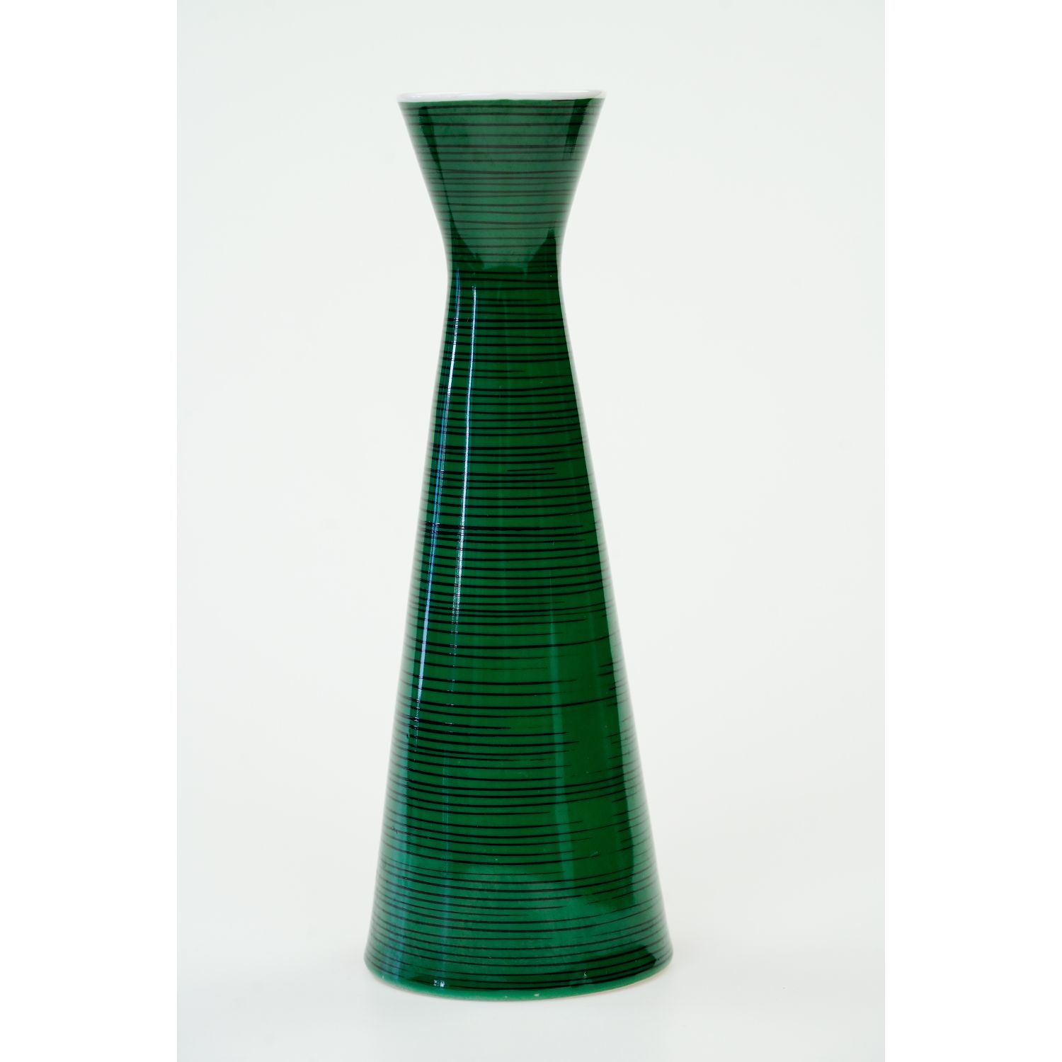 Porcelana biała dość prostej formie, pokryta od zewnątrz zieloną malaturą z nieregularnymi, cienkimi, poziomymi paseczkami. Formą przypomina wazon Lidia projektu W. Potackiego dla Ćmielówa.