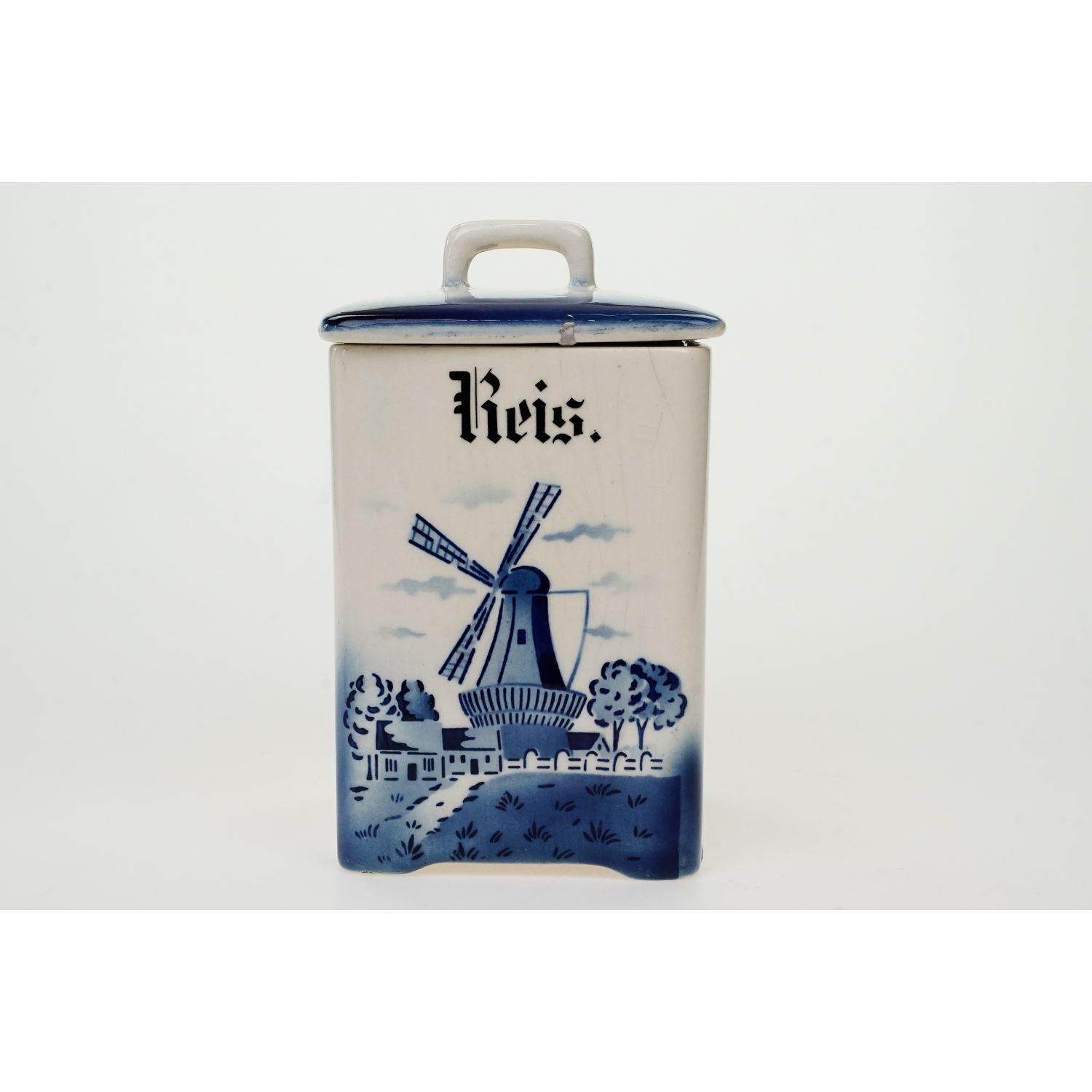 Pochodzi z Niemiec. Od spodu tłoczony napis Hedwig. Całość w odcieniu złamanej bieli. Z jednej strony zdobiony pejzażem z wiatrakiem naniesionym metodą natryskową za pomocą szablonu. Całość w niebieskich odcieniach. Nad krajobrazem napis w języku niemieckim "Reis" (ryż).