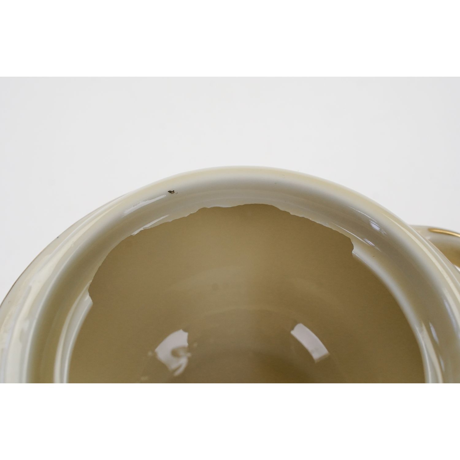 Stan dostateczny+, duży ubytek na wewnętrznym kołnierzyku, który chowa się pod pokrywą. Na podstawie mały ubytek.
