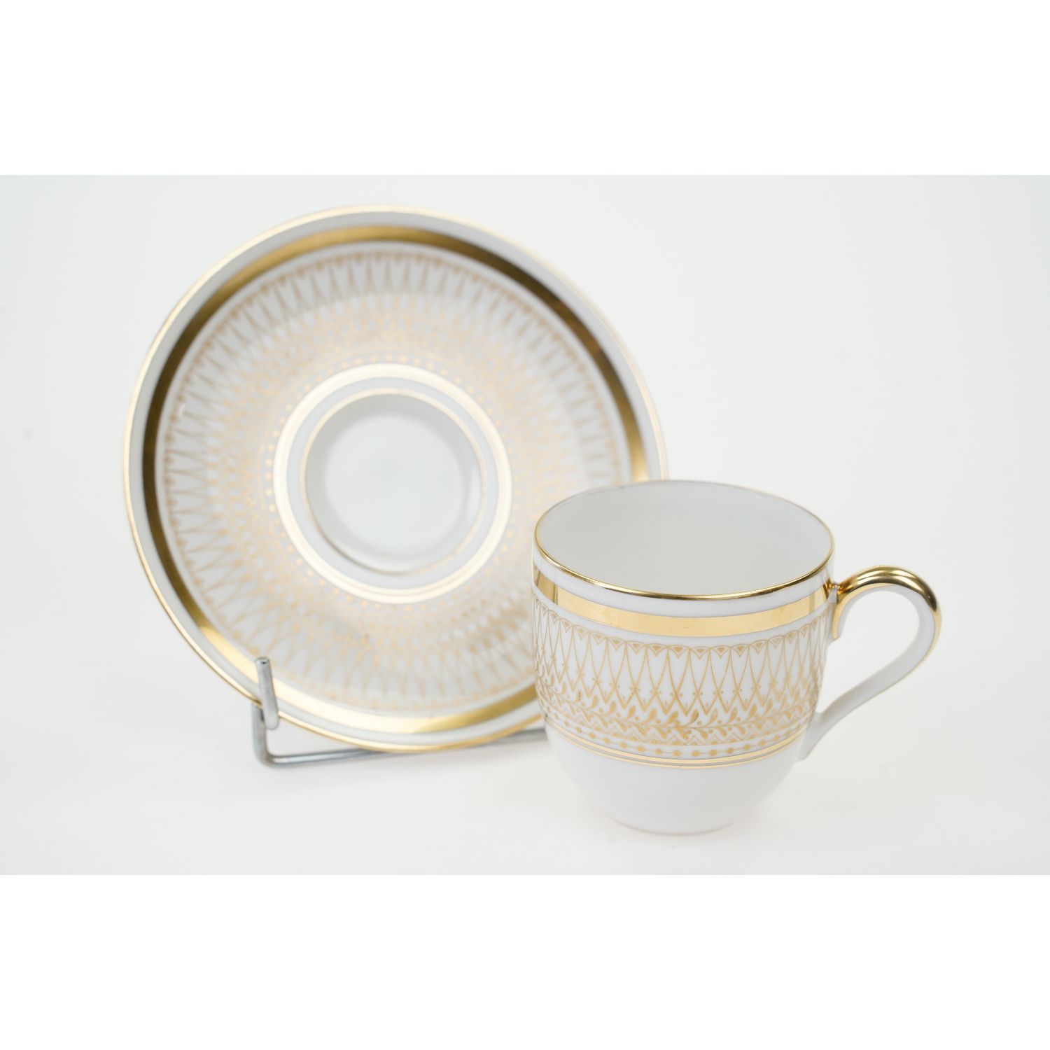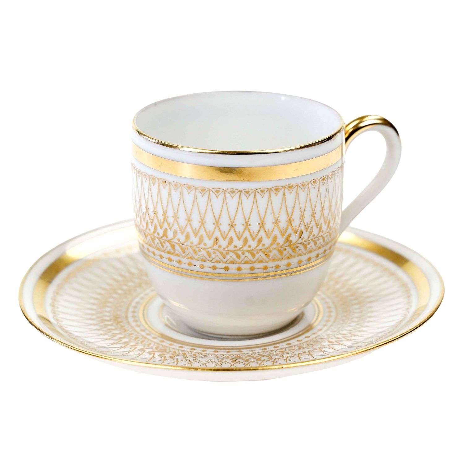 Wspaniała, mała filiżanka ze spodkiem szczodrze złocona.