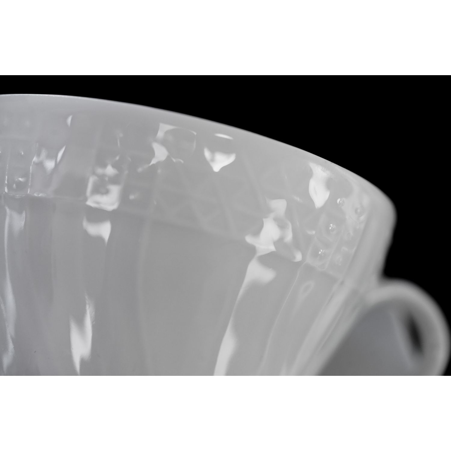 Pochodzi z wytwórni porcelany Porzellanfabriken Lorenz Hutschernreuther AG z Selb. Sygnowany znakiem stosowanym w latach 70-tych XX wieku z dopiskiem "Form Dresden". Wykonany jest z porcelany w kolorze białym, zdobiony cudownymi reliefami.