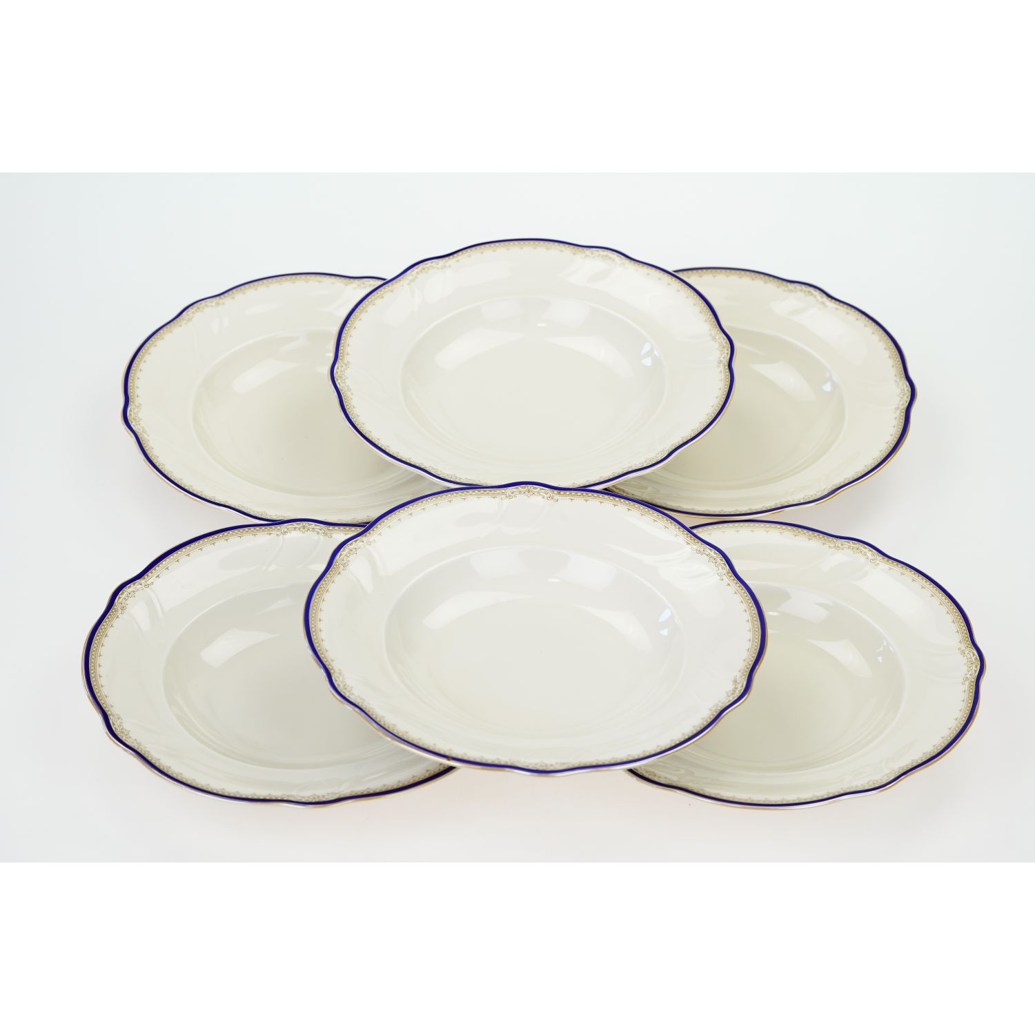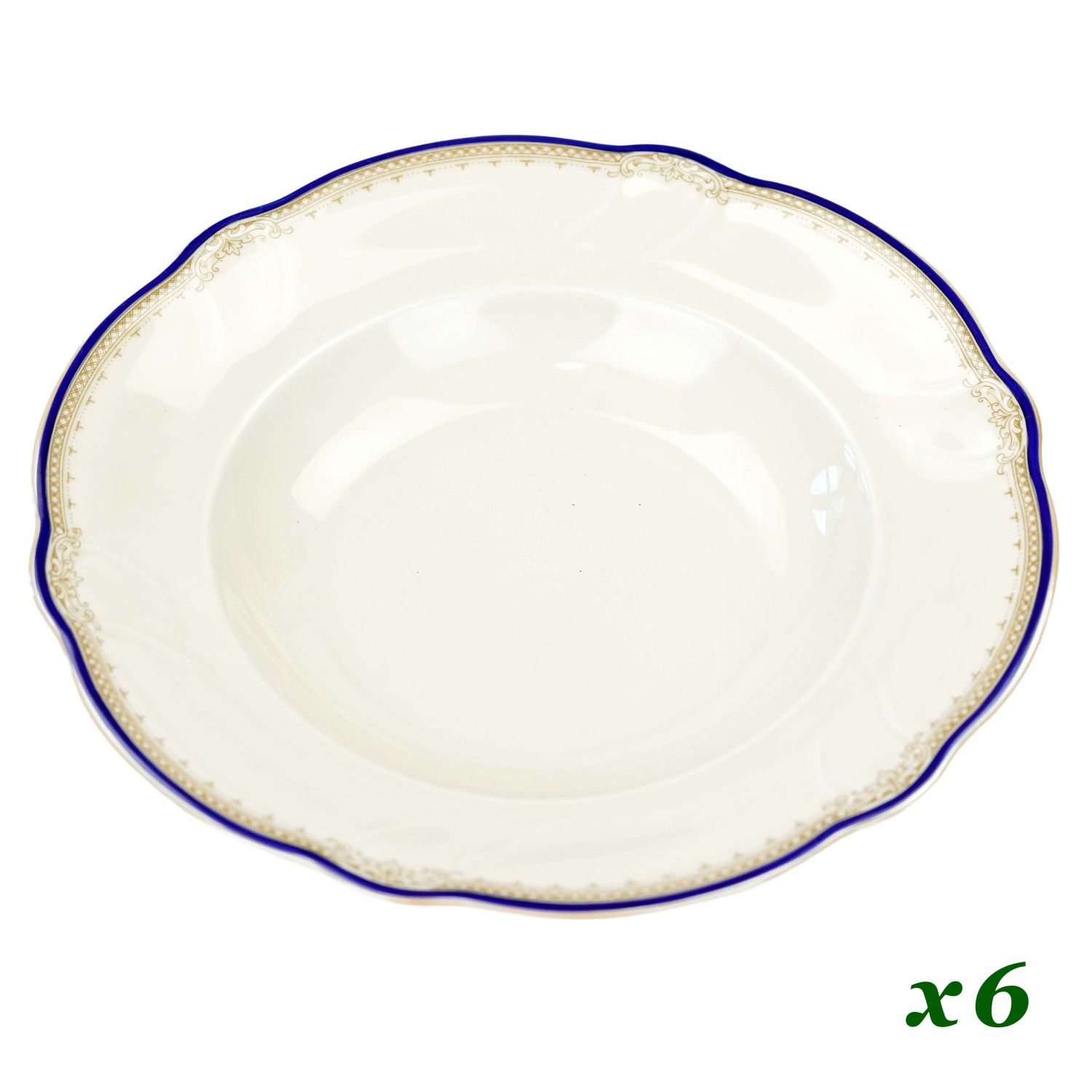 HUTSCHENREUTHER KOŚĆ SŁONIOWA I SZAFIROWO-ZŁOTY OTOK KOMPLET 6 TALERZY OBIADOWYCH DO ZUPY
