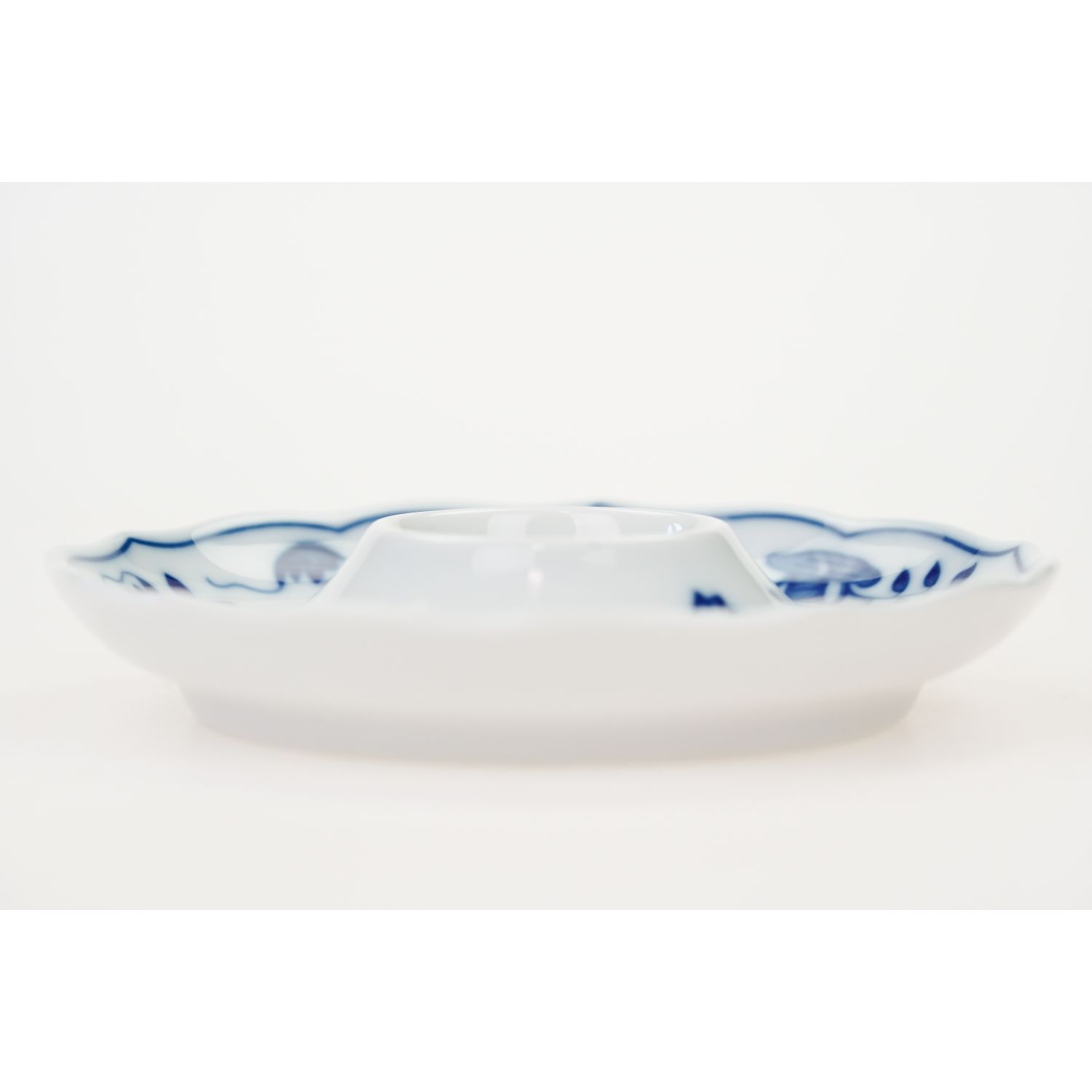 Pochodzi z Bawarii z Selb z Porzellanfabriken Lorenz Hutschernreuther AG. Fason Maria Theresia. Porcelana w odcieniu bieli, dekorowana kobaltowym wzorem potocznie nazywanym cebulowym. Klasyczna forma.