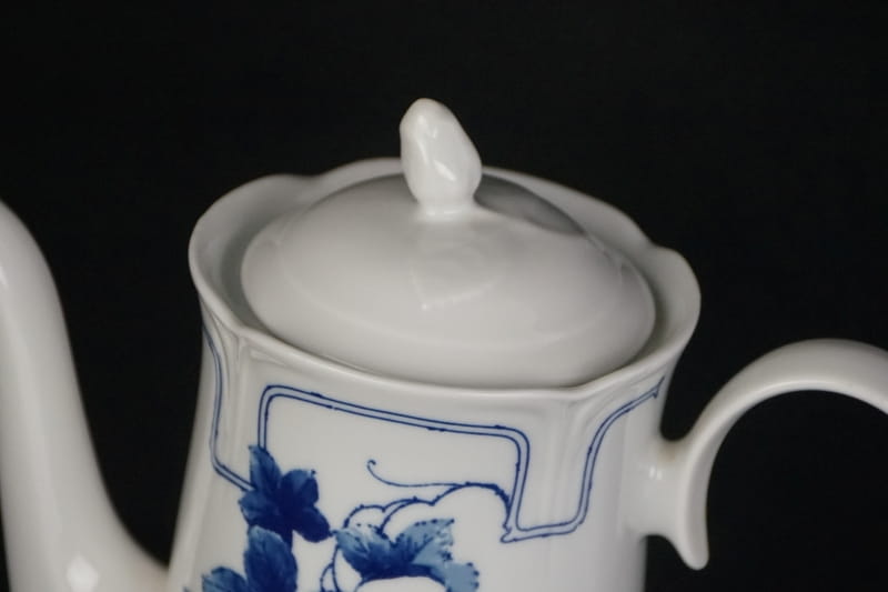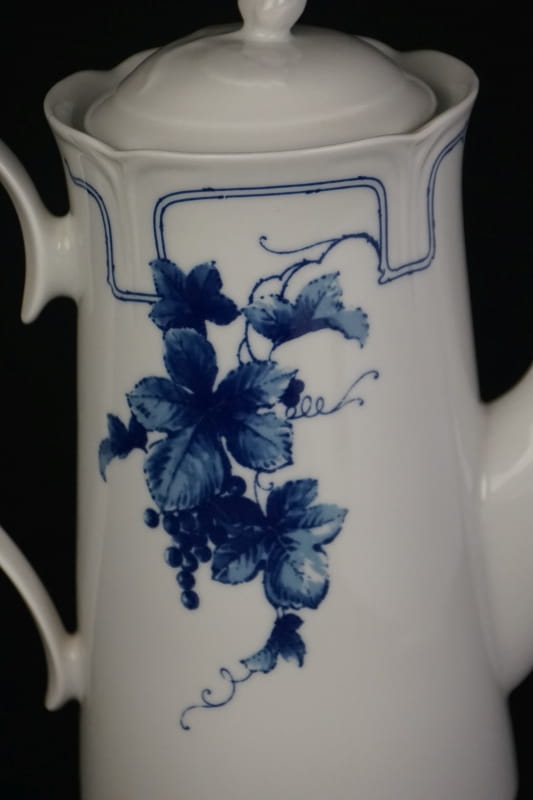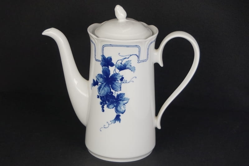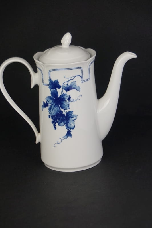 Elegancki, smukły dzbanek do kawy w kobaltowe winogrona.
