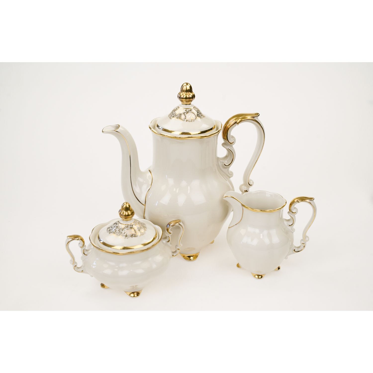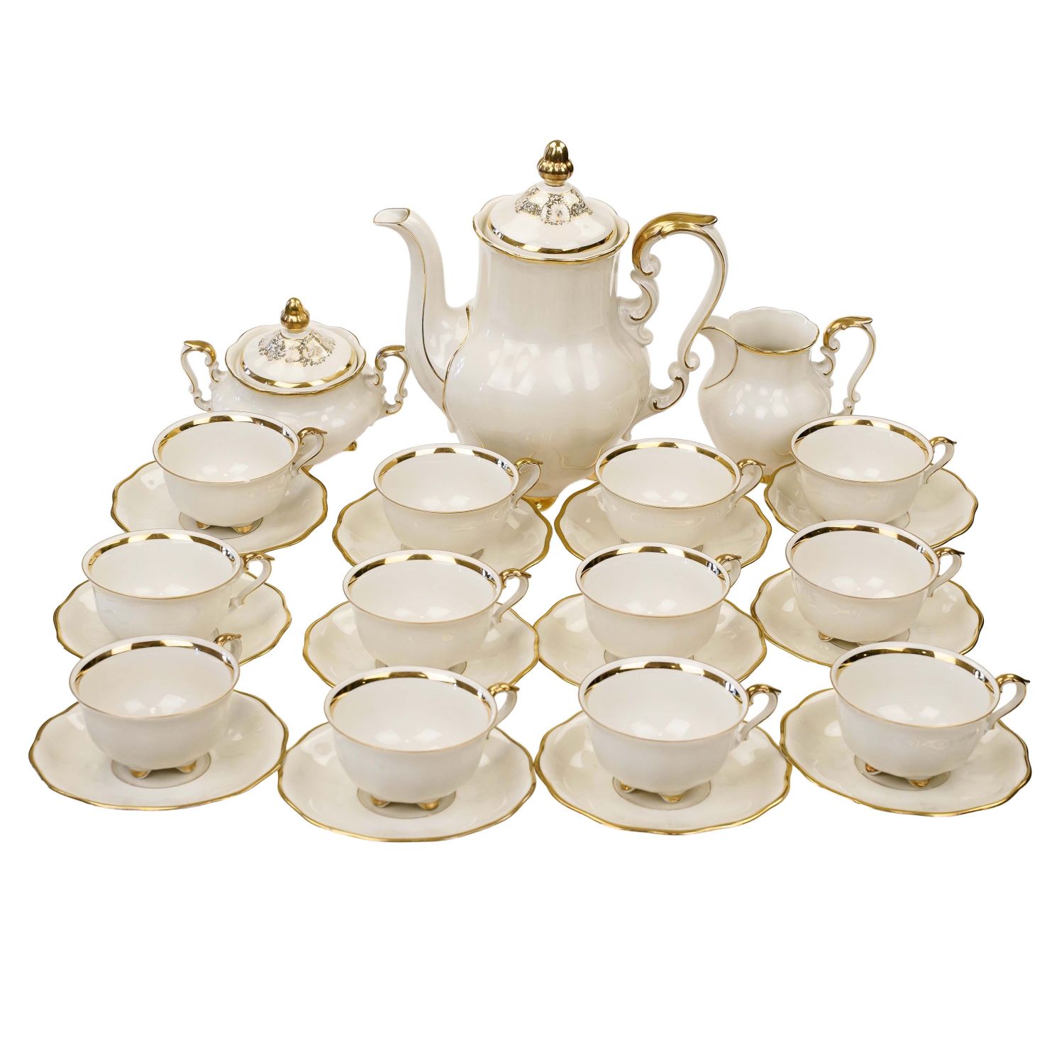 Elegancki serwis do kawy dla 12 osób w kolorze kości słoniowej.