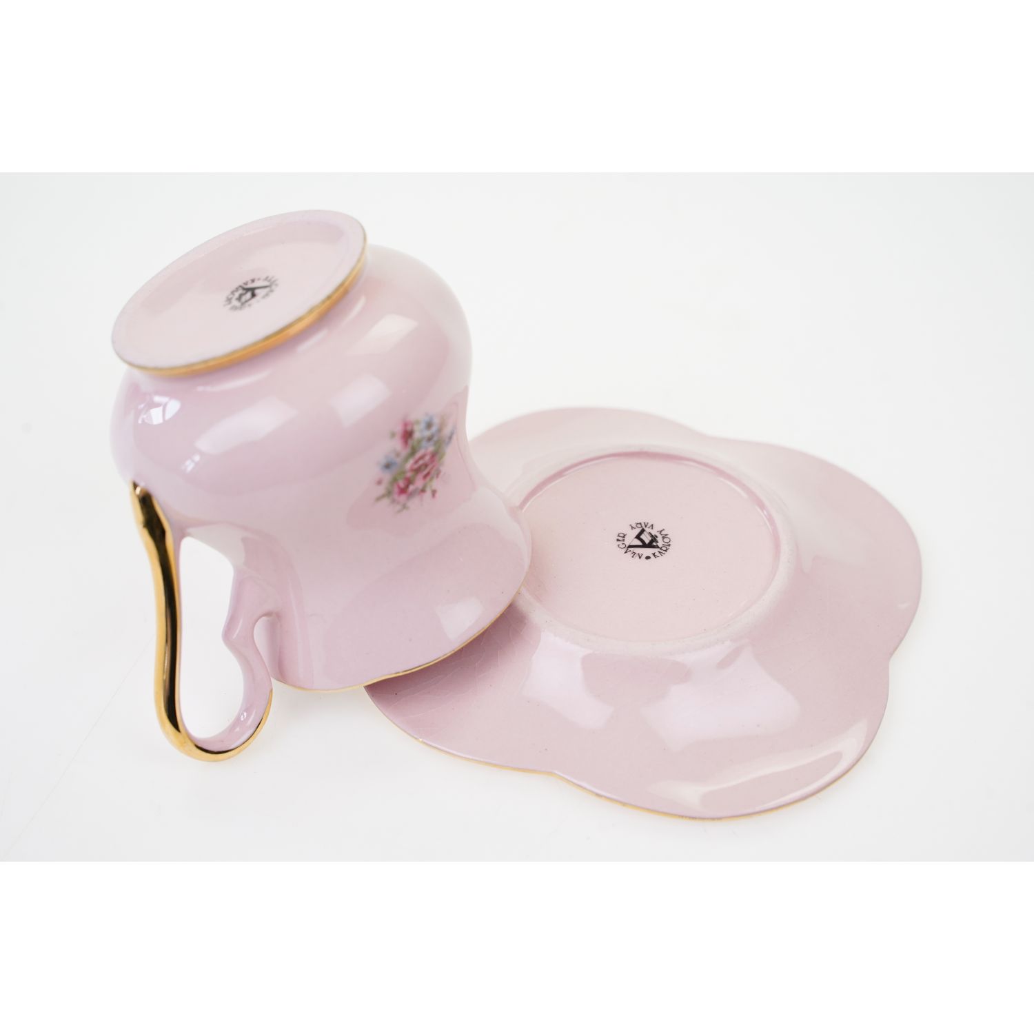 KARLOVY VARY RÓŻOWA PORCELANA FILIŻANKA ZE SPODKIEM KOLOROWE KWIATY