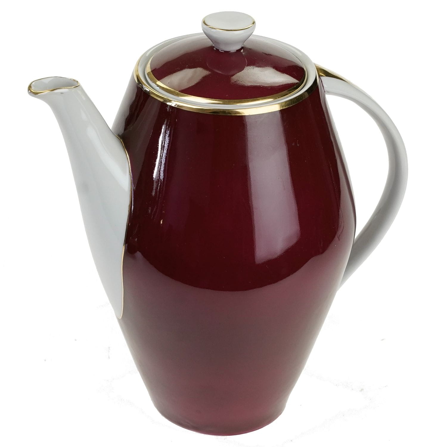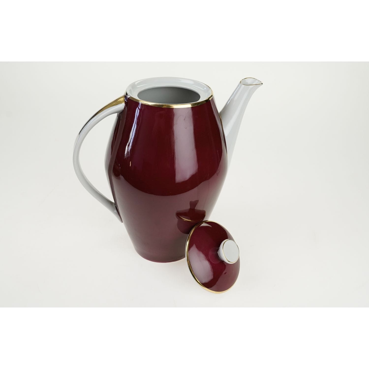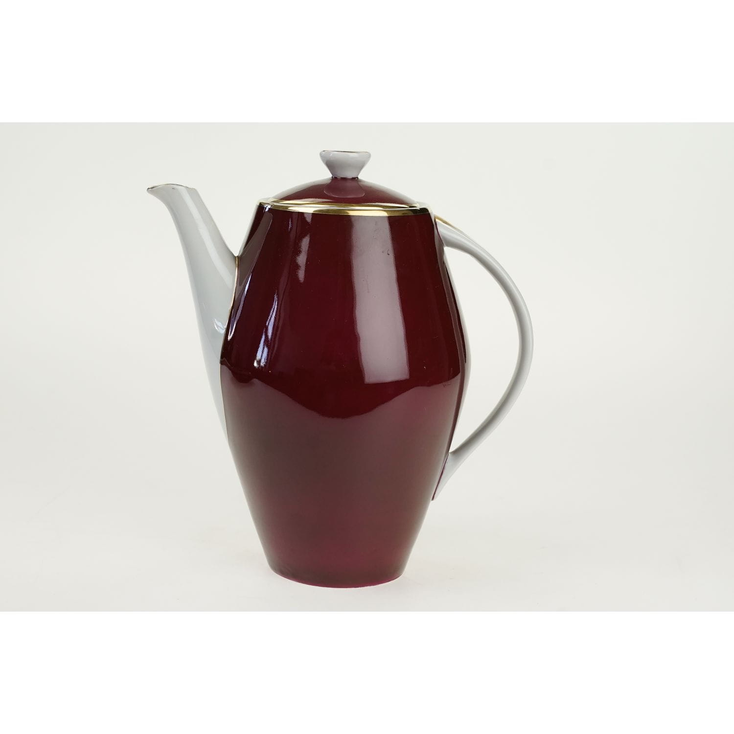 Projektowany w latach 1956-57 rok dla Zakładów Porcelany Stołowej "Karolina" w Jaworzynie Śląskiej. Porcelana w odcieniu bieli, prawie w całości pokryta bordową malaturą, a sznytu dodają jej złocenia.