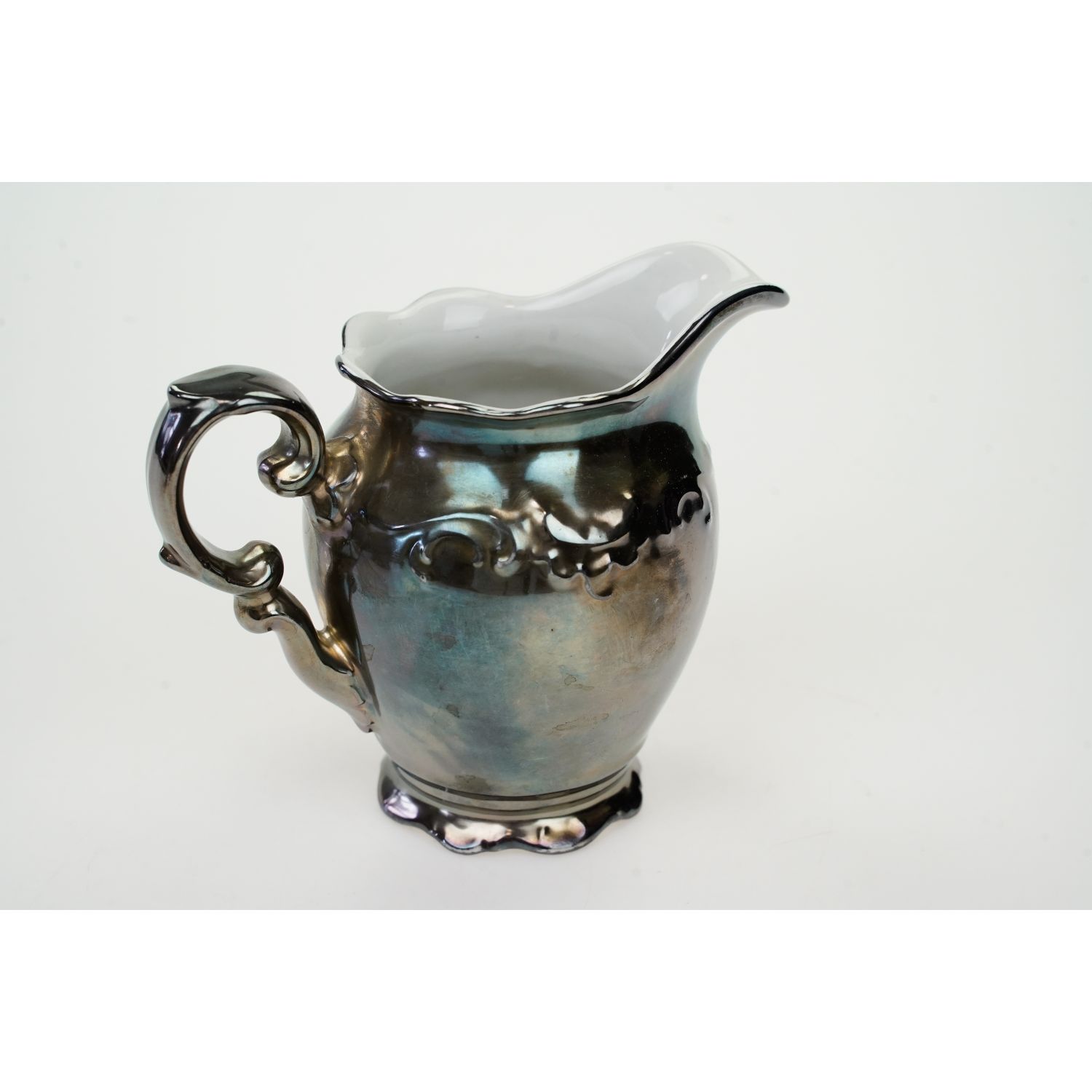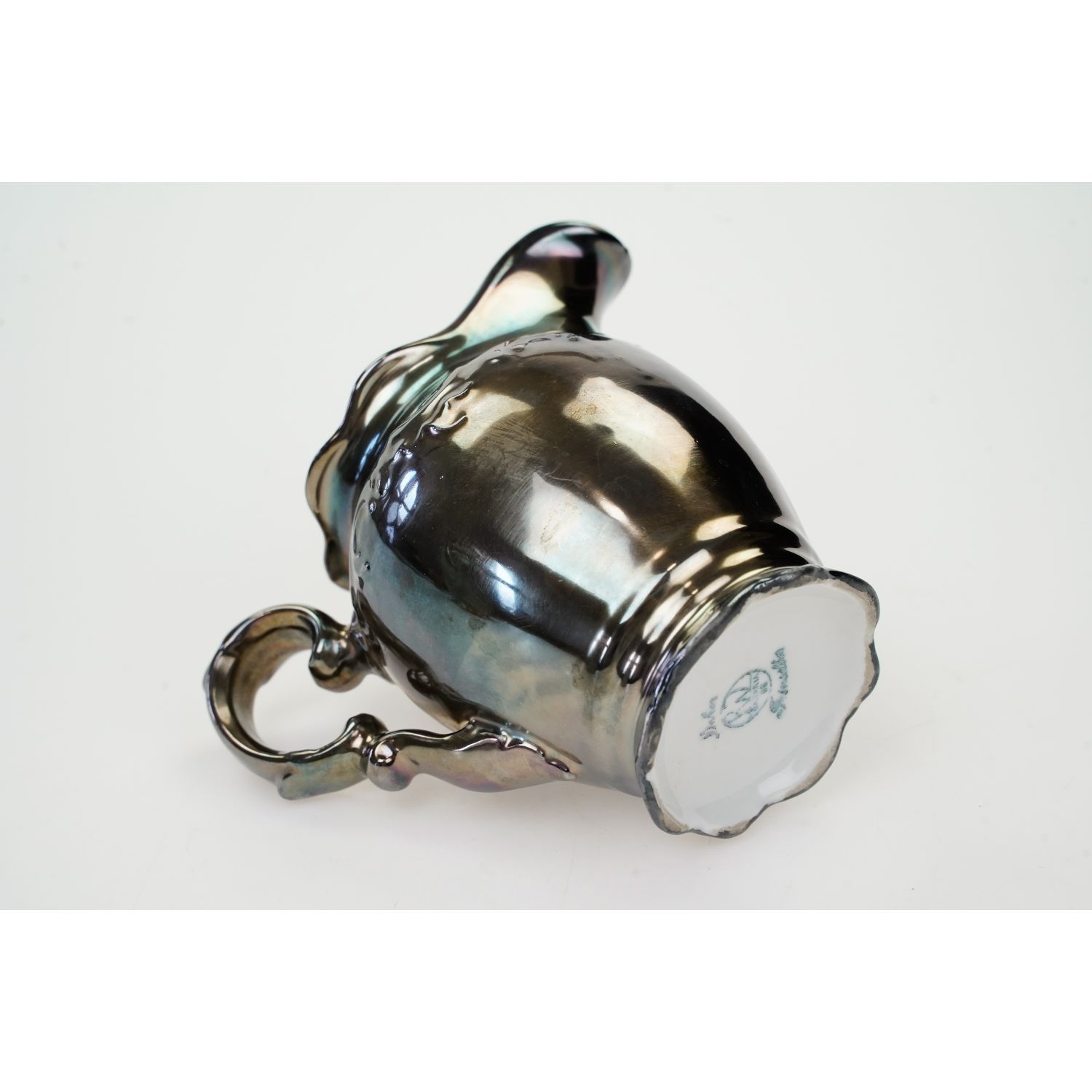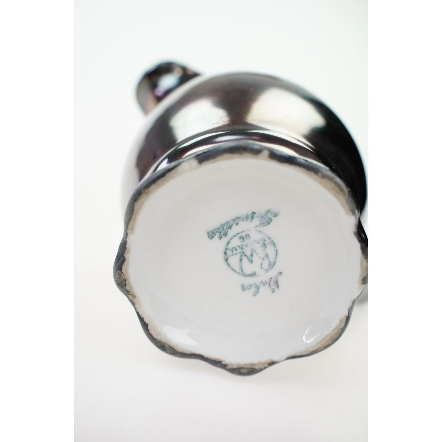 Pochodzi z Bawarii z Kirchenlamitz z wytwórni porcelany Rudolfa Wächtera. Sygnowany znakiem stosowanym od 1927 roku. Porcelana w kolorze białym. Wykonany z porcelany grubo okutej srebrem (srebrzonym mosiądzem) - silver overlay.