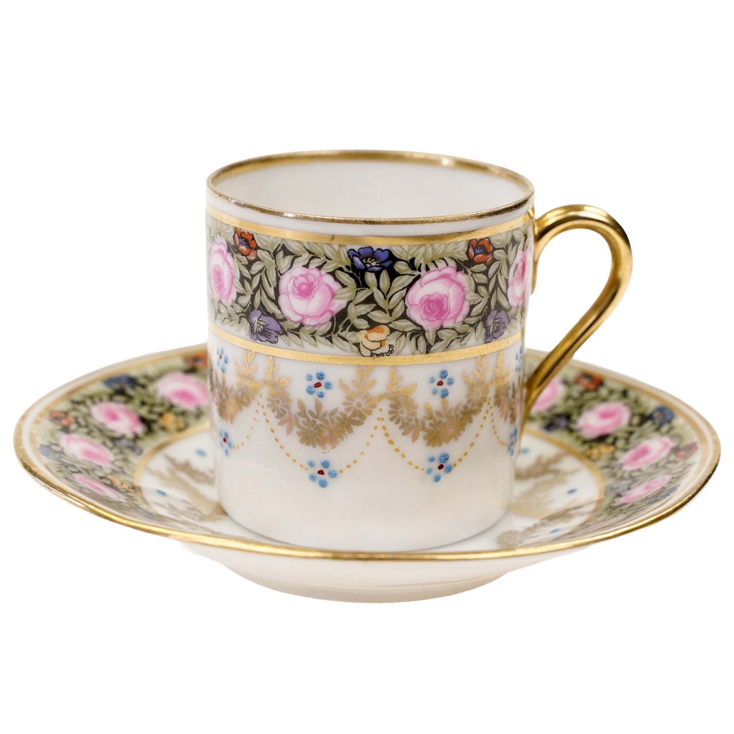 KOLEKCJONERSKA MOKKA ZE SPODKIEM BOGATO ZDOBIONA KWIATÓW SZLACZKI