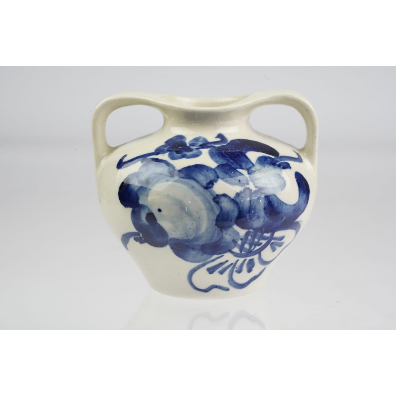 KOŁO/WŁOCŁAWEK WAZONIK Z USZAMI RĘCZNIE MALOWANE KOBALTOWE KWIATY