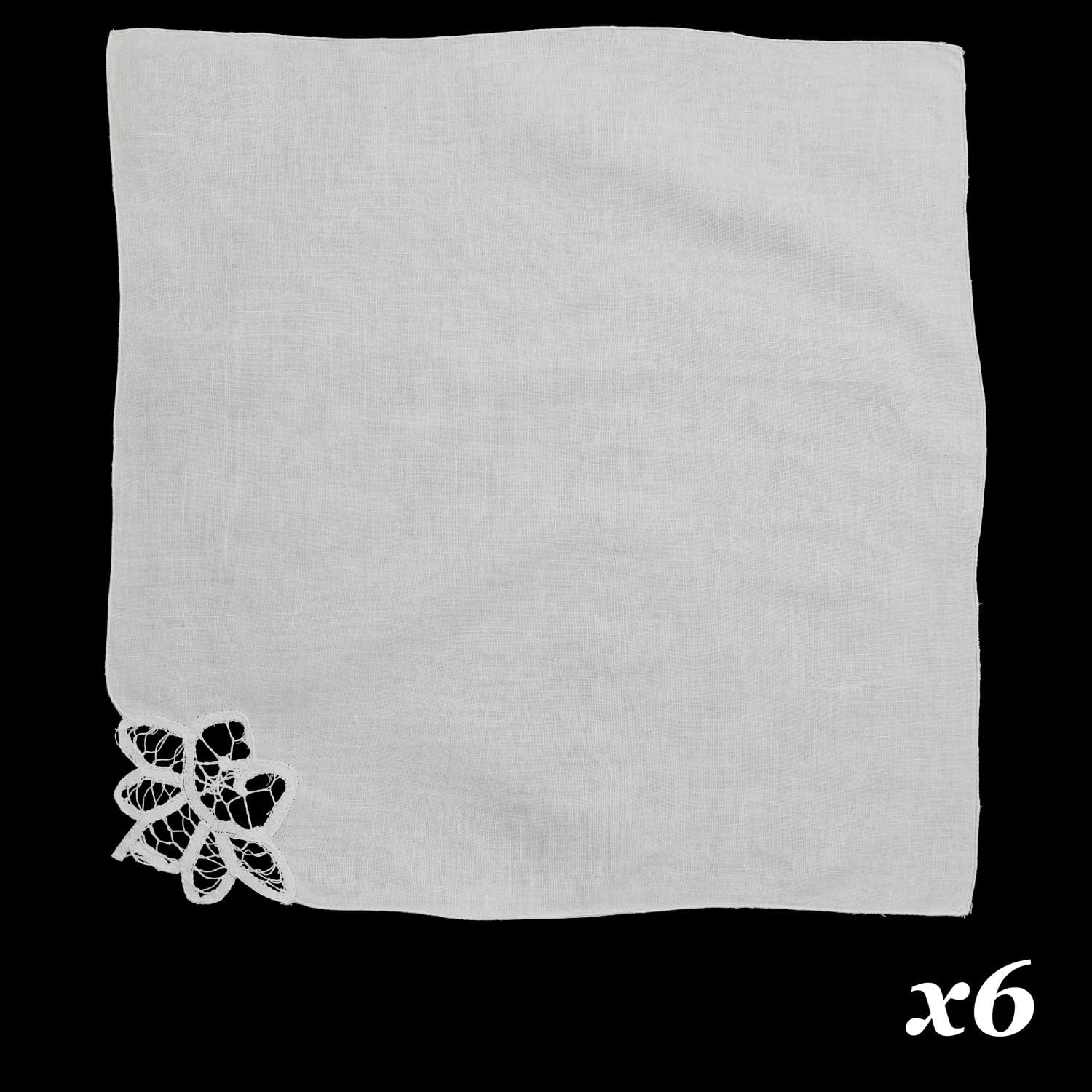 Komplet sześciu serwetek z białego płótna.