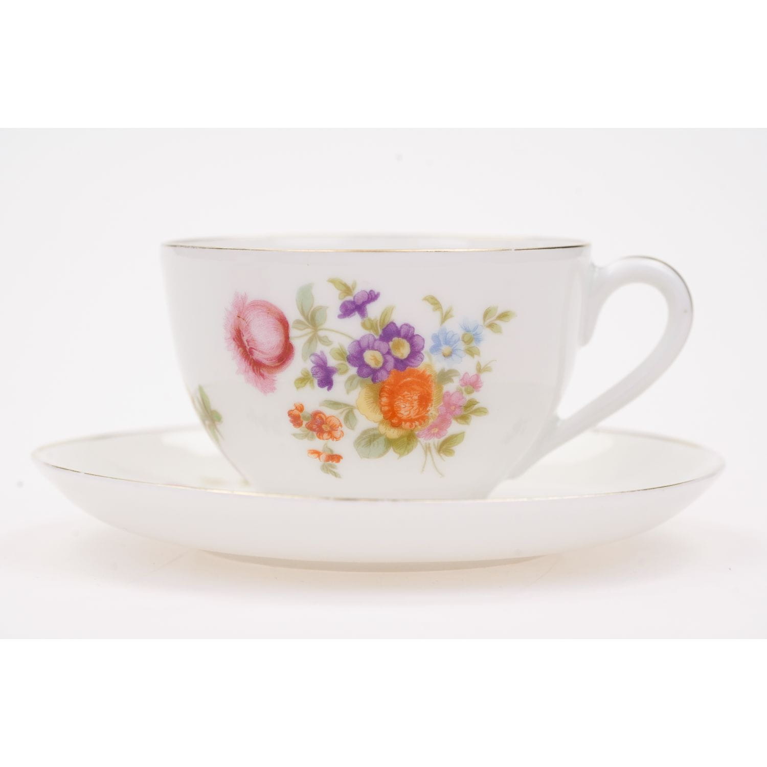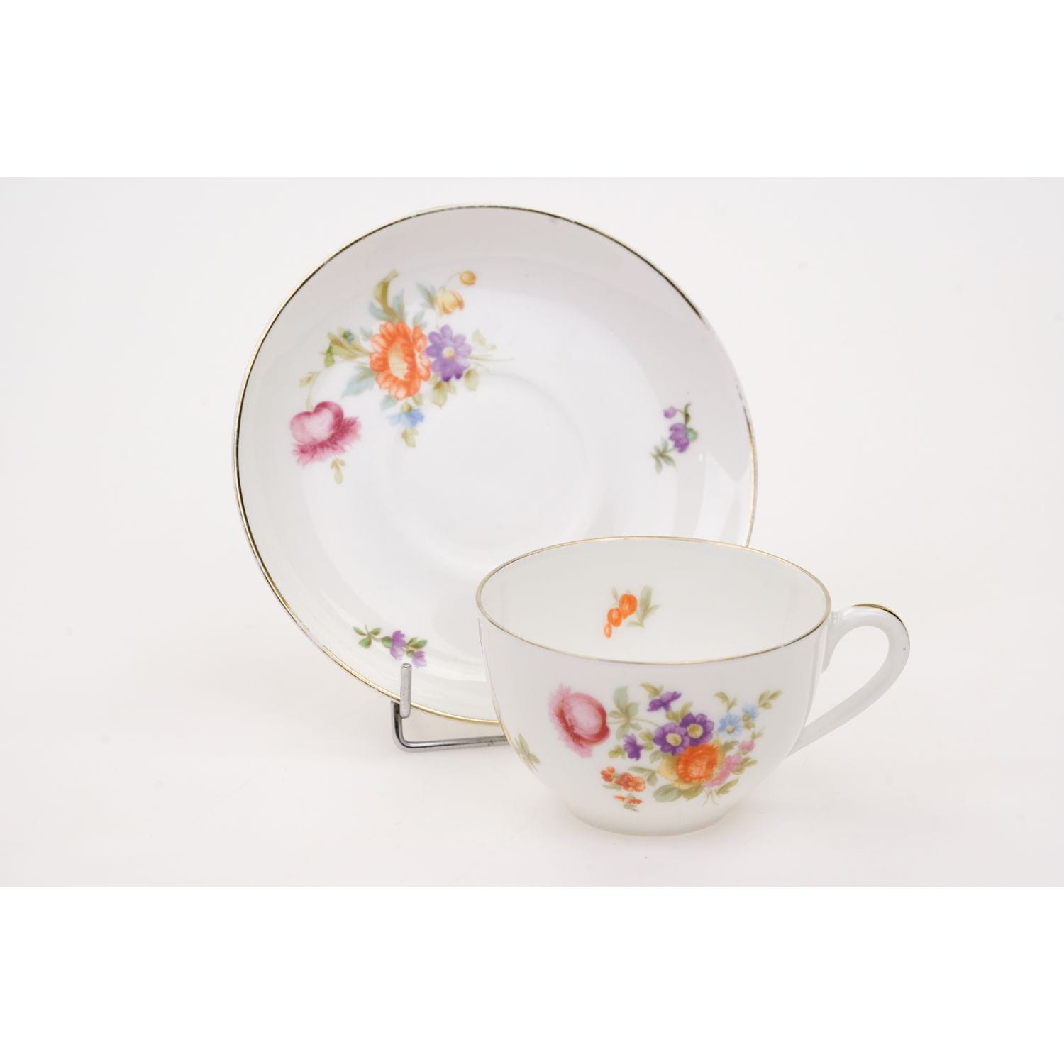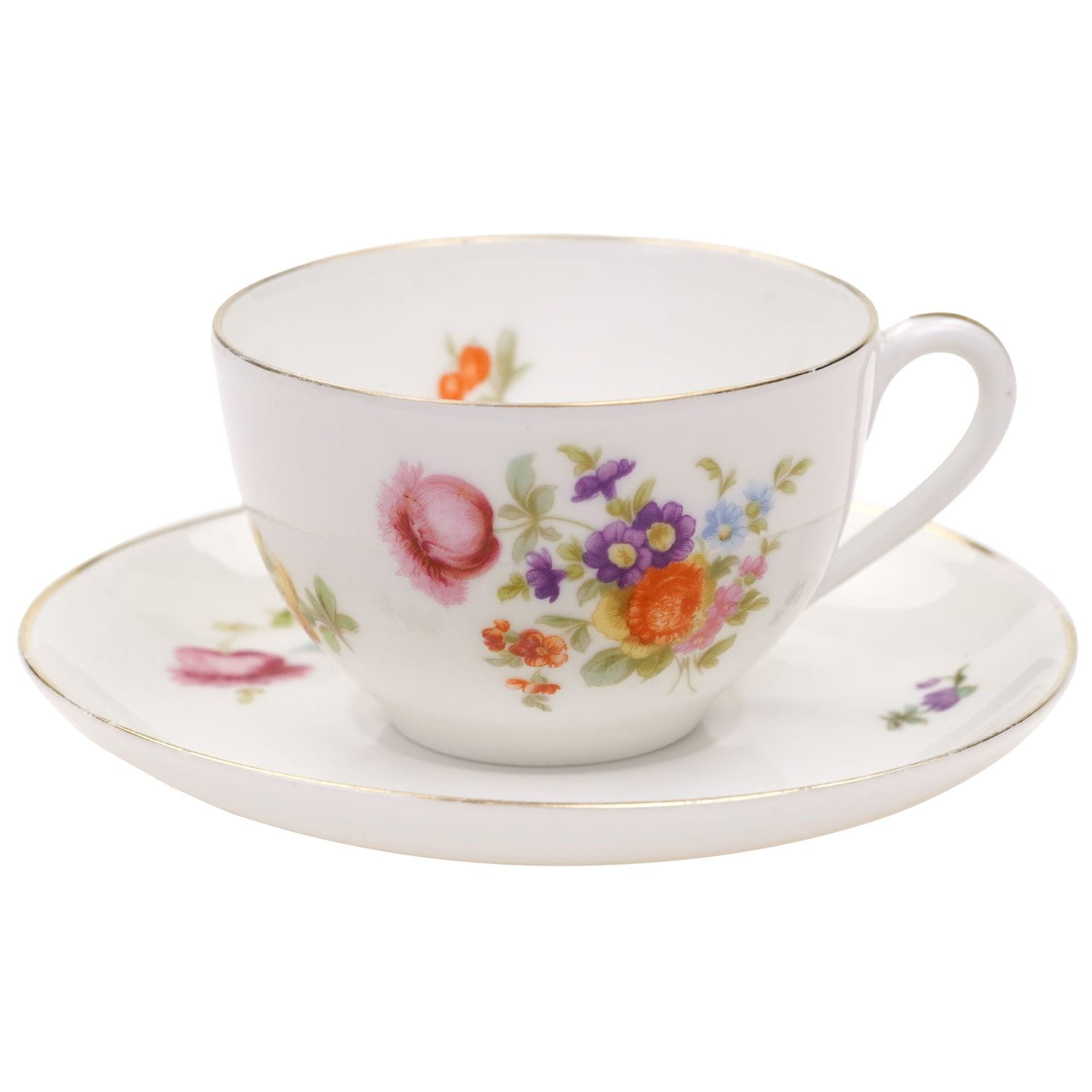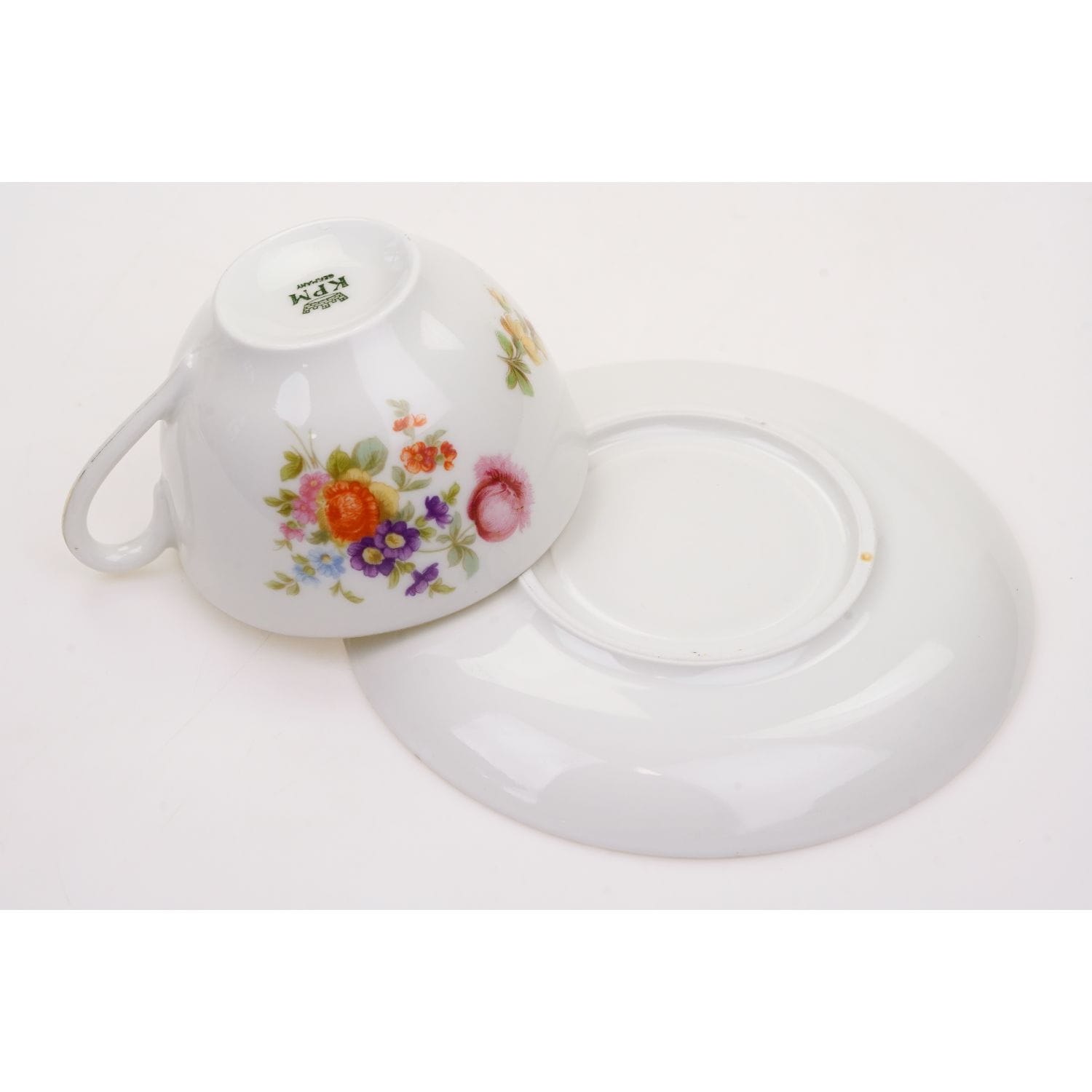 KPM WALDENBURG FILIŻANKA ZE SPODKIEM KOLOROWE KWIATY