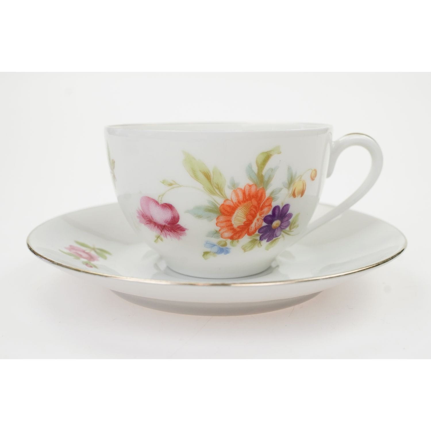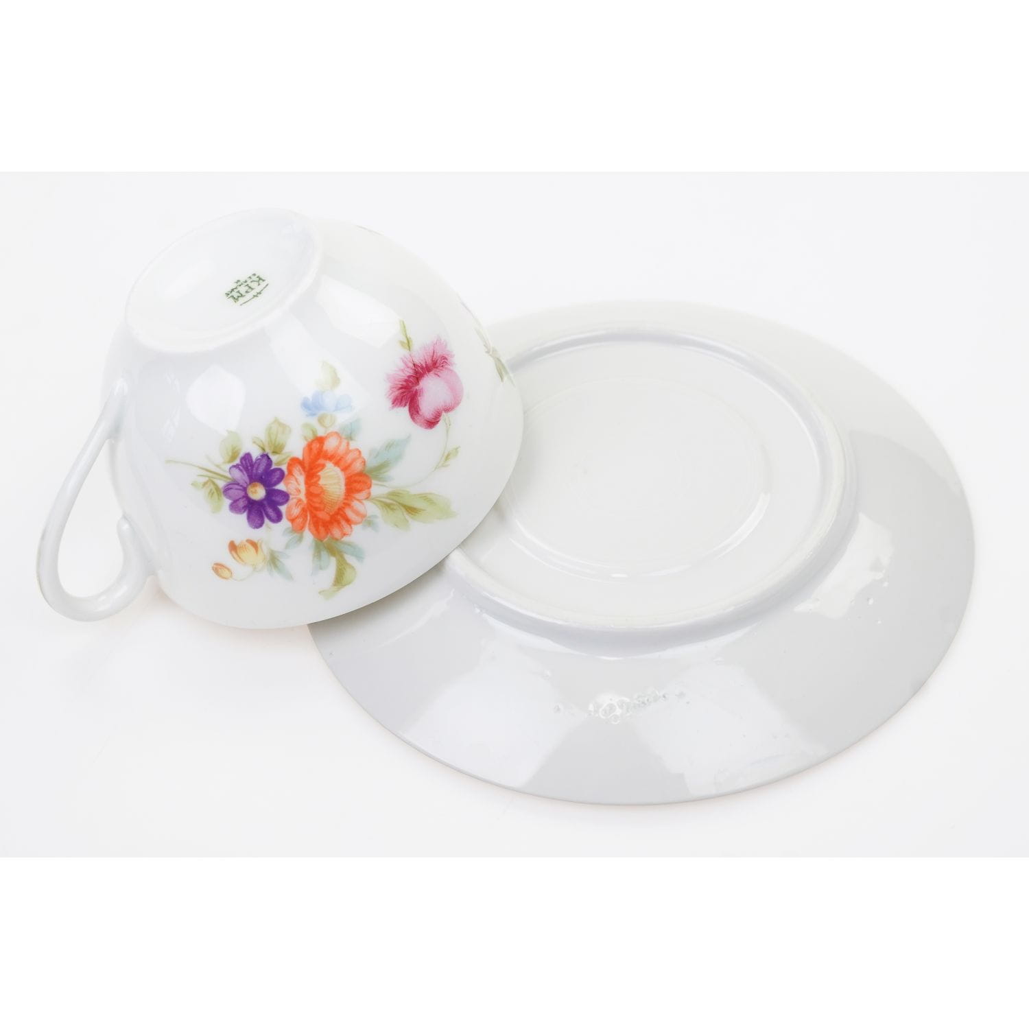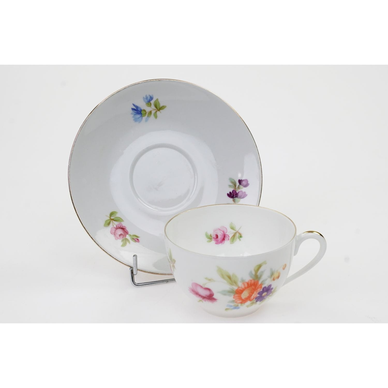 KPM WALDENBURG FILIŻANKA ZE SPODKIEM KOLOROWE KWIATY