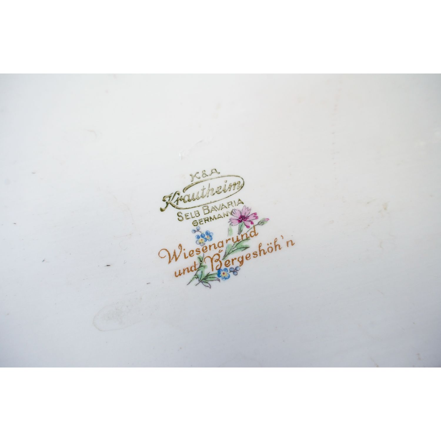 Pochodzi z Krautheim & Adelberg Porzellanfabrik z Selb. Sygnowana znakiem stosowanym od 1945 roku z serii Wiesengrund und Bergeshöh'n. Potocznie zwaną "Łąka", "Łączka". Porcelana w kolorze kości słoniowej ze złotymi obrzeżami. Na porcelanie polne kwiaty.