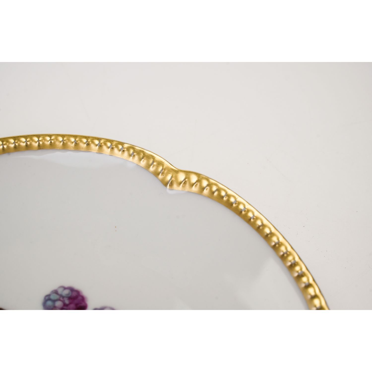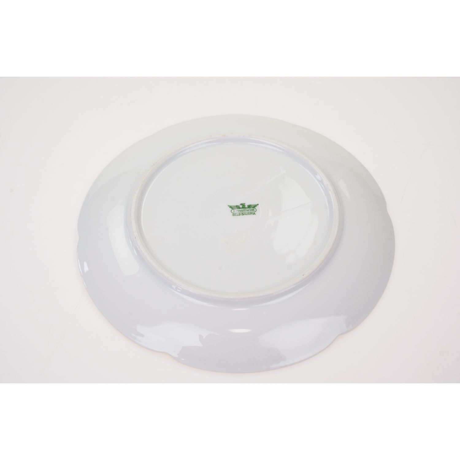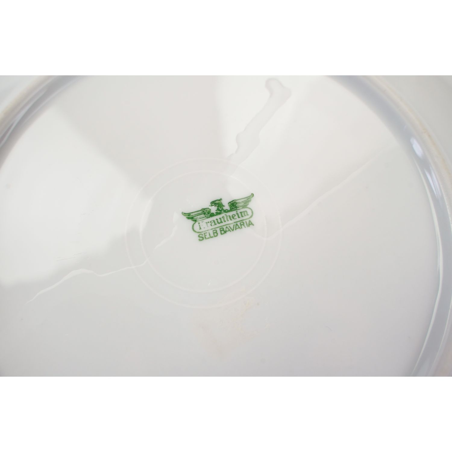 Pochodzi z Selb z Krautheim & Adalberg Porzellanfabrik. Sygnowana znakiem stosowanym od 1914 do 1922 roku. Porcelana biała z falowanym rantem wykończonym perlaturą pokrytą złotem. Na lustrze smakowity bukiet owoców: jabłuszko i jeżyny.
