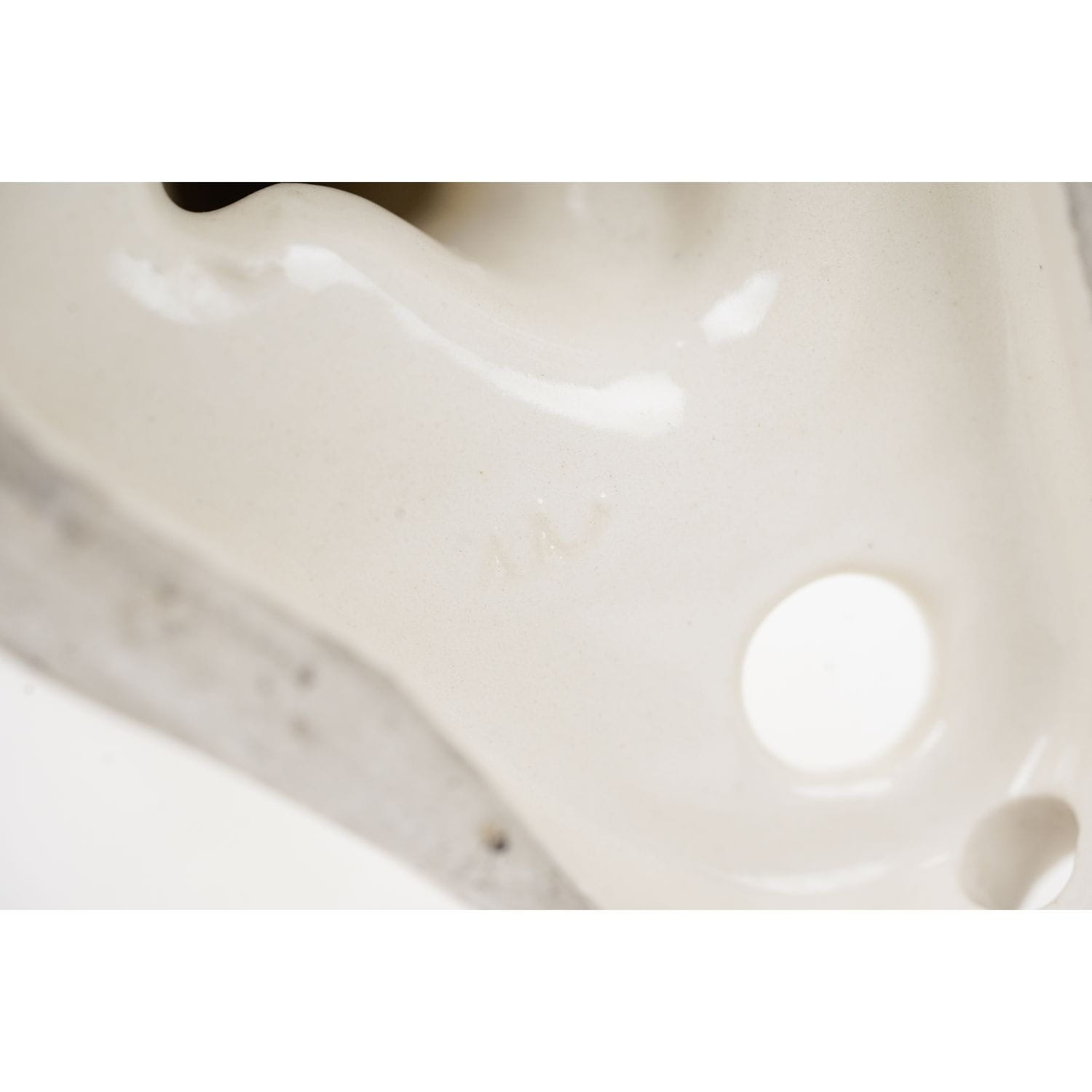 Stan zachowania dobry-, dwa odpryski - jeden krawędzi podstawy, drugi z tyłu sukni. Jest obecna krakelura, czyli typowe dla starej porcelany spękanie szkliwa (nie jest to wada).