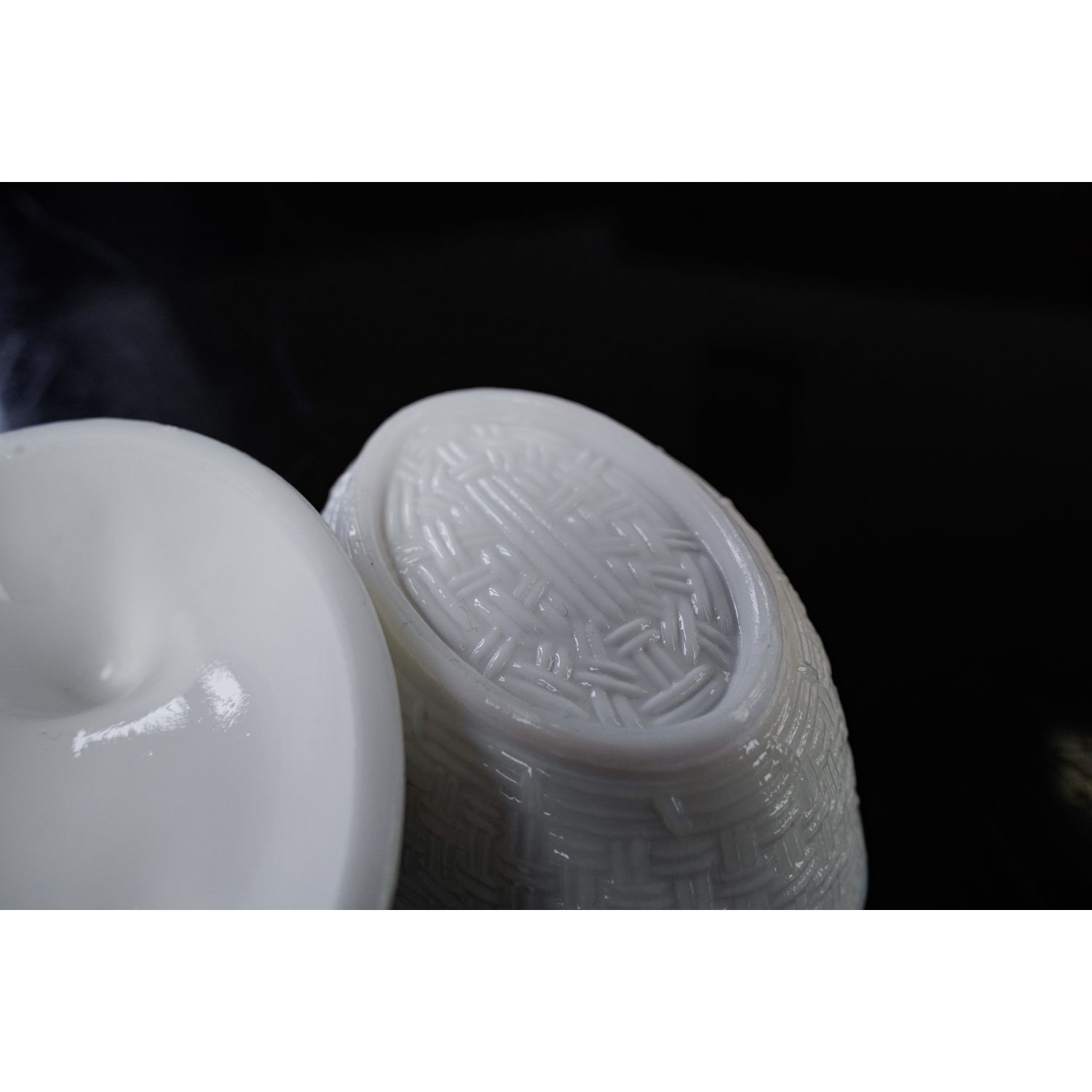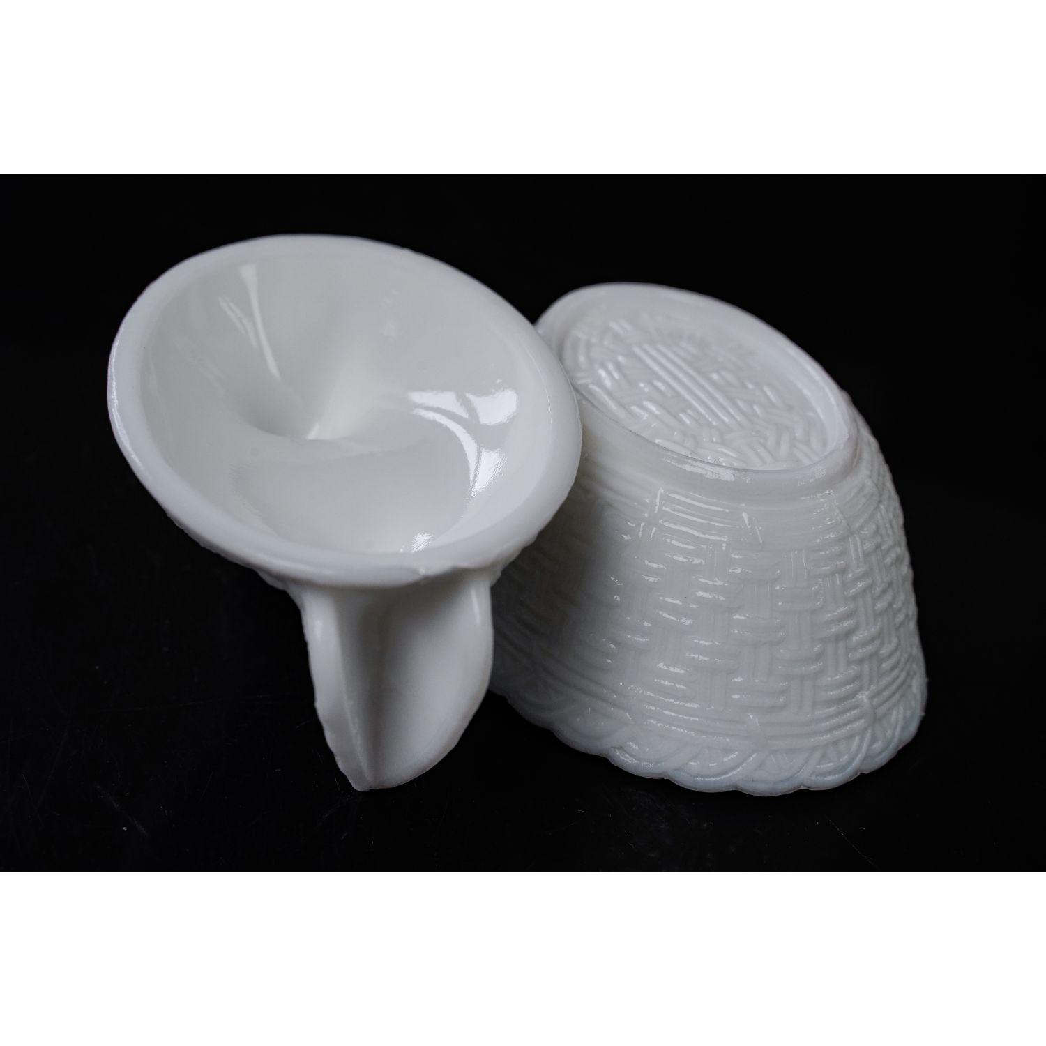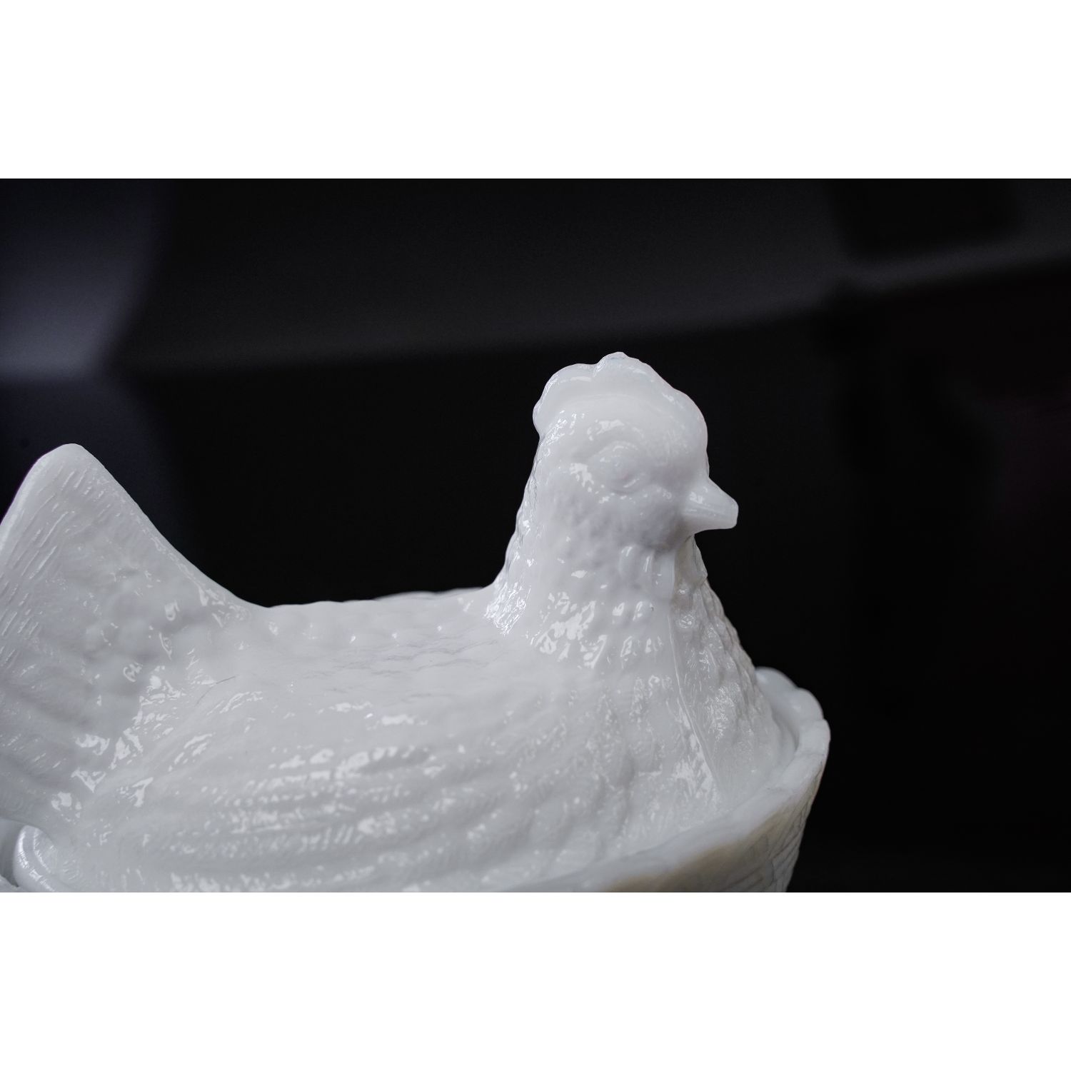 Wykonana ze szkła prasowanego, barwionego w masie na kolor mleka, biały. Góra ma kształt kwoki, dół to pleciony koszyczek. Kura siedzi w koszu. Przy krawędzi nie ma jaj, i nie ma XXX od spodu.