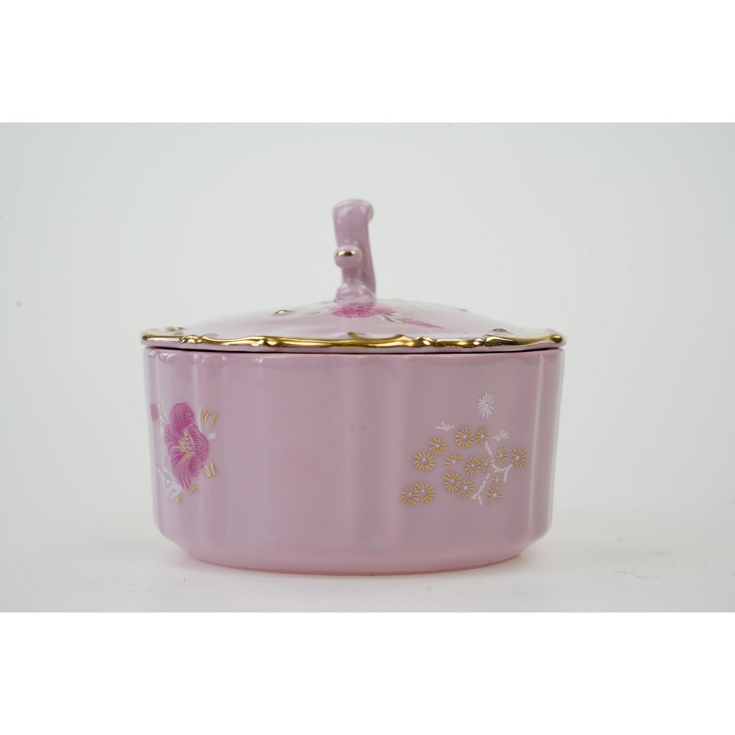 LEANDER BOMBONIERA Z RÓŻOWEJ PORCELANY FASON AMIS RÓŻOWE KWIATKI