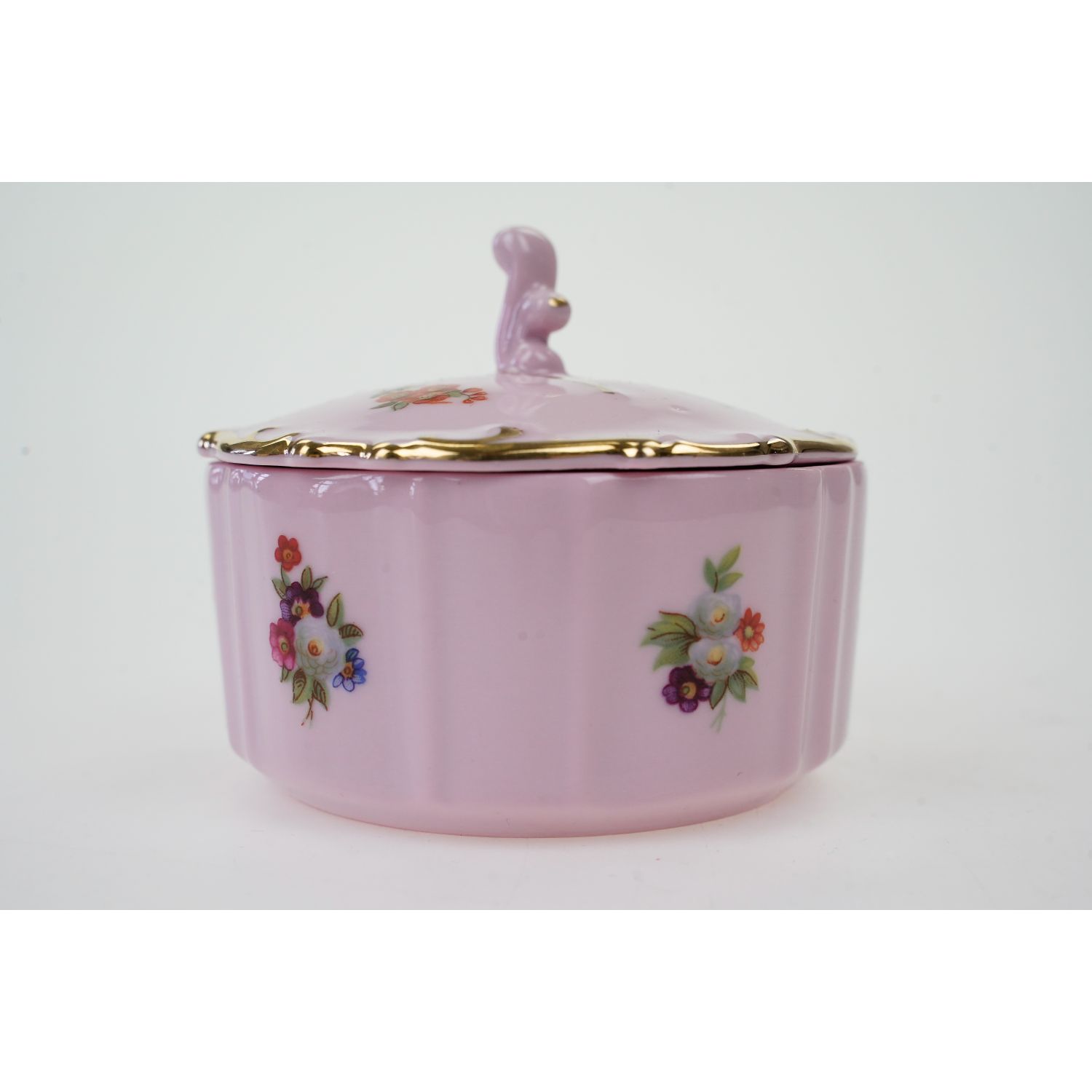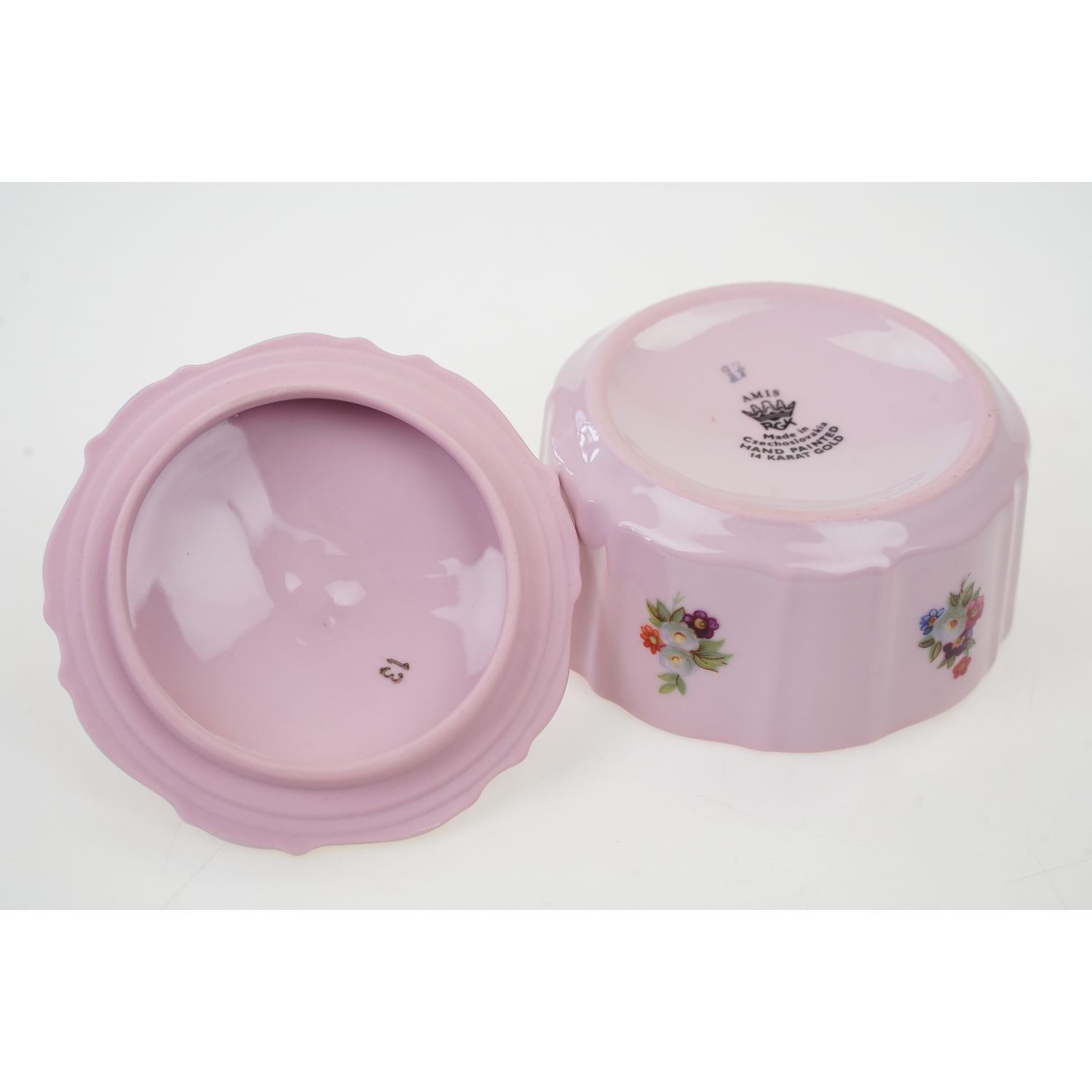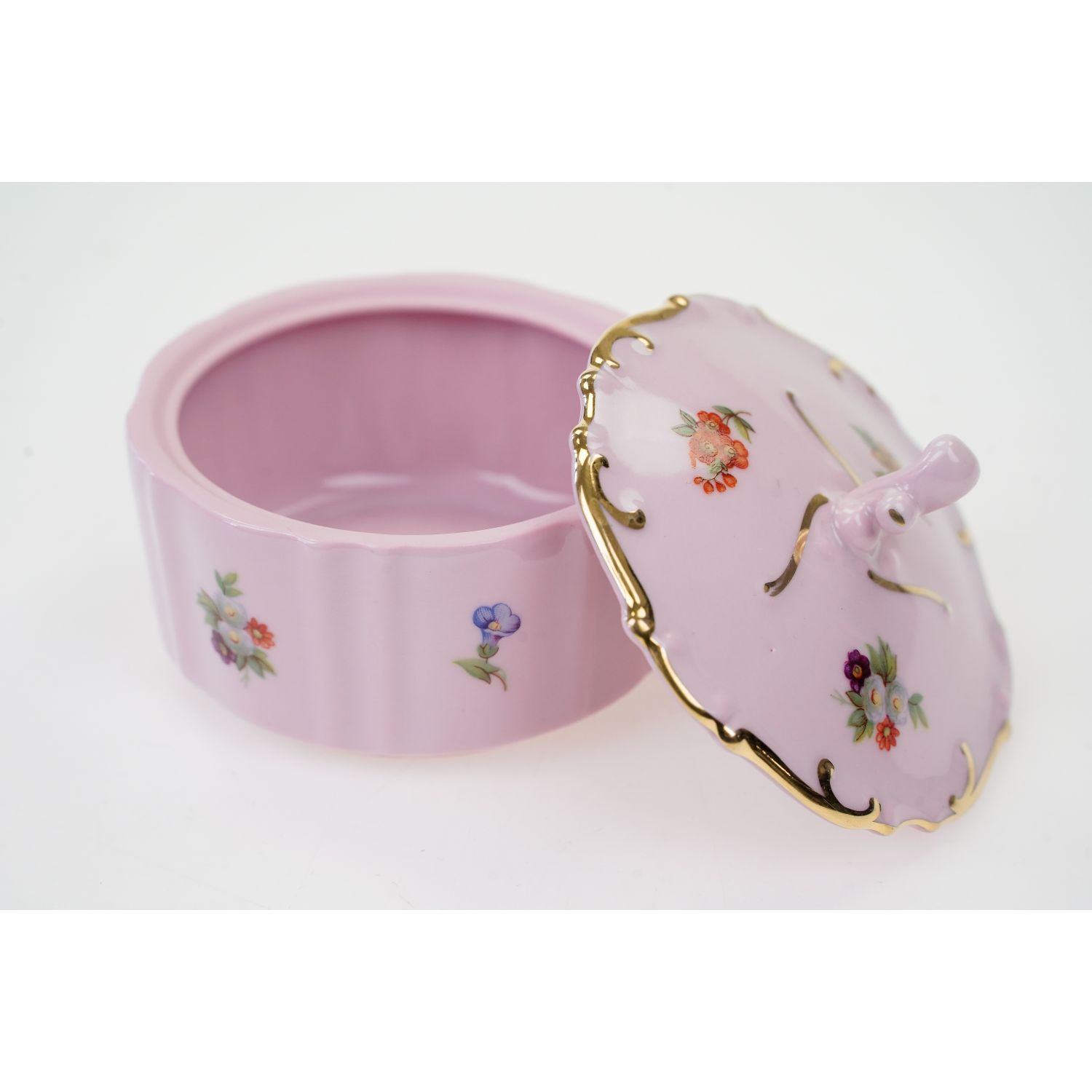 LEANDER PUZDERKO Z RÓŻOWEJ PORCELANY FASON AMIS KOLOROWE KWIATKI