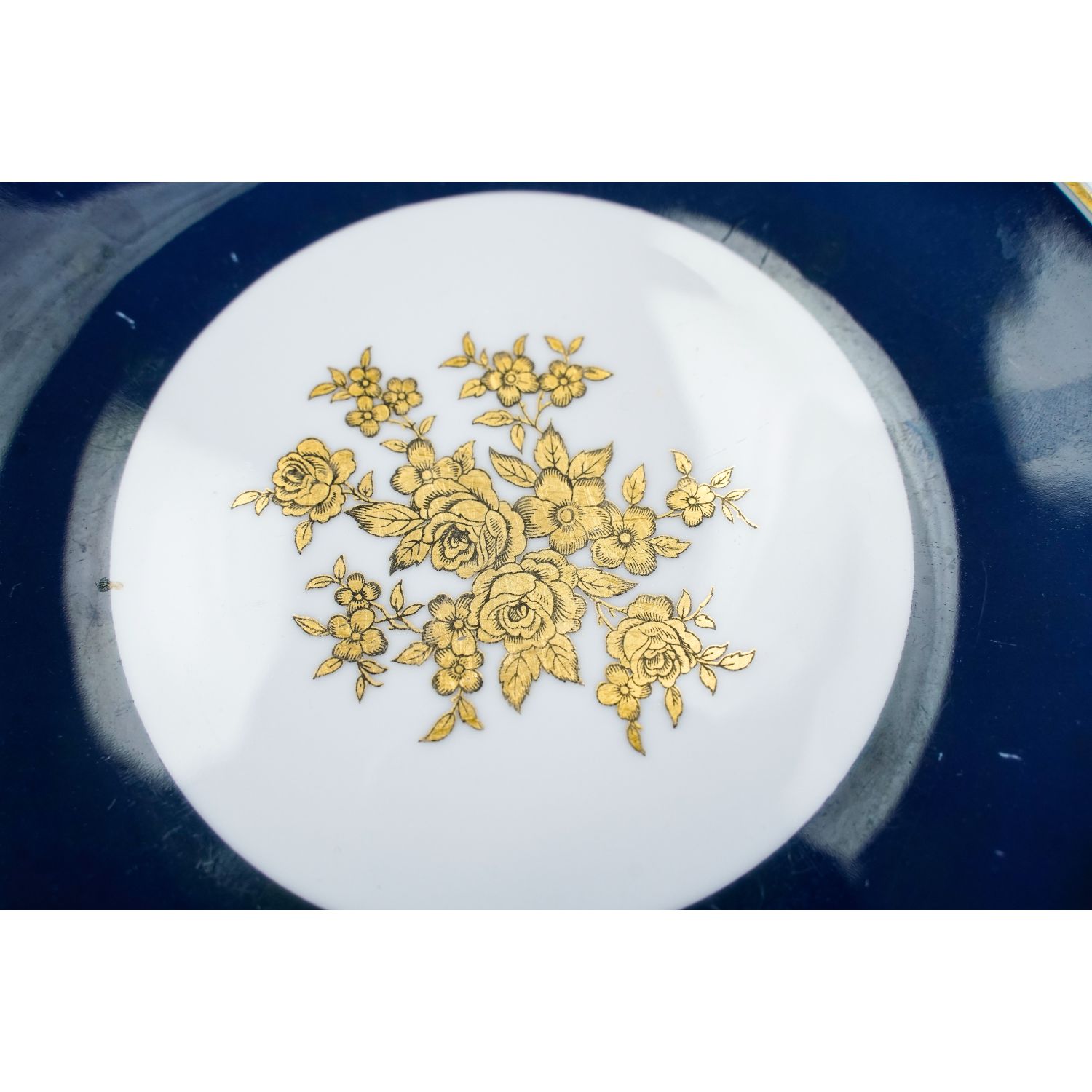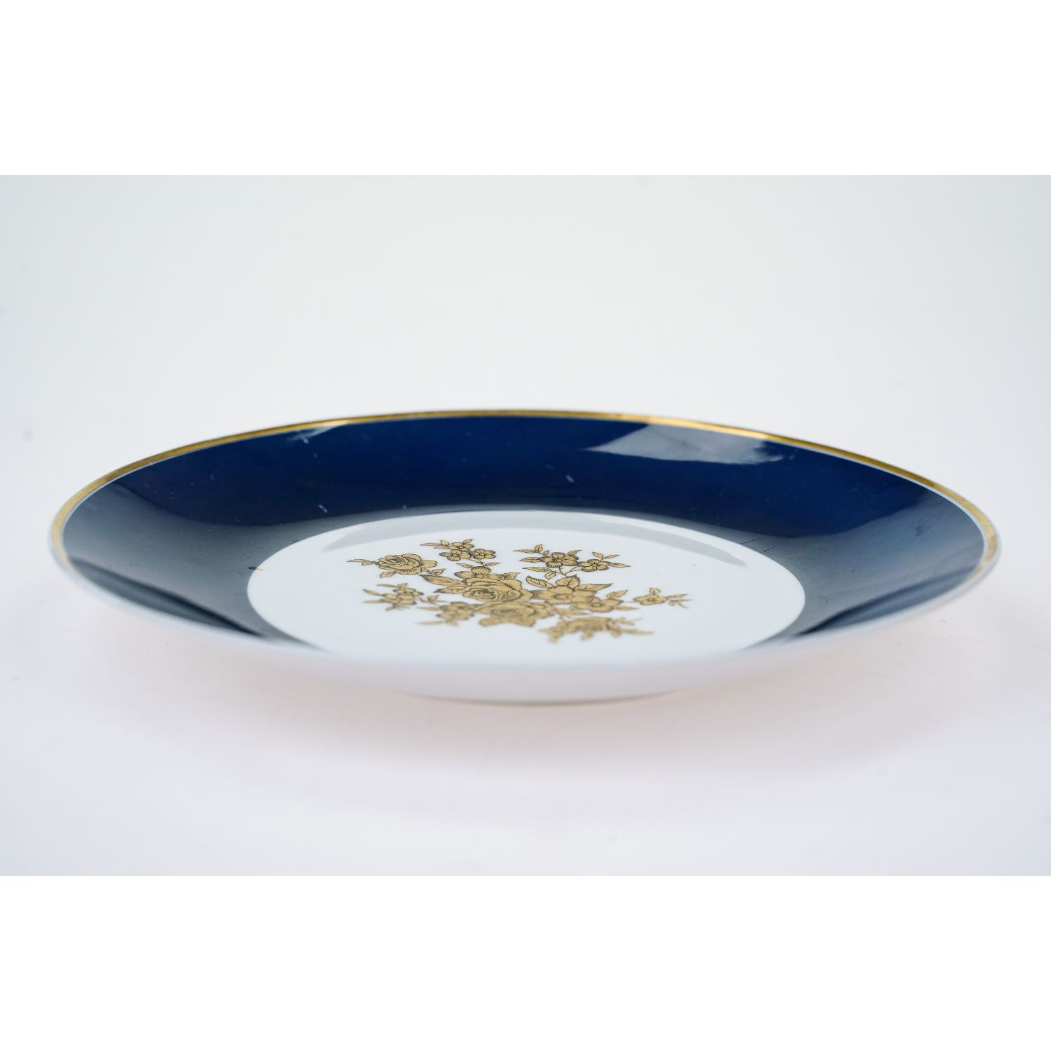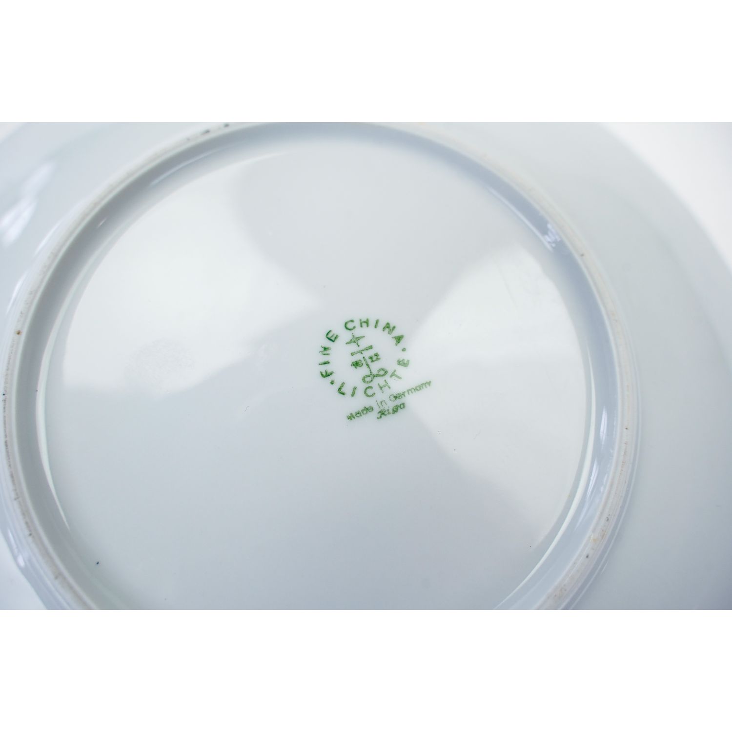 Pochodzi z Turyngii z Lichte z lat 60-tych XX wieku. Lichte Riga to seria porcelany produkowana w Niemieckiej Republice Demokratycznej (NRD) przez VEB Zierporzellanwerke Lichte. Zaprojektowana przez Ericha Leiba, forma „Riga” charakteryzuje się stylem z połowy XX wieku (lata 60-te i 70-te XX wieku). Kołnierze w szafirowym kolorze ze złotymi ornamentami. Na lustrze bukiet złotych kwiatów. Rant w złoceniu.