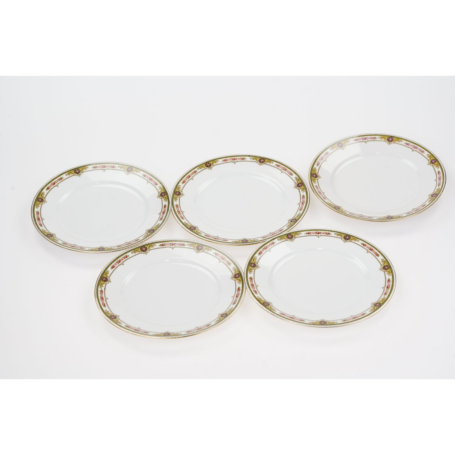 Zestaw pięciu talerzyków deserowych.