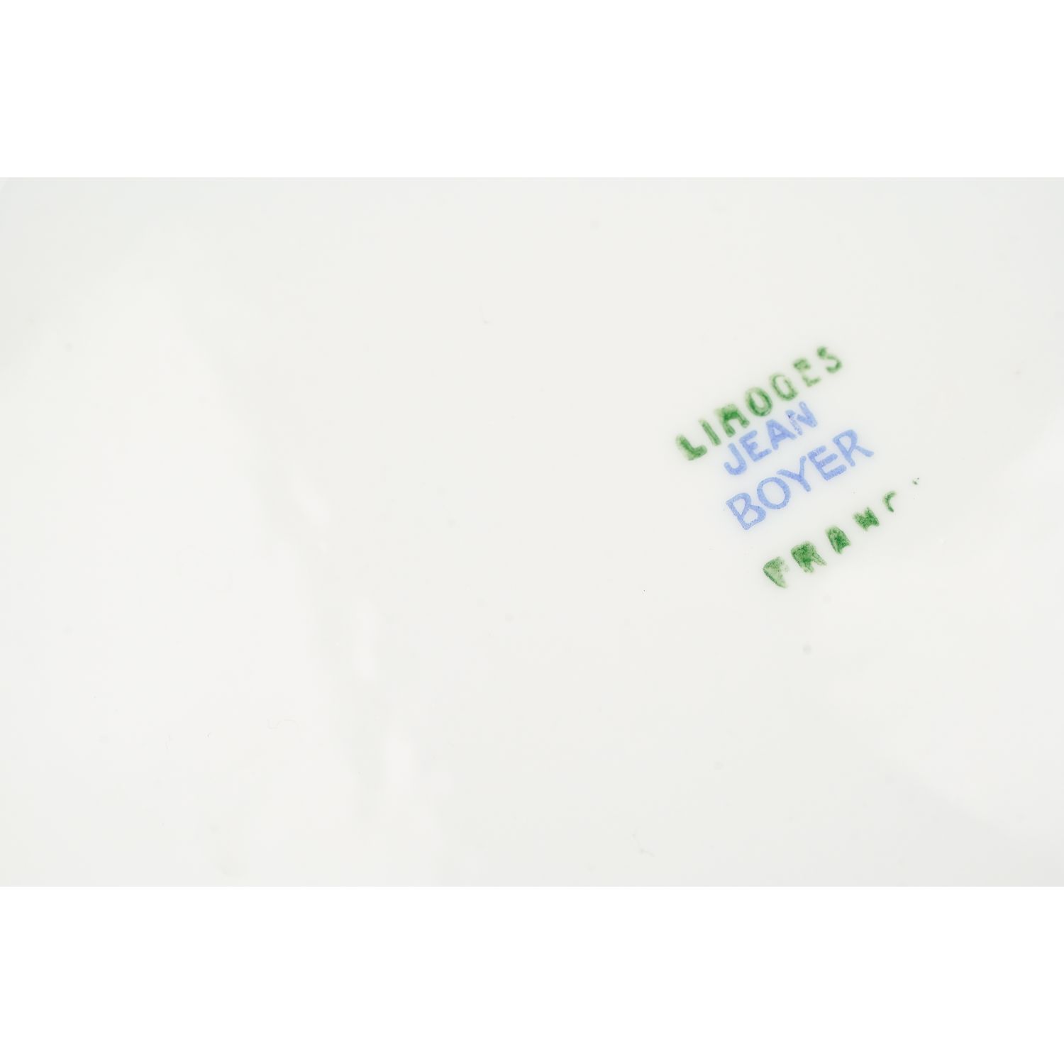 Wykonane w fabryce porcelany z Rue du Velodrome w Limoges. Musi pochodzić z lat 1920-34, kiedy syn Jeana Boyersa, Georges, przejął firmę w 1934 roku.