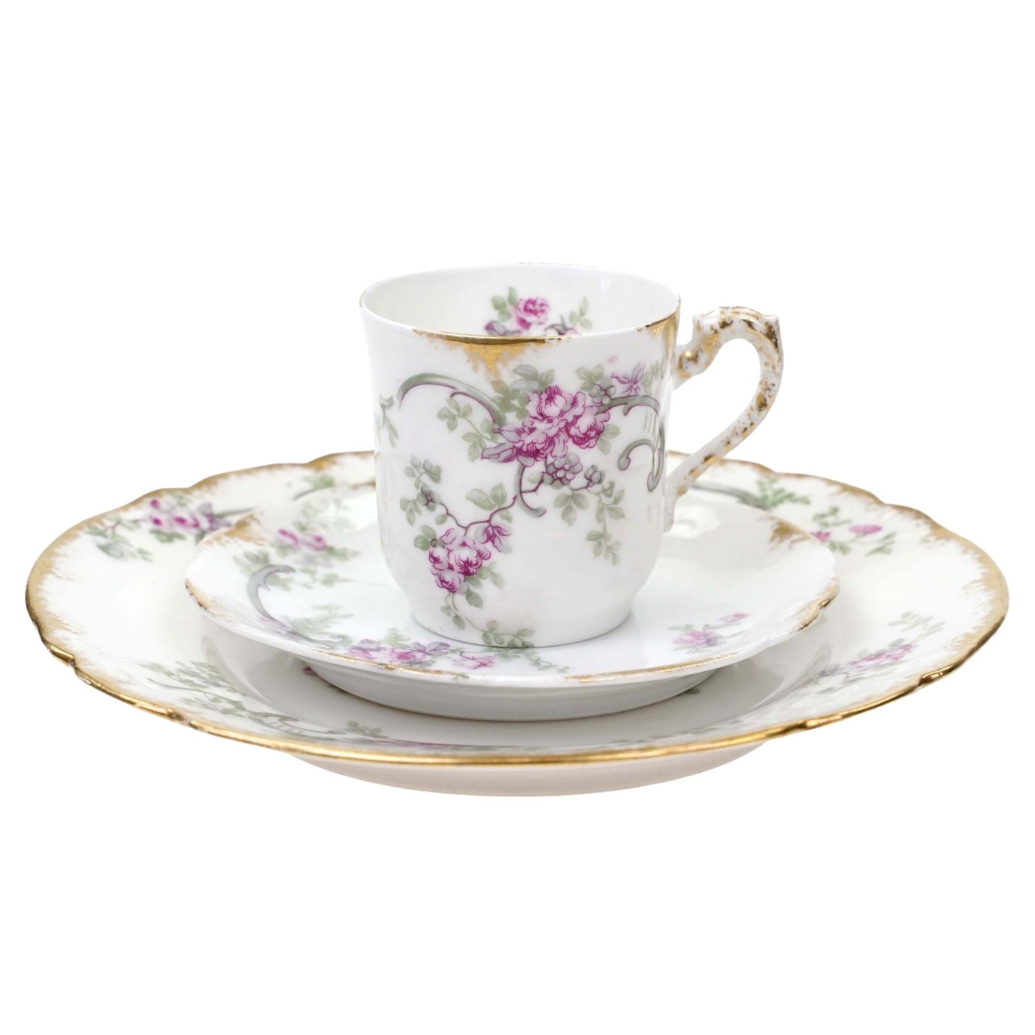 LIMOGES L. SAZERAT & BLONDEAU SECESJA ŚNIADANIÓWKA FIOLETOWE RÓŻYCZKI