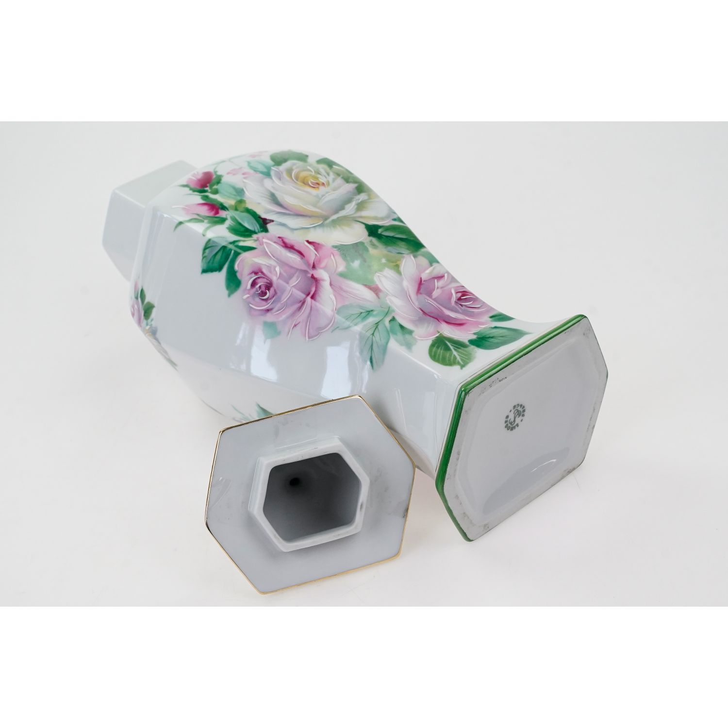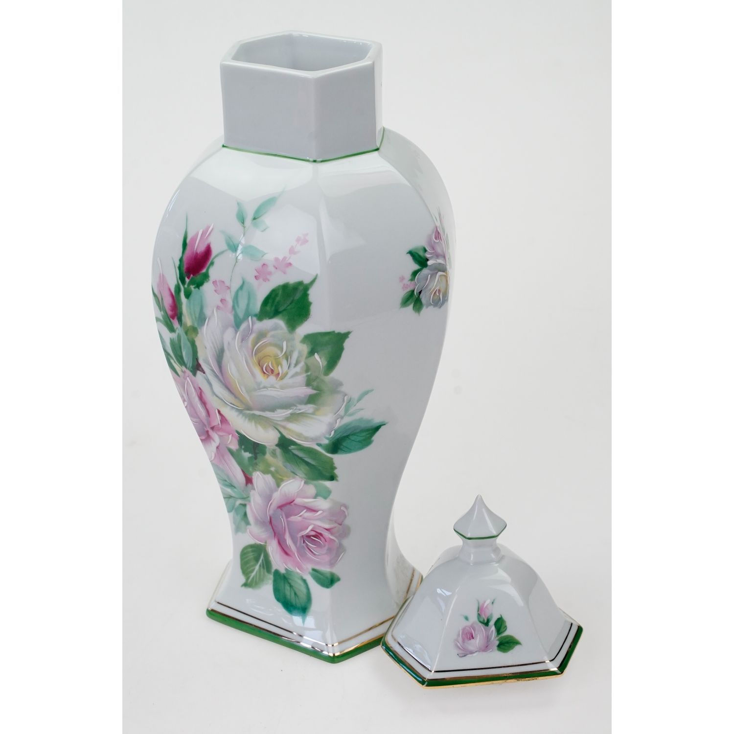 LIMOGES LA SEYNIE URNA AMFORA NCZYNIE Z POKRYWĄ RÓŻE RĘCZNIE MALOWANE