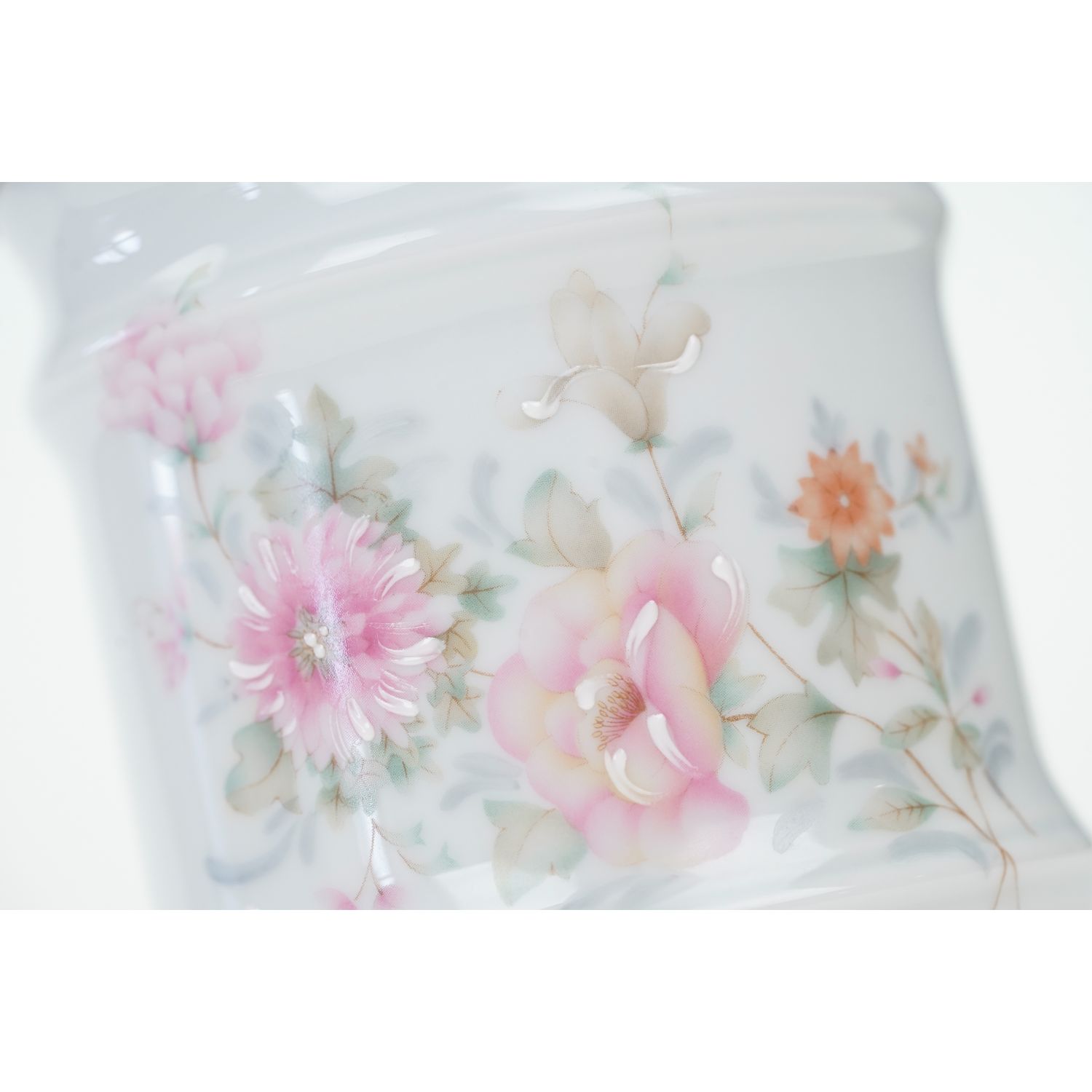 Ciekawy bibelot, pojemnik z pokrywą, słój, bomboniera z romantyczną, ręcznie malowaną dekoracją. Śliczny i przydatny przedmiot.