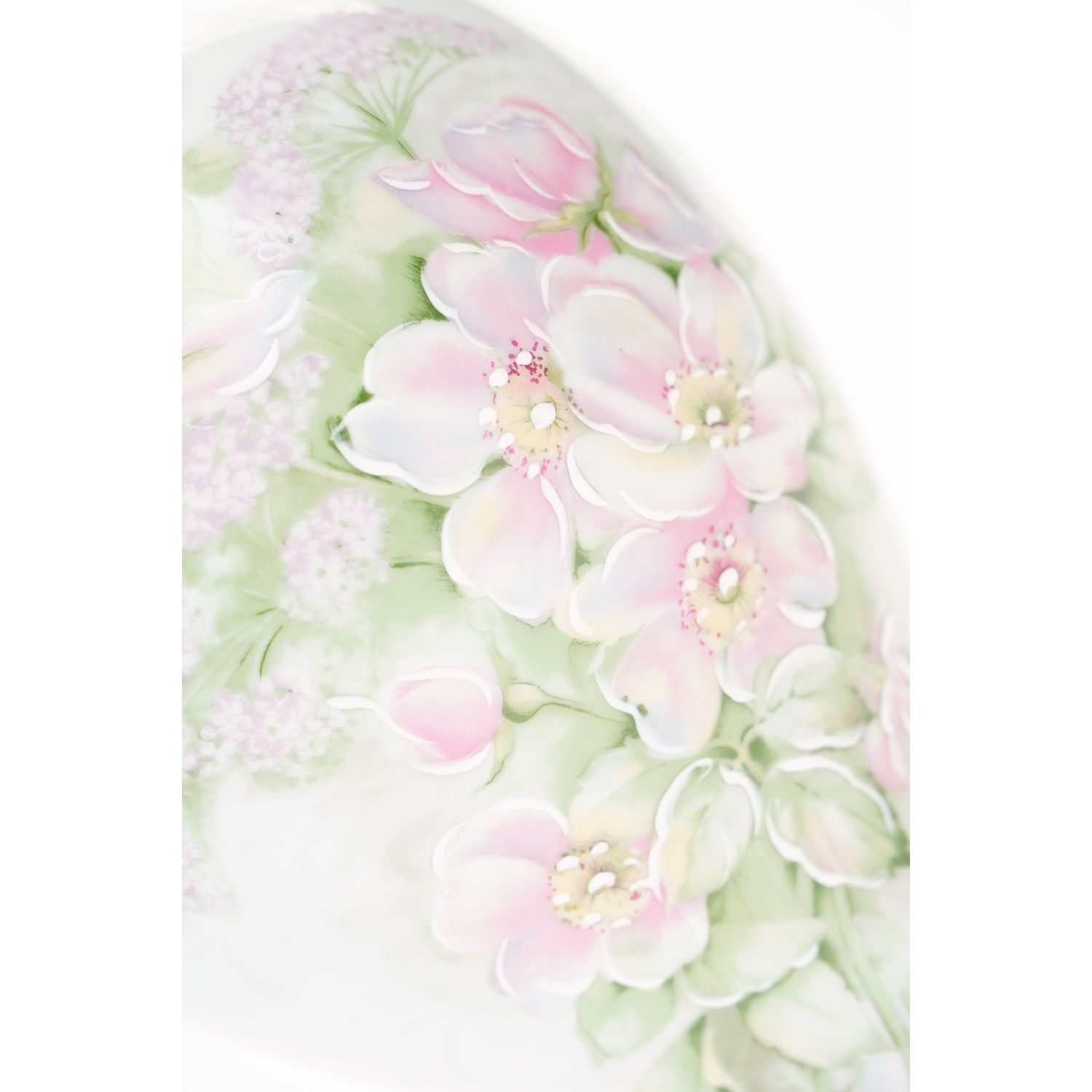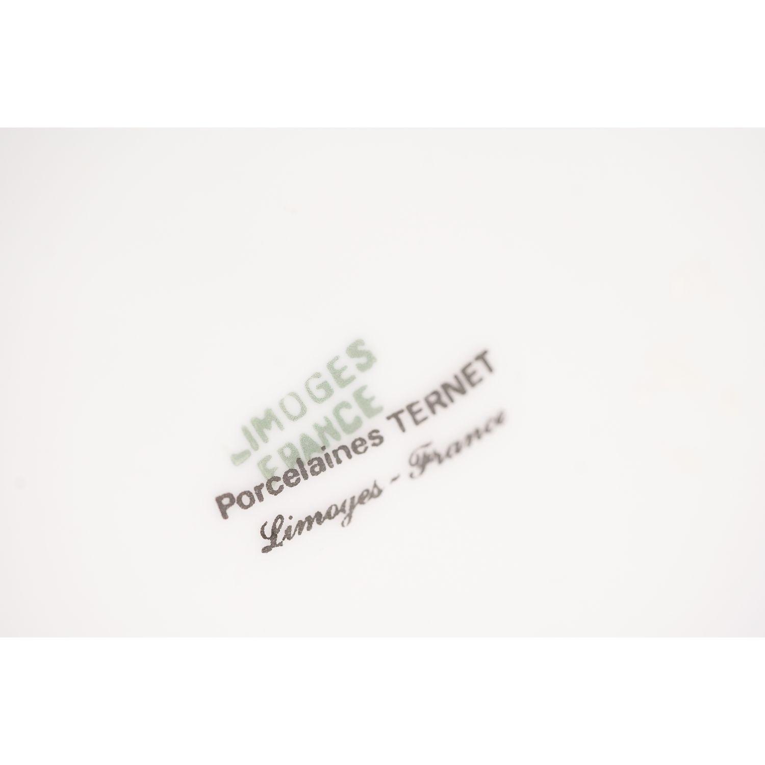 Pochodzi z Limoges, sygnowany “Porcelains TERNET Limoges France”. Z lat 50/60-tych XX wieku. Porcelana biała. Ozdobiona gustownymi kwiatami jabłoni i bzem. Ręcznie podmalowywane.