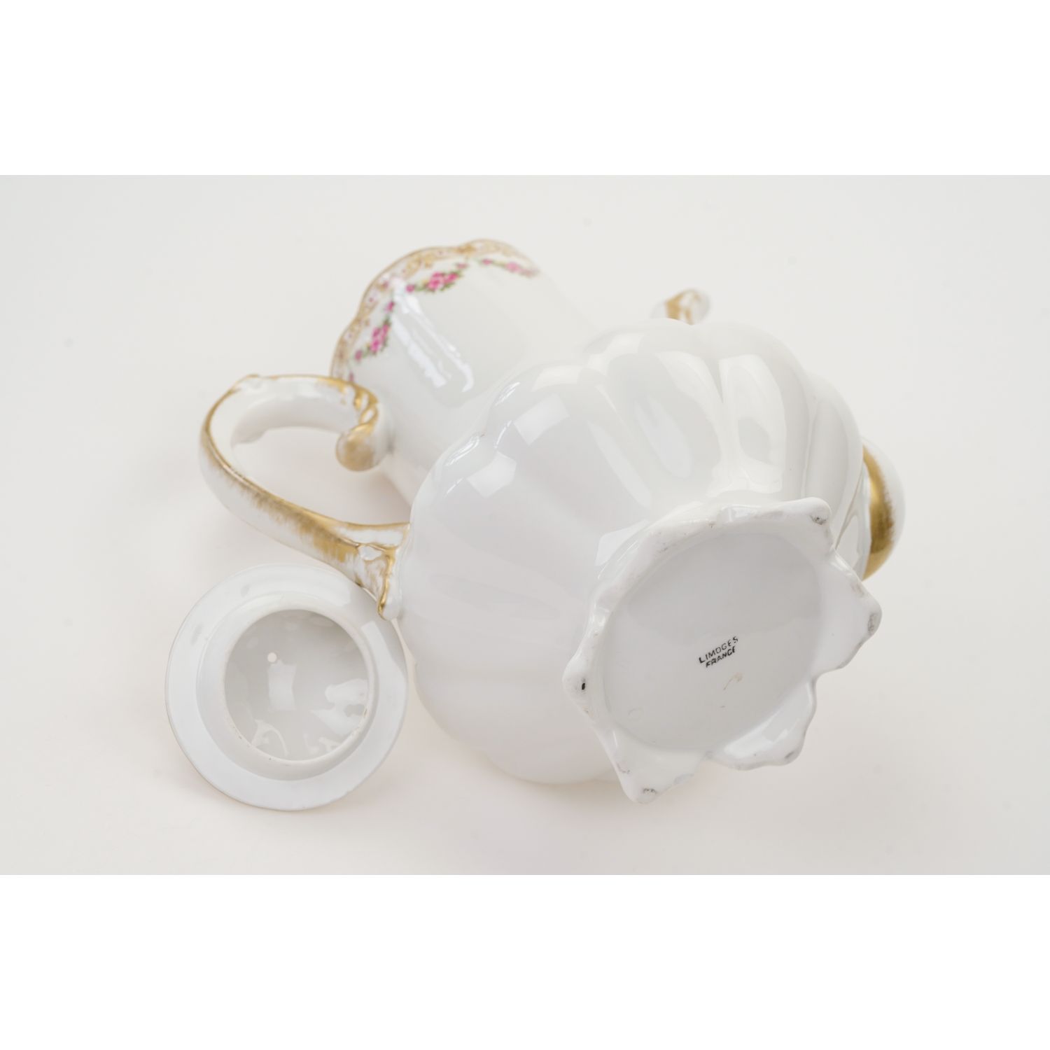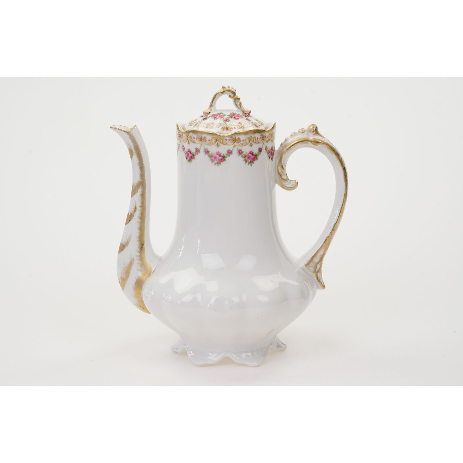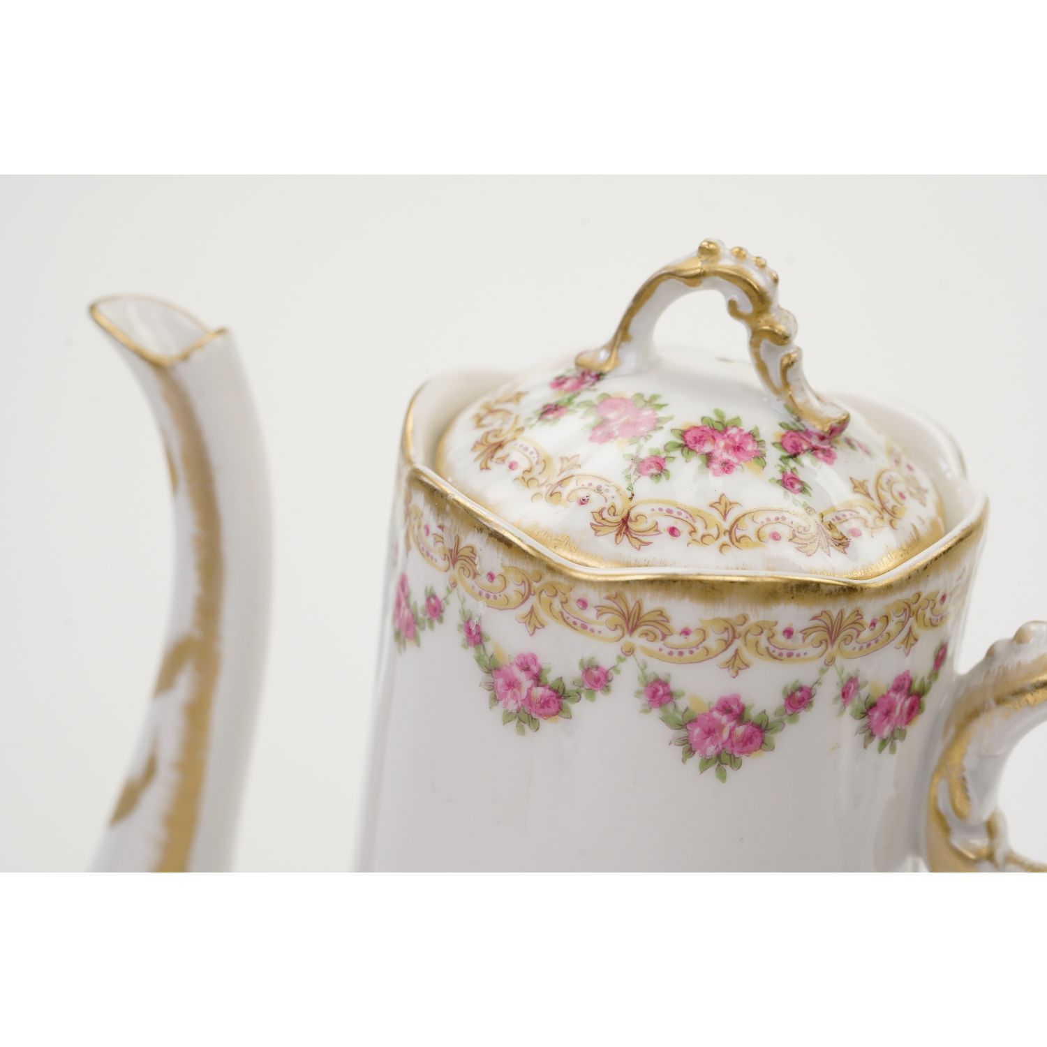 LIMOGES ZABYTKOWY DZBANEK DO KAWY GIRLANDY RÓŻYCZEK I ZŁOCENIA