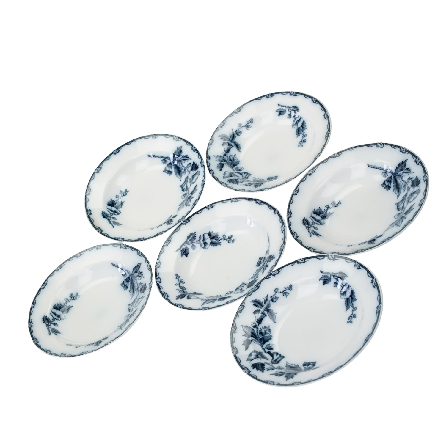 MAESTRICHT ETRURIA KOMPLET 6 TALERZY OBIADOWYCH DO ZUPY KWIATY W KOBALCIE