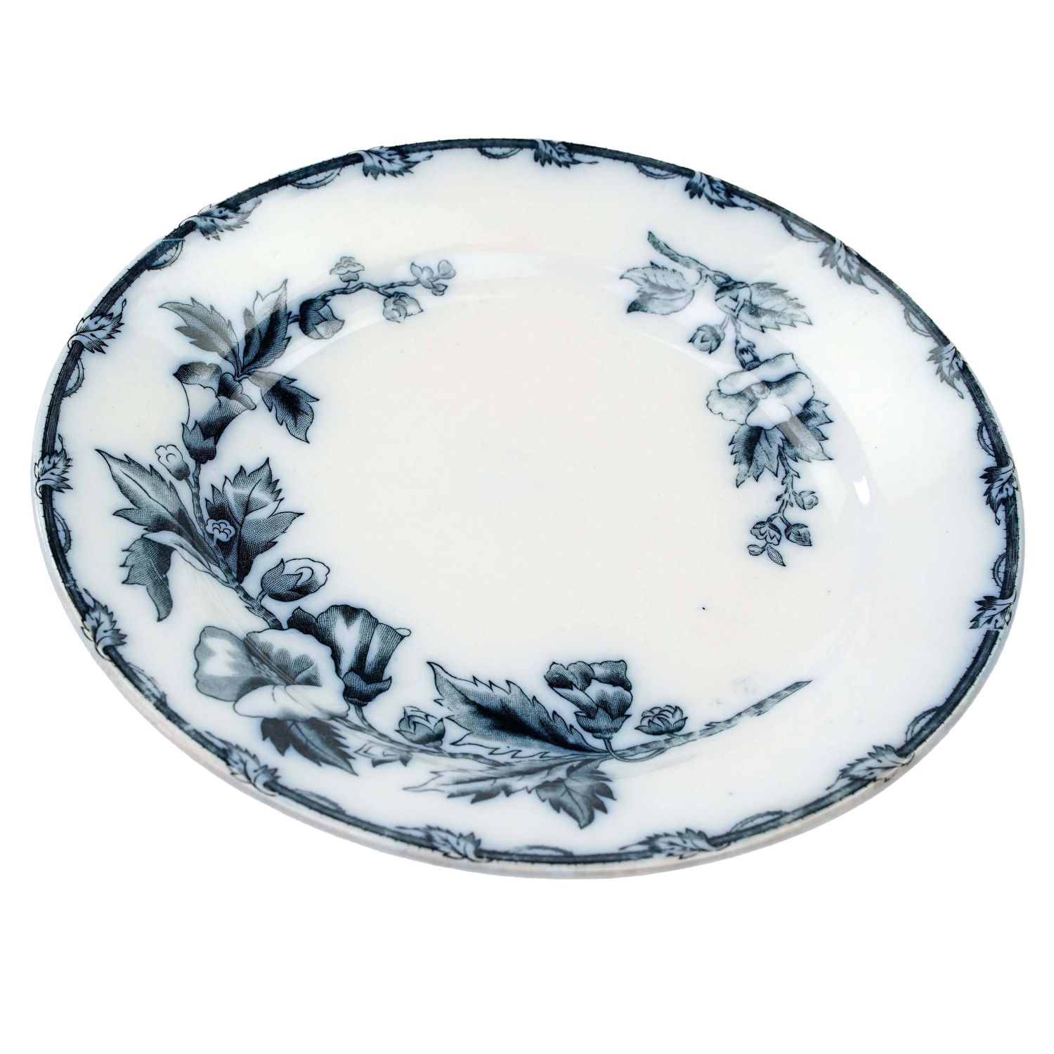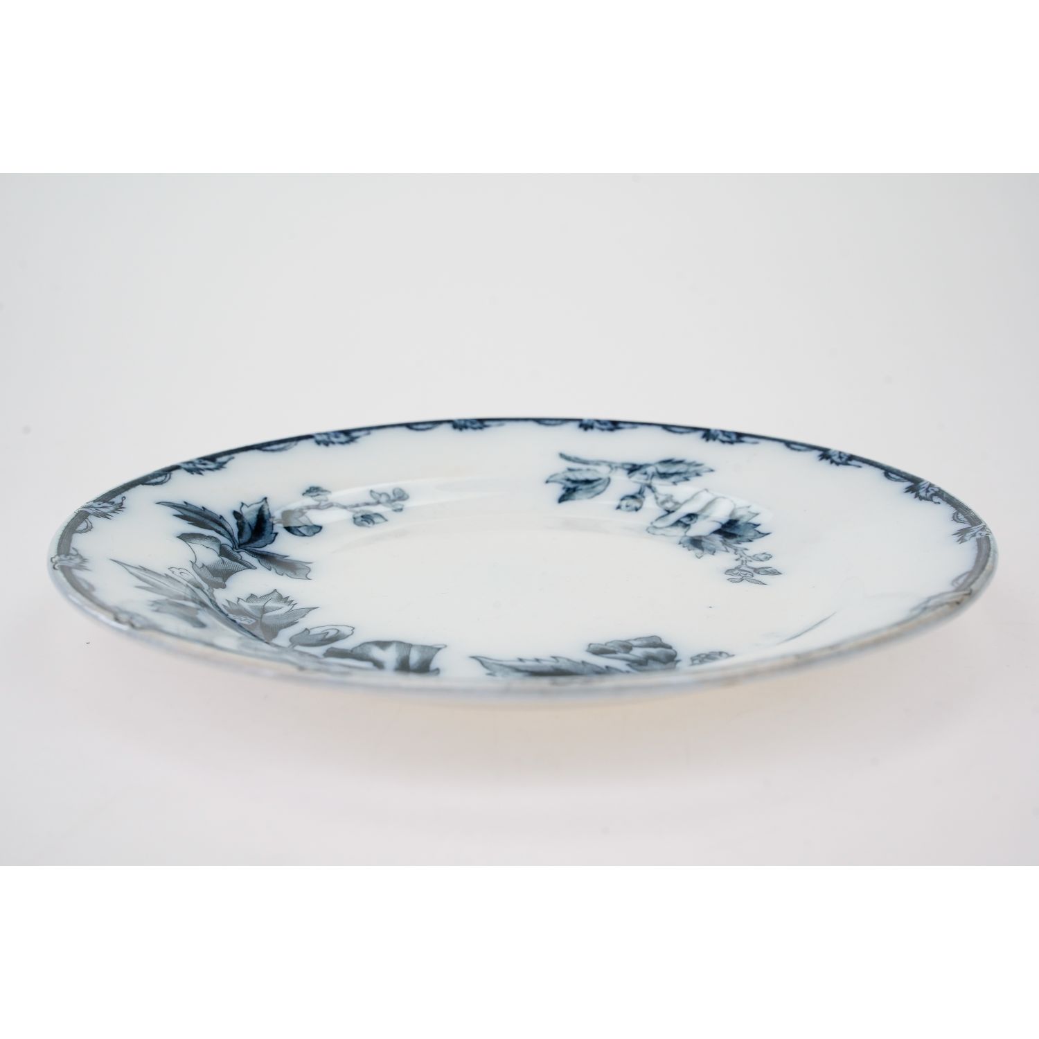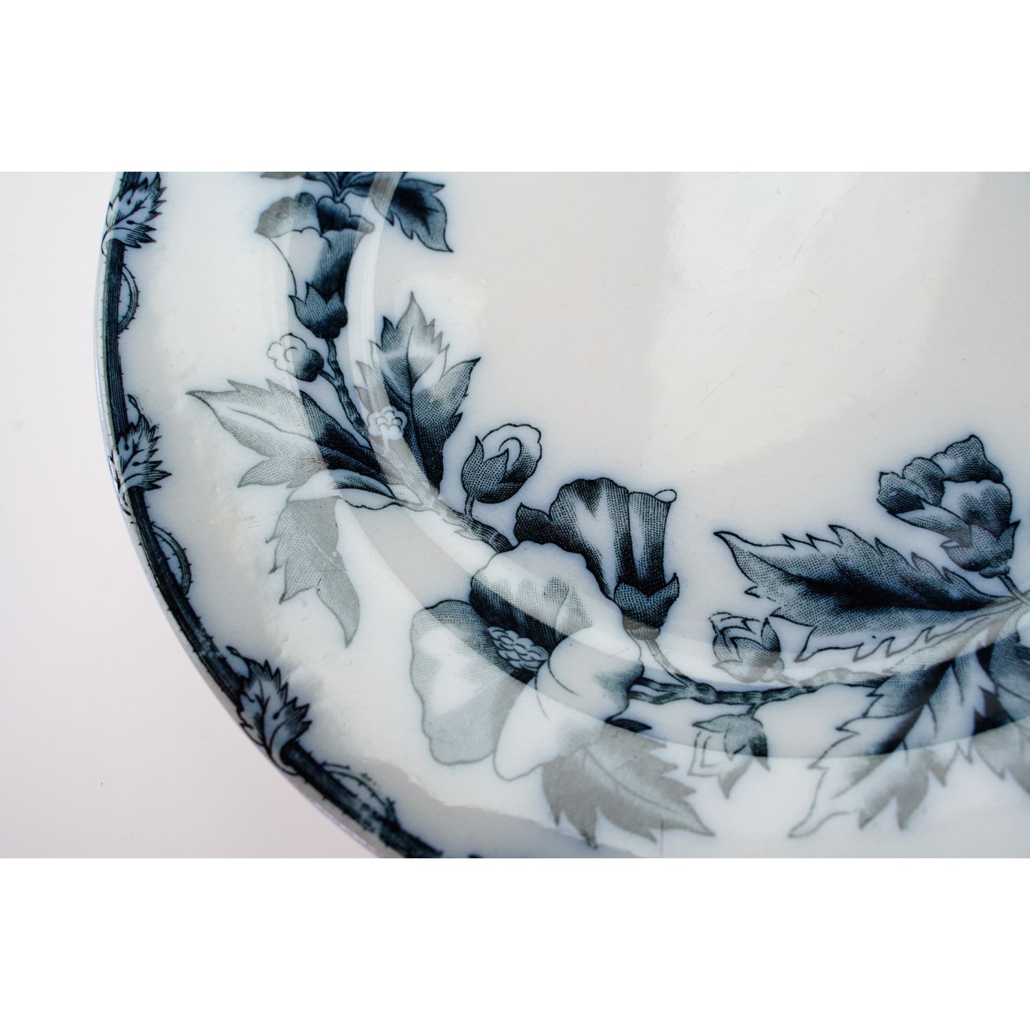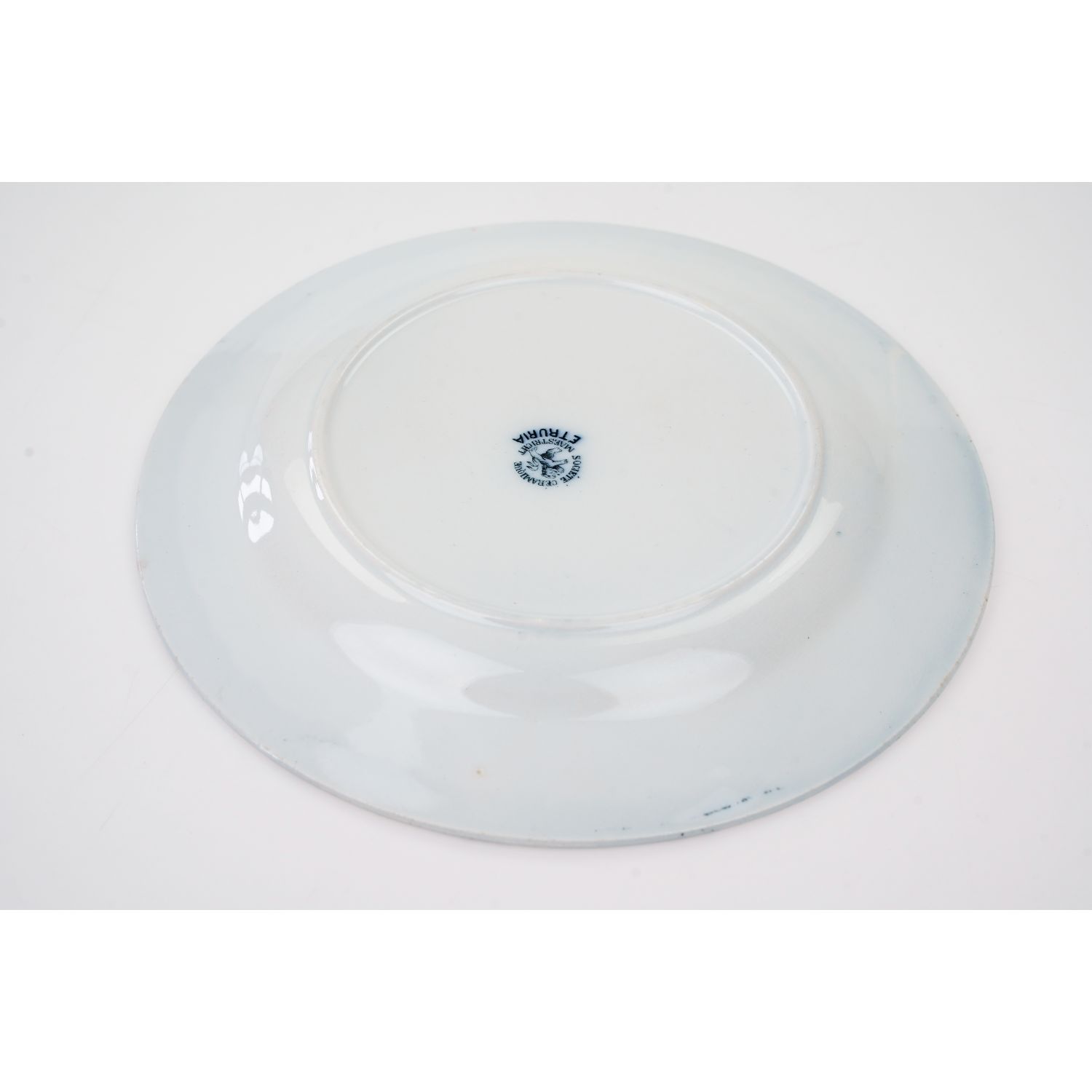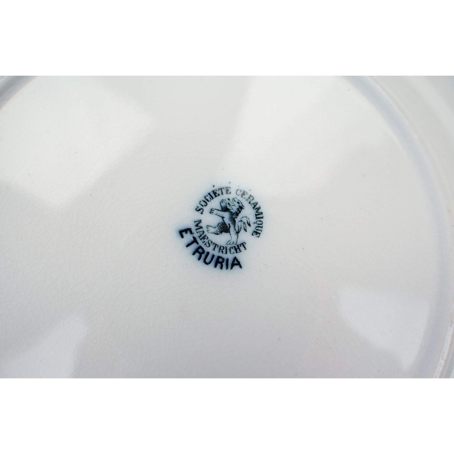 Pochodzi z Ceramique Societe Maastricht, Holandia, sygnowane znakiem stosowanym od 1885 do 1910 roku. Z kolekcji Etruria z dekoracją przedstawiającą kobaltowe kwiaty i ładnie wykończoną krawędzią. Całość w kolorze złamanej bieli lub jasnym kremie. Całość z przebarwieniami i krakelurą. Porcelana bardzo ładna, przedmiot wyjątkowo dekoracyjny, jak obraz!