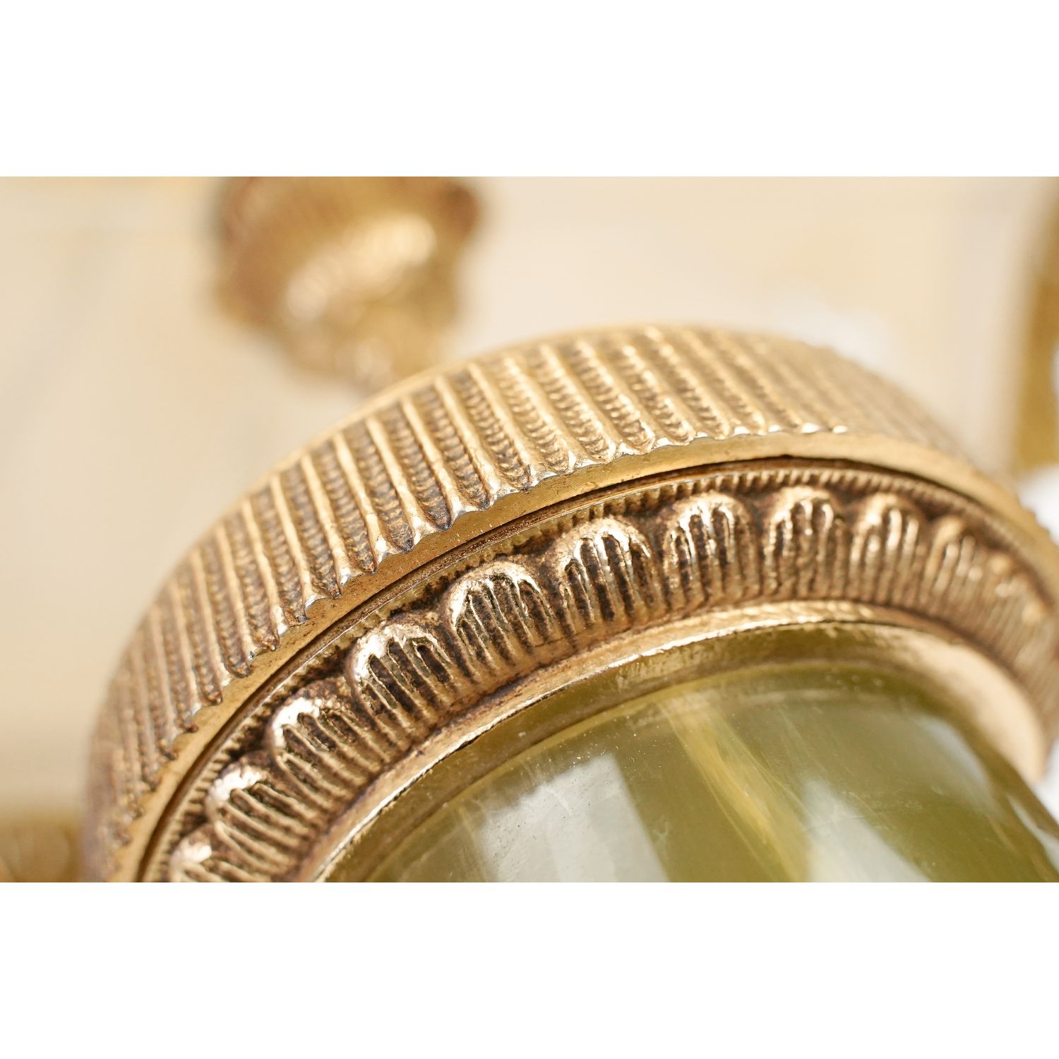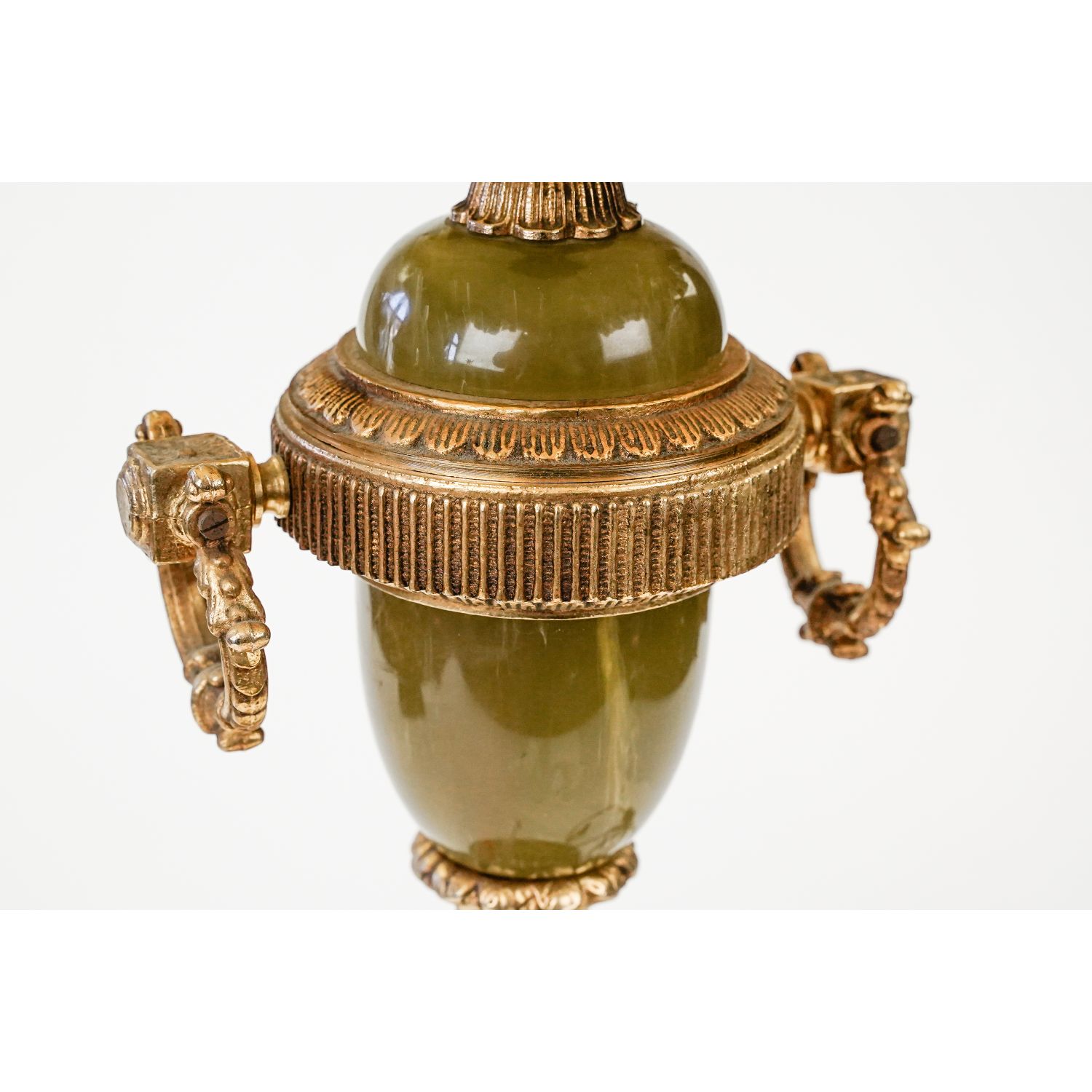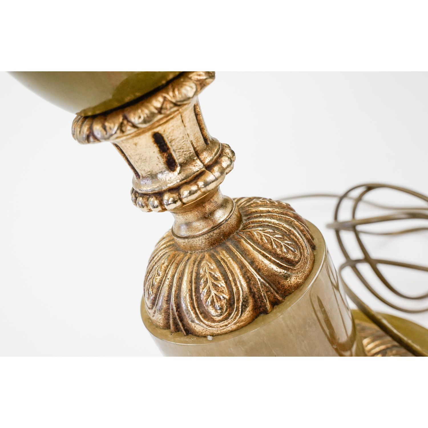 Przedmiotem sprzedaży jest podstawa lampy. Niepowtarzalna stylistyka i najwyższa jakość wykonania. Misterna konstrukcja podstawy wykonana z kamienia w zielonym kolorze z widocznymi żyłkami i mosiądzu z pięknymi uchwytami. Lampa posiada jeden punkt świetlny na żarówkę z dużym, standardowym gwintem. Ładna, klasyczna forma. Elektryka: przewód, wtyczka, włącznik o oprawka, wymienione.