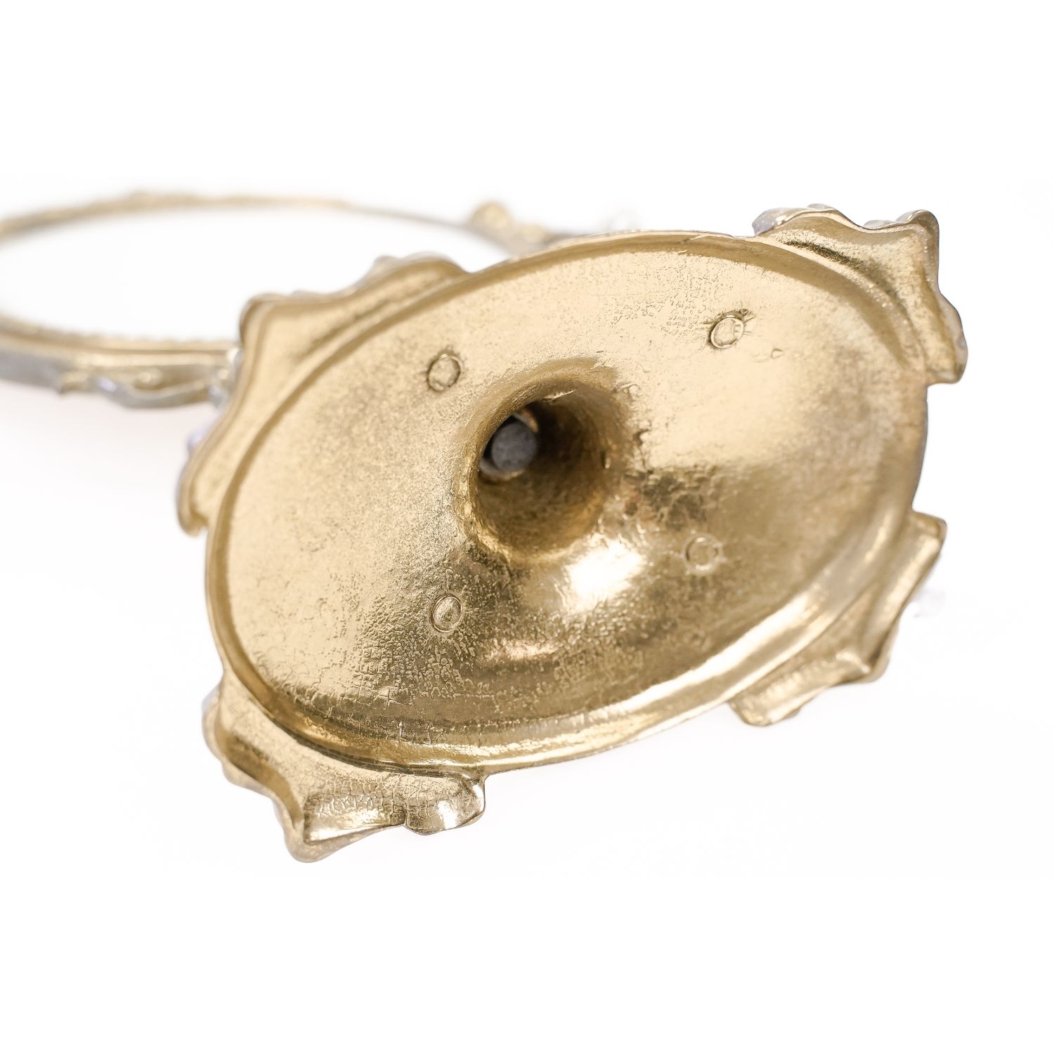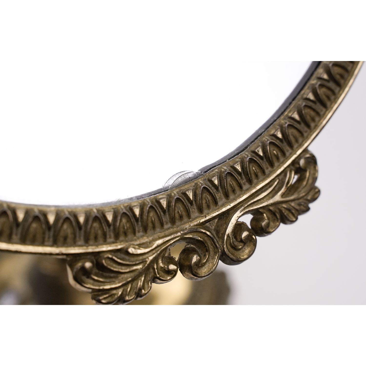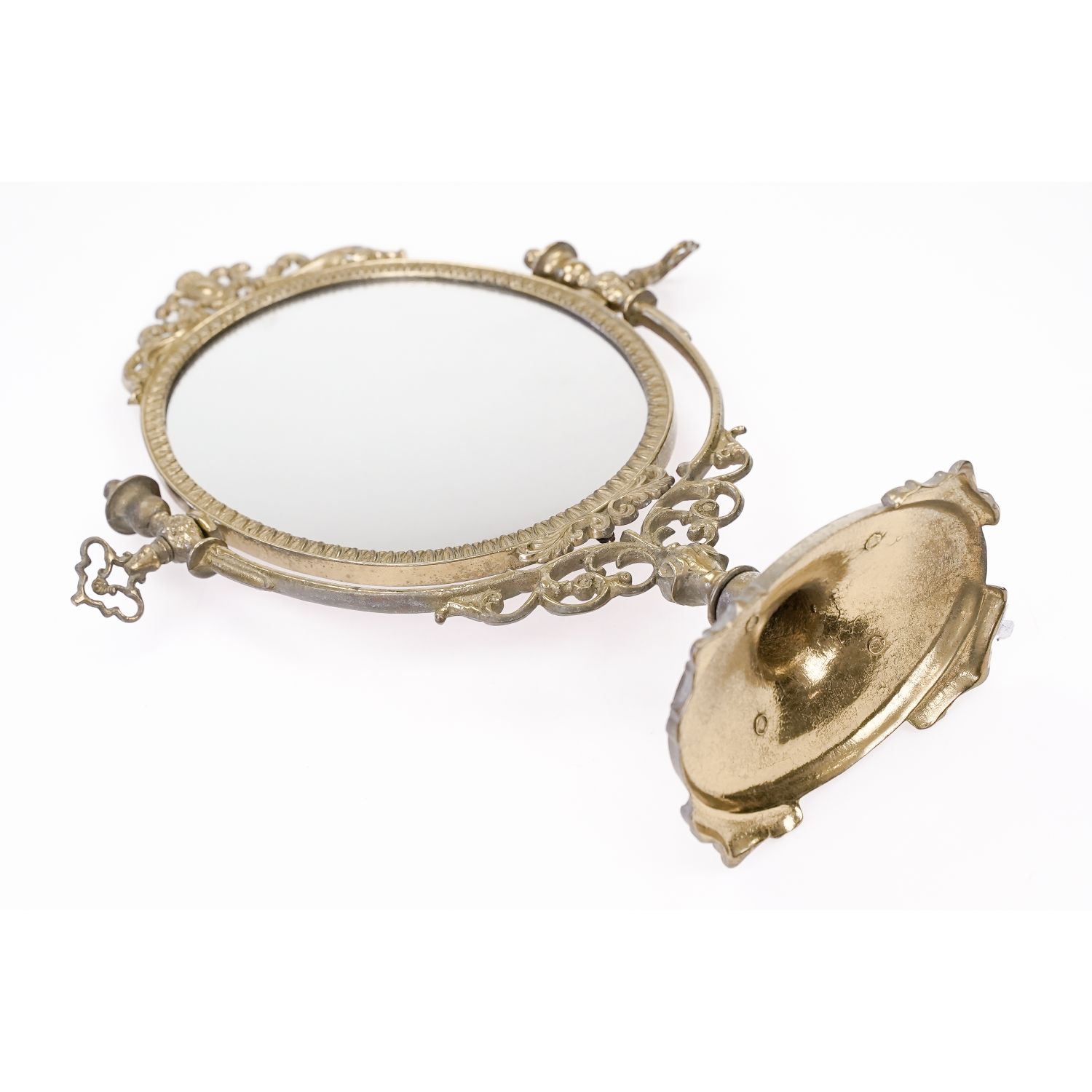 Oprawa posiada wygodną regulację, przez dokręcenie mosiężnych pokręteł. Można ustawić kąt położenia tafli. Lusterko zabezpieczone od tyłu tworzywem sztucznym. Szeroka podstawa na zdobionych nogach zapewnia stabilność przedmiotu.