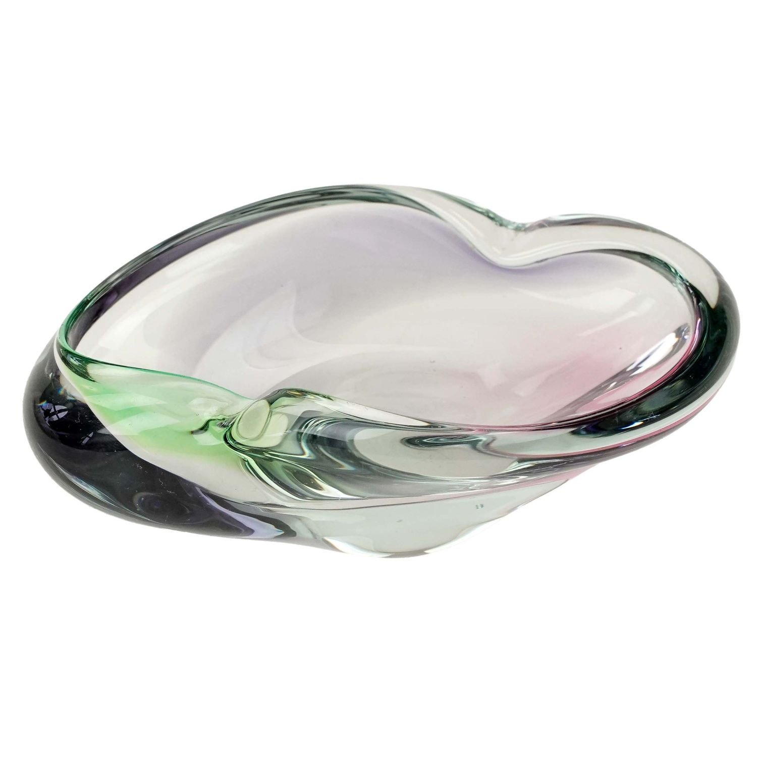 Pochodzi z Czech z miejscowości Mstišov. Naczynie wykonane ze szkła bezbarwnego połączonego z kolorowym: zielenią i różem, które wzajemnie się przenikają. O formie organicznej, asymetrycznej, co daje efekt ruchu, niepokoju. Spód szlifowany.
