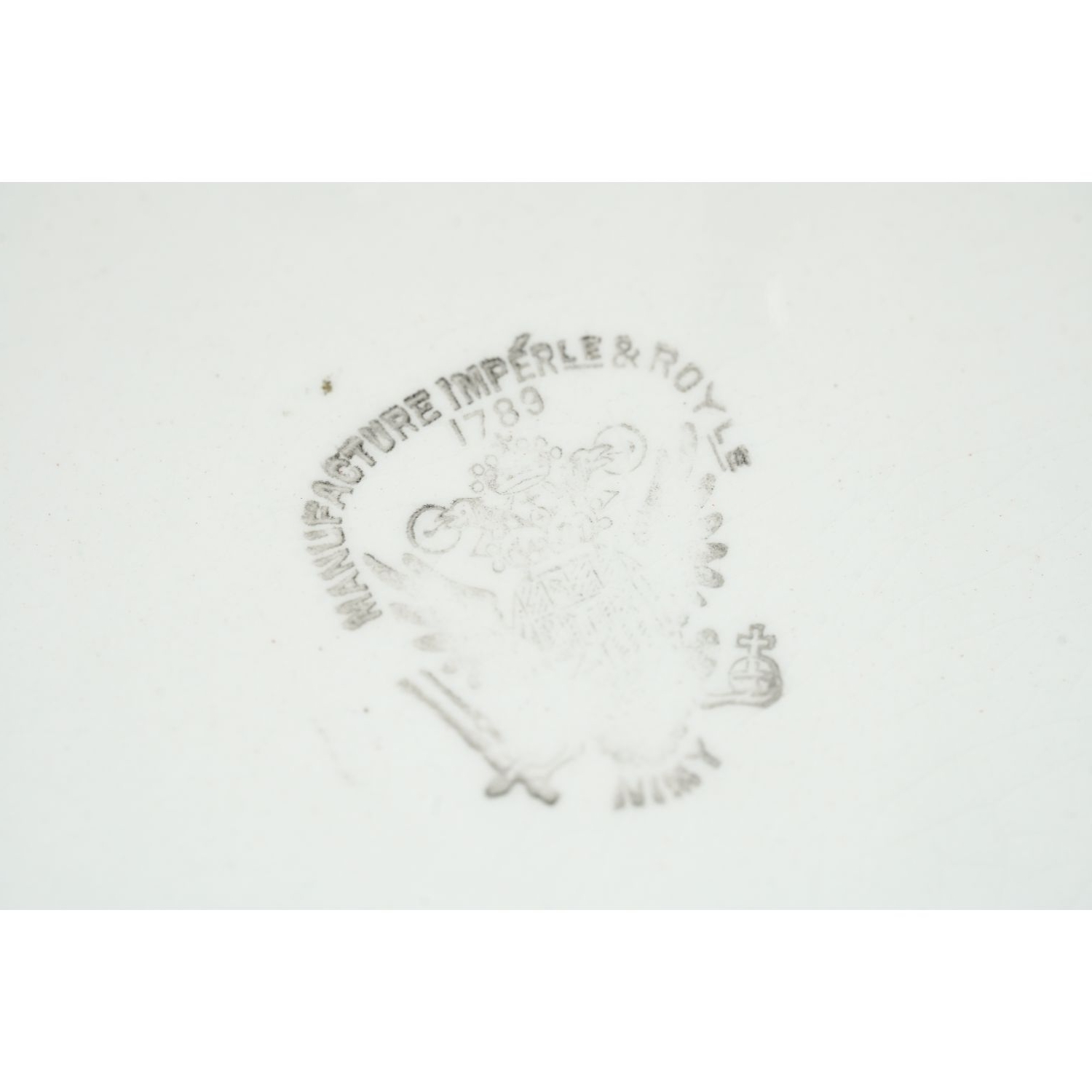 Pochodzi z Nimy z Manufacture Imperiale et Royale, Nimy, Fabrication Belge. Sygnowany znakiem stosowanym pomiędzy 1870 - 1920. Reliefowany i ręcznie malowany złotem i błękitną, cieniowaną malaturą. Śliczne kształty naczyń