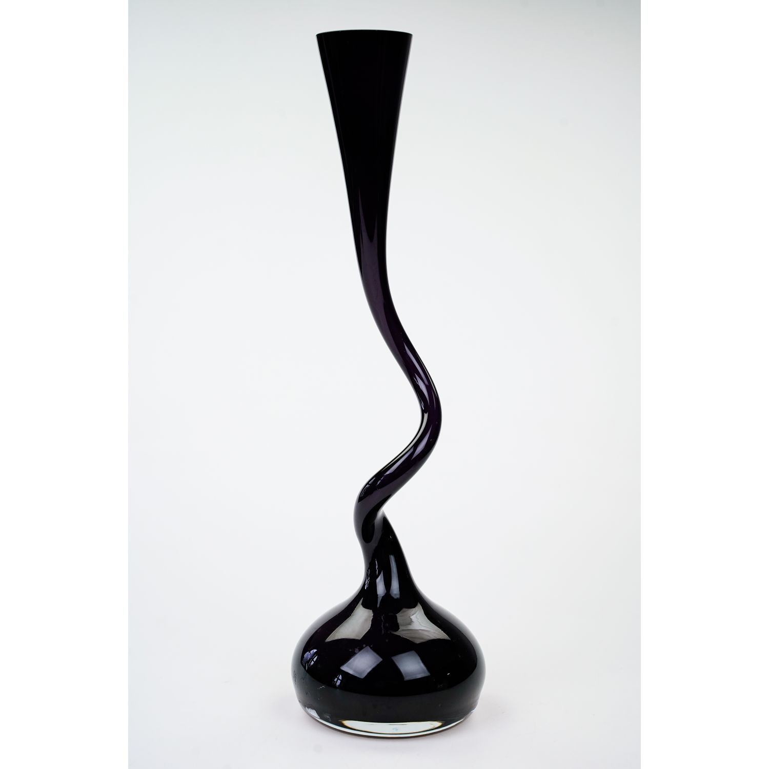 NORMANN KOPENHAGA B. BONNESEN SZKŁO ARTYSTYCZNE BAKŁAŻANOWY WAZON SWING ZE SKRĘCONĄ SZYJKĄ