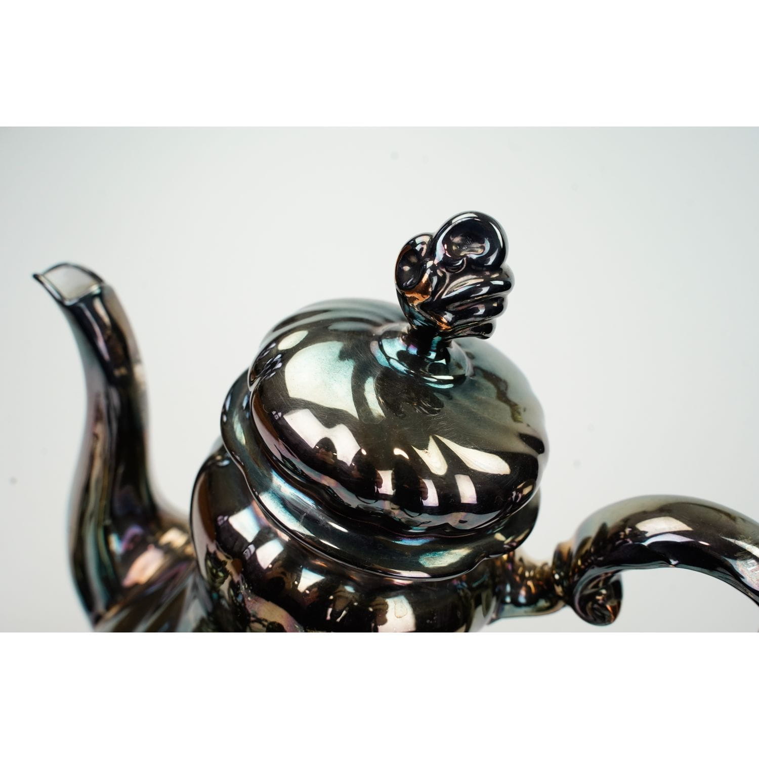 Nie posiada sygnatury. Powstał z doskonałej jakości białej porcelany. W całości pokryty srebrną powłoką (okuty srebrem). Elegancka i wytworna reliefowana, "falująca" forma. Wspaniała ręczna praca.