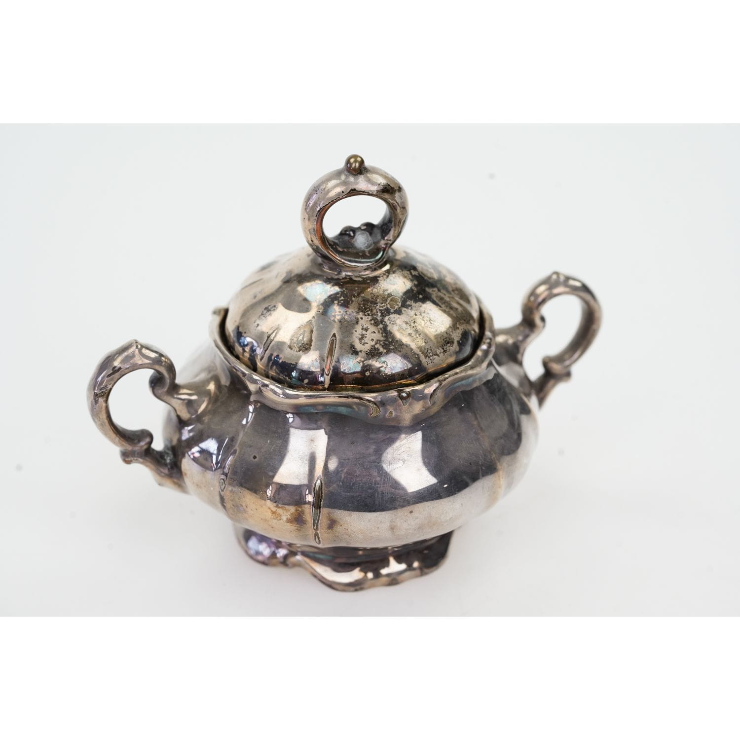 Stan całości bardzo dobry=, przedmiot przeze mnie nie był czyszczony, z naturalną patyną i z małymi otarciami srebrnej powłoki na krawędziach.