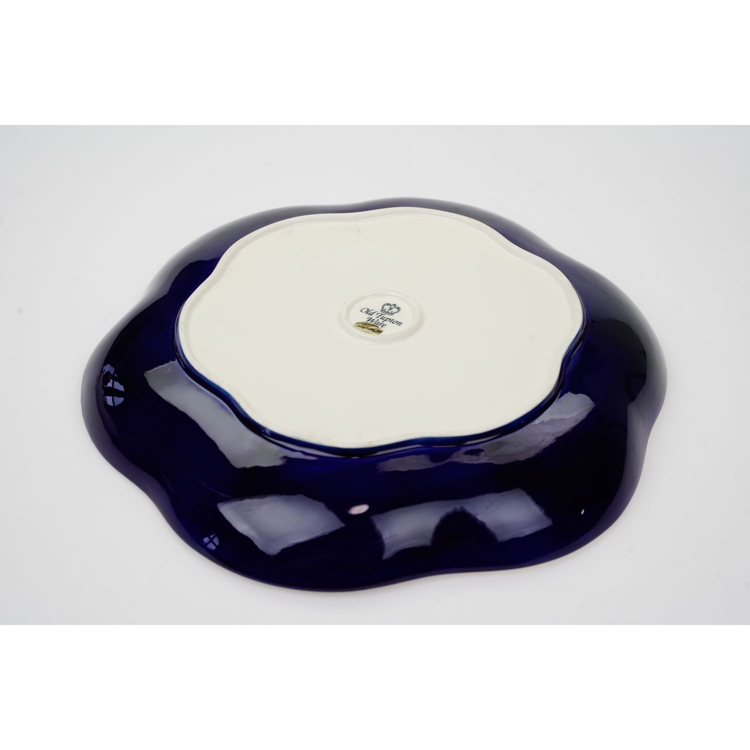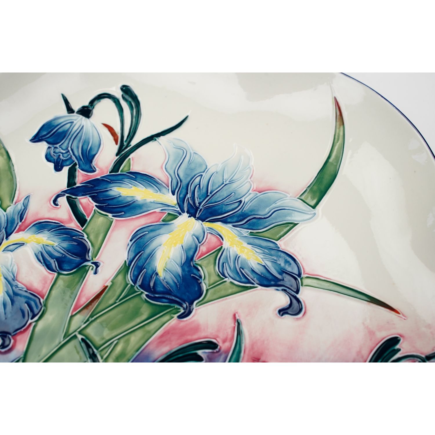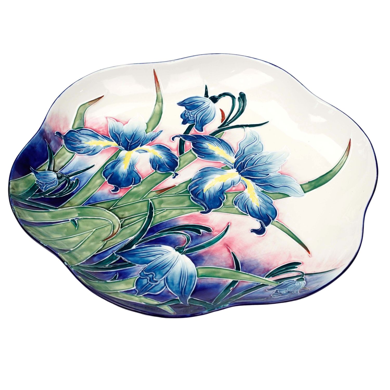 Old Tupton Ware to ceniona marka w dziedzinie współczesnej ceramiki, specjalizująca się w charakterystycznym brytyjskim stylu ceramiki artystycznej. Nazwana na cześć wioski Tupton w Derbyshire, marka stała się synonimem misternych wzorów kwiatowych, które łączą klasyczną estetykę Arts and Crafts z nowoczesnymi wyrobami. Każdy egzemplarz przechodzi rygorystyczny, wieloetapowy proces, w którym jest ręcznie odlewany, ręcznie wyściełany wypukłą masą, reliefem a na koniec ręcznie malowany, a następnie wypalany w wysokiej temperaturze, aby uzyskać charakterystyczne, błyszczące wykończenie. Patera ma falowaną krawędź z kwiatową dekoracją przedstawiającą Irysy. Inspirowana stylem secesyjnym.