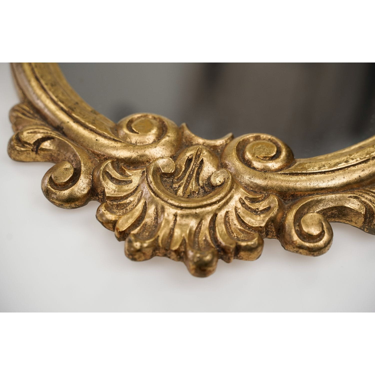 Rama wykonana z masy plastycznej, pokryta powłoką w kolorze starego złota z ozdobnymi zawijasami i muszlami. Gotowe do zawieszenia. Idealne do wnętrza z antykami. Sprawdzi się w łazience, przedpokoju, czy salonie.