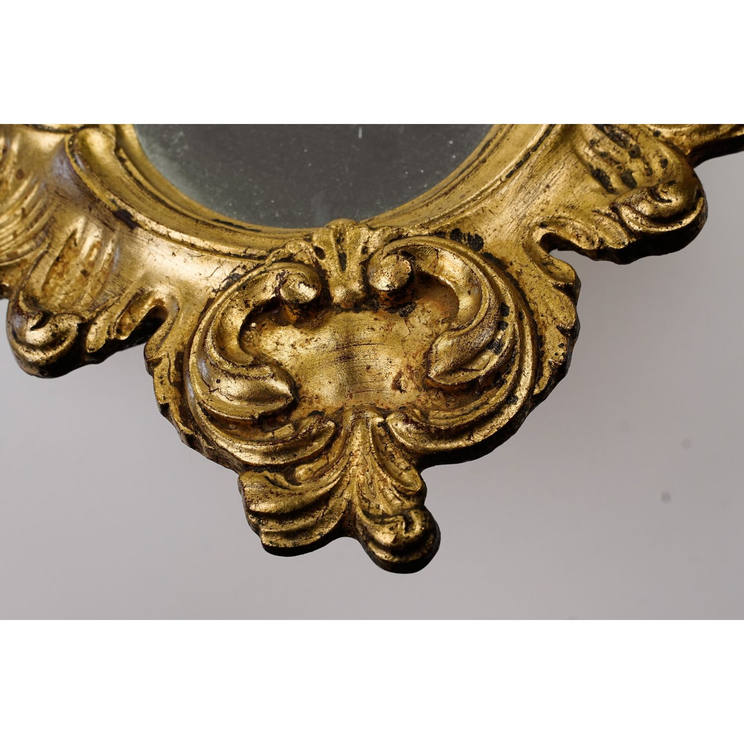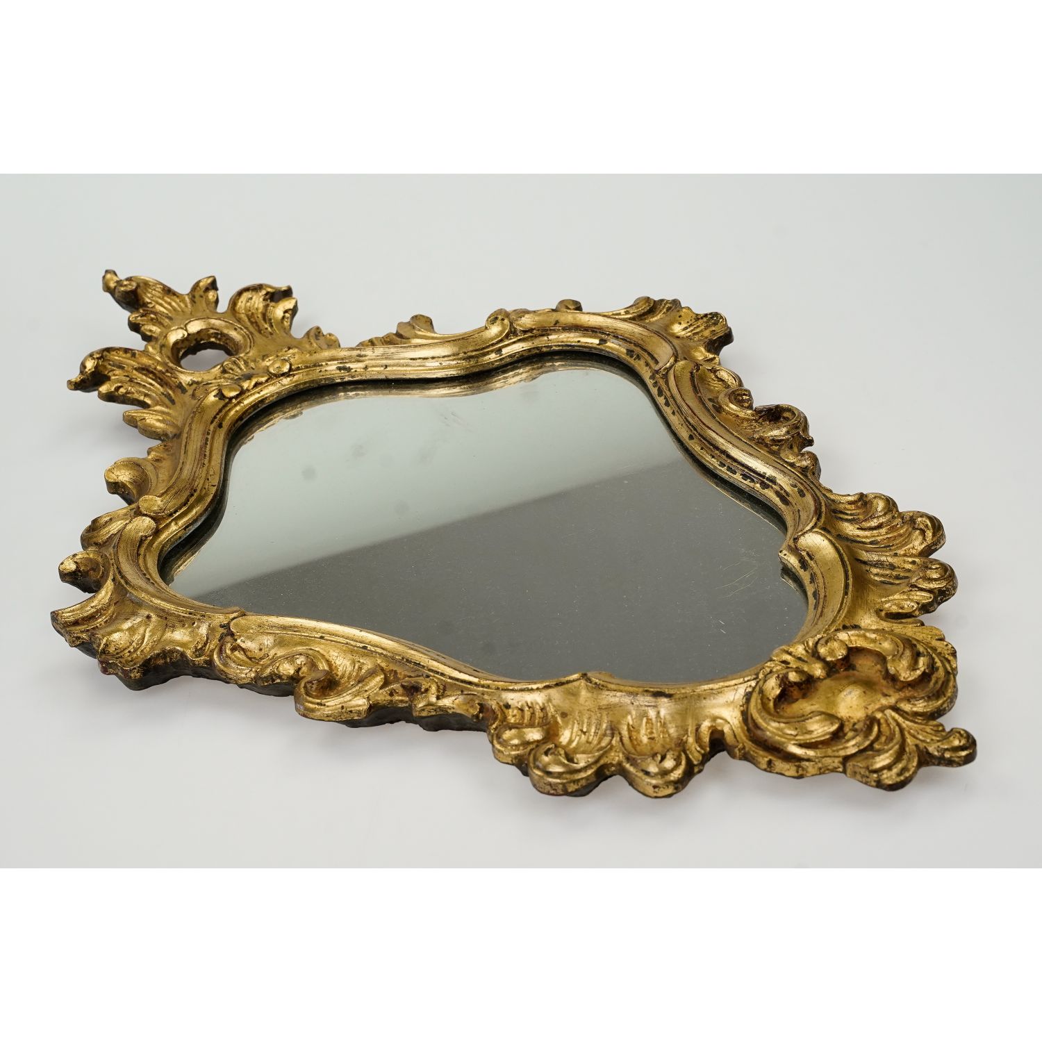 Rama wykonana z masy plastycznej, pokryta powłoką w kolorze starego złota z ozdobnymi zawijasami i muszlami. Gotowe do zawieszenia. Idealne do wnętrza z antykami. Sprawdzi się w łazience, przedpokoju, czy salonie.