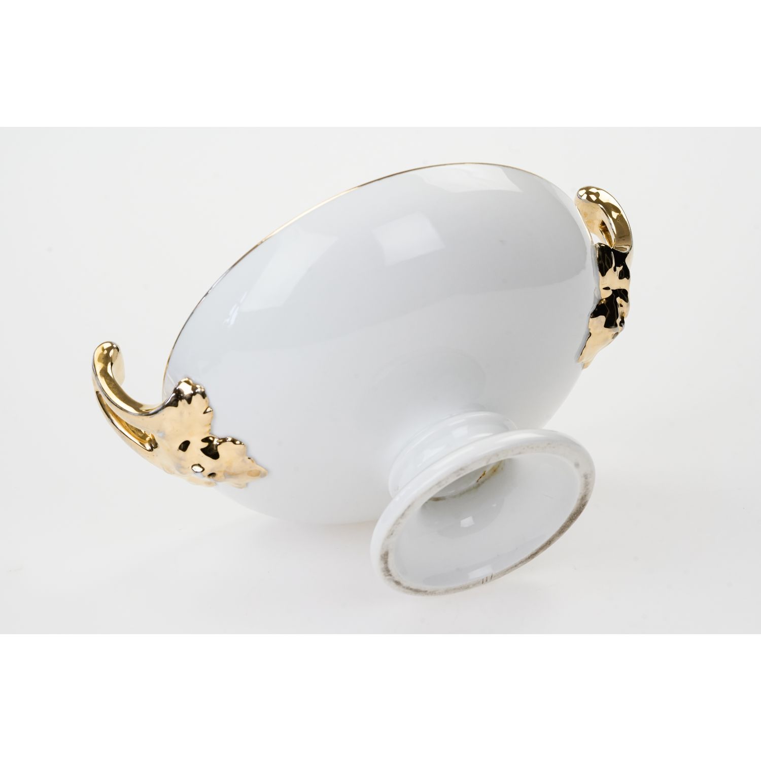 Pochodzi z Czech z miejscowości Březová (niem. Pirkenhammer), z OEPIAG - Österreichische Porzellan-Industrie AG Sygnowana bardzo krótko stosowanym znakiem w okresie od 1918 do 1938 roku. Patera osadzona na stopie. Ze ślicznie uformowanymi uszami u podstaw których są duże maszkarony w pełni złocone. Ranty w delikatnych złoceniach.