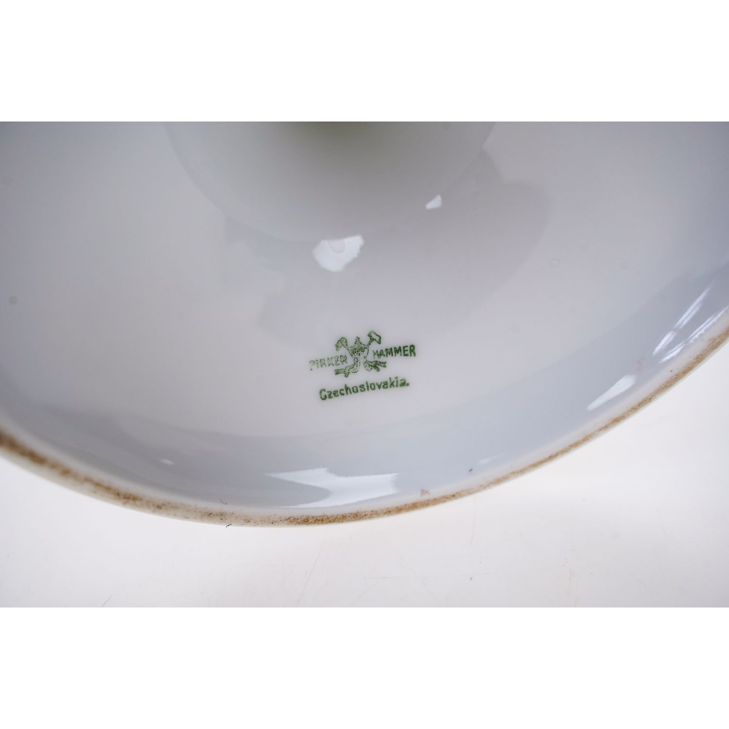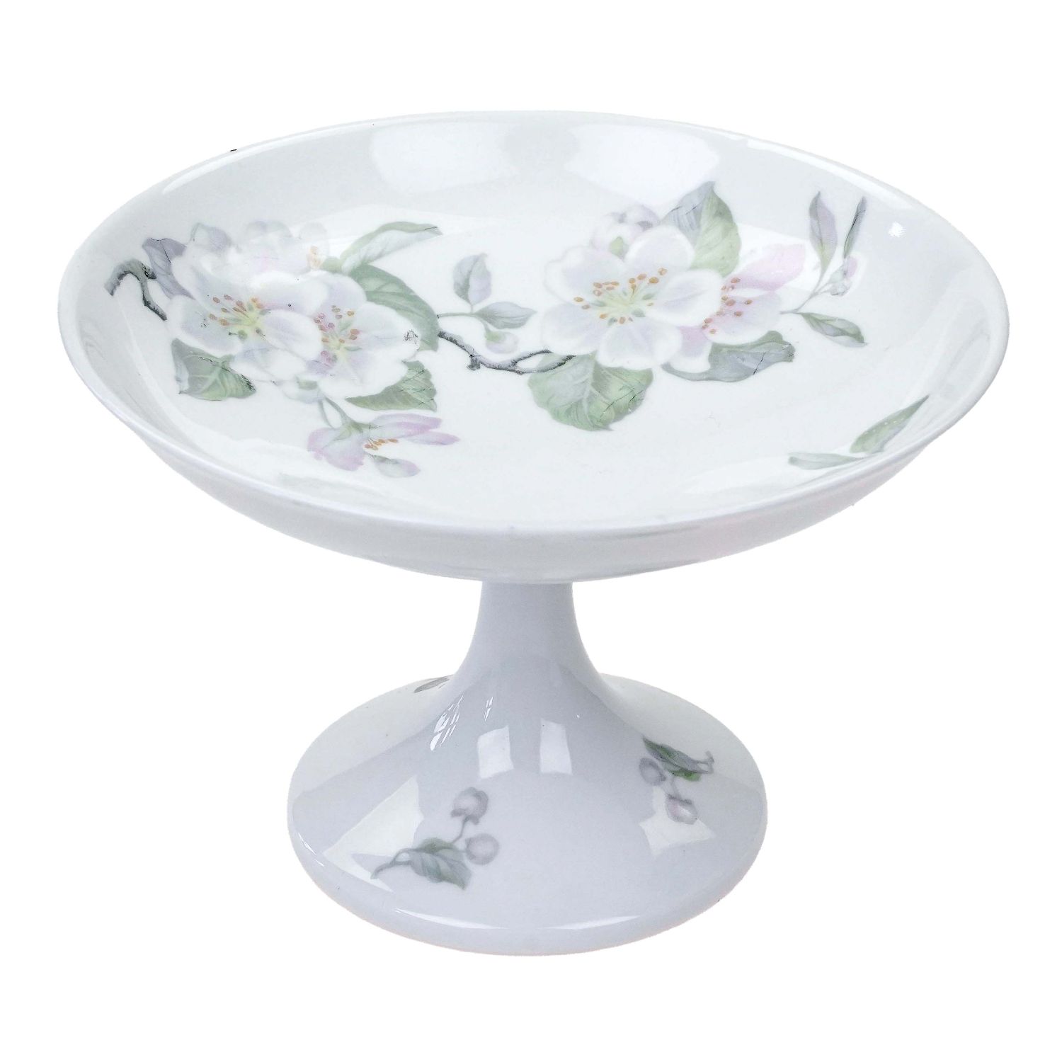 Pochodzi z Czech z miejscowości Březová (niem. Pirkenhammer), z OEPIAG - Österreichische Porzellan-Industrie AG Sygnowana bardzo krótko stosowanym znakiem w okresie od 1918 do 1938 roku. Patera osadzona na stopie. Ozdobiona gałązkami kwitnącej jabłoni w pastelowych, przyjemnych barwach.