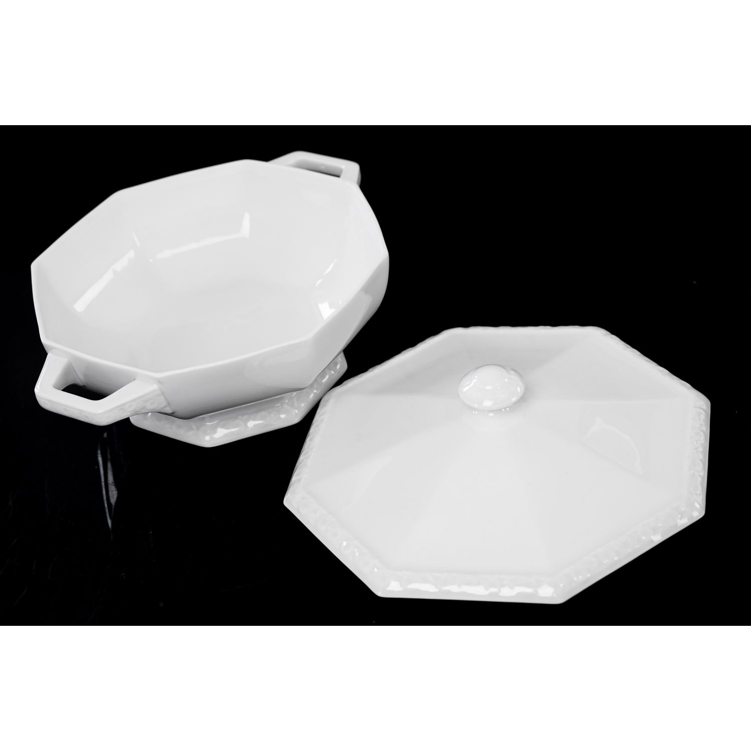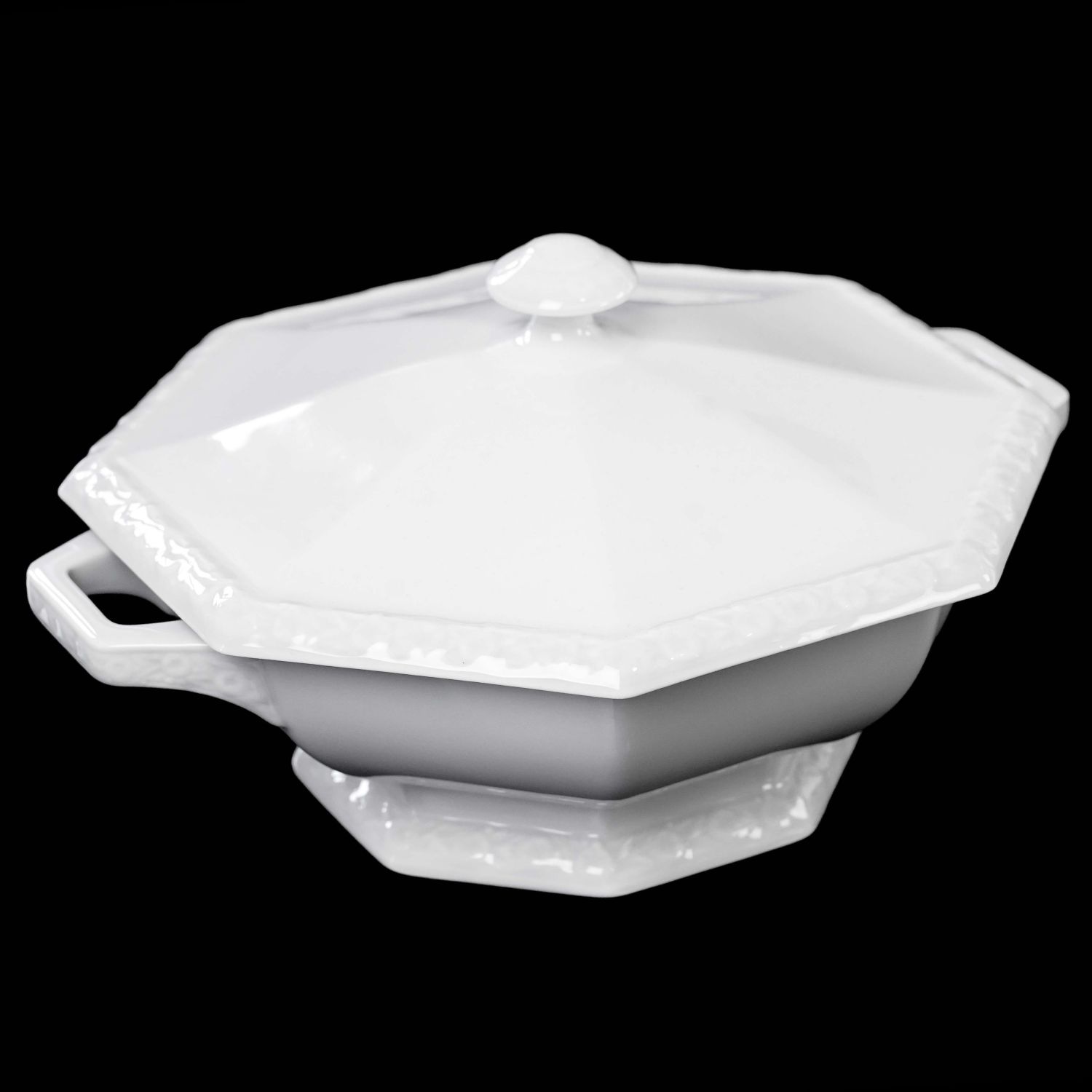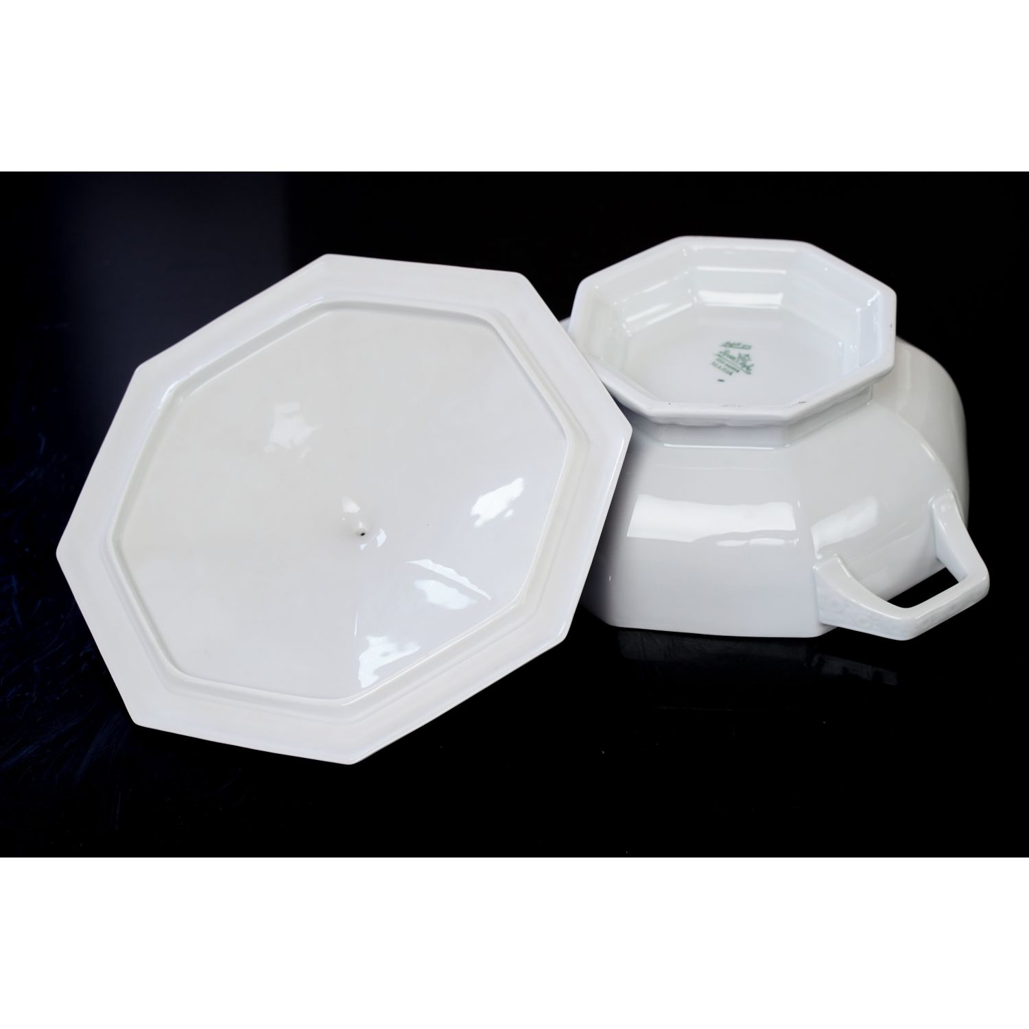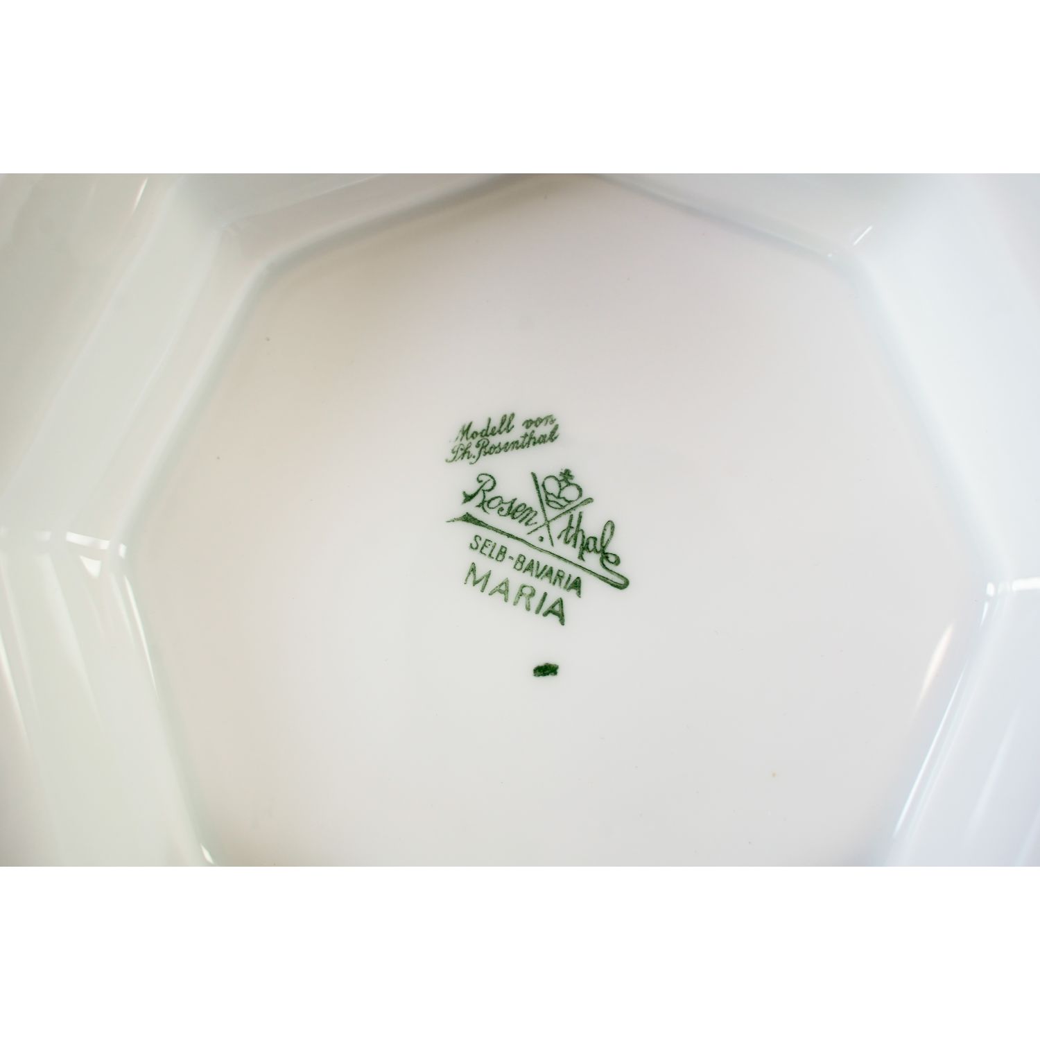 Pochodzi z wytwórni Rosenthala. Sygnowana znakiem stosowanym w 1923 roku, model Maria. Z dopiskiem "Modell von Ph. Rosenthal". Graniasta forma z typowymi dla modelu reliefami przedstawiającymi wianuszek kwiatów granatu. Forma jest jedyną dekoracją, porcelana bez złoceń, malatury a więc klasyczna Maria weiß (biała Maria).