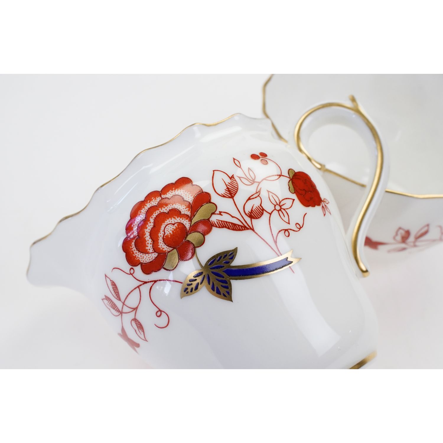 Pochodzi z angielskiej wytwórni Royal Crown Derby, która jest cenionym angielskim producentem porcelany. Sygnowany znakiem z 1975 roku. Wykonany z porcelany kostnej z dekoracją zwaną Bali, zachwyca pięknym stylem Imari z czerwonymi kwiatami, atramentowym błękitem i złotymi detalami. Ten piękny, żywy wzór Bali jest produkowany przez Royal Crown Derby od 1975 roku.