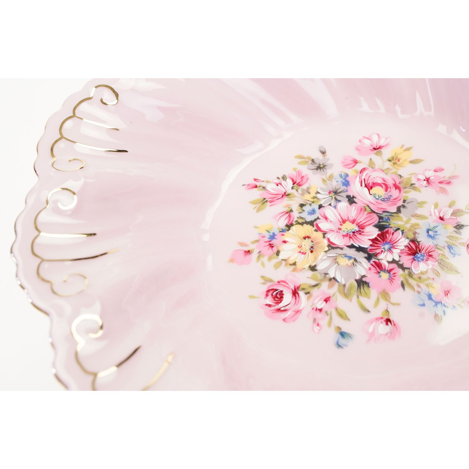 Pochodzi z Czech z miejscowości Loučky z wytwórni porcelany Rudolf Kämpf z którą współpracują marki korporacyjne: Rudolf Kämpf — luksusowa porcelana ręcznie produkowana, Leander. Fason Felicie. Porcelana w kolorze różowym, którą to barwę otrzymuje się przez dodatek złota. Ma prostą formę z ukośnymi kanelowaniami i falowaną górną i dolną krawędzią podkreśloną złoceniem. Udekorowana ręcznie podmalowywanymi kwiatami na dnie. Całości dopełniają złocenia na krawędziach.