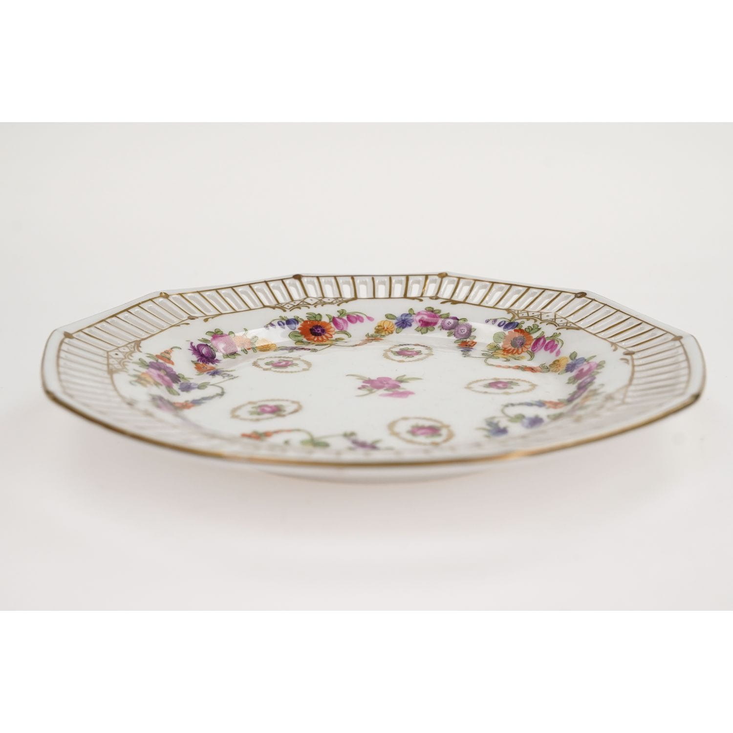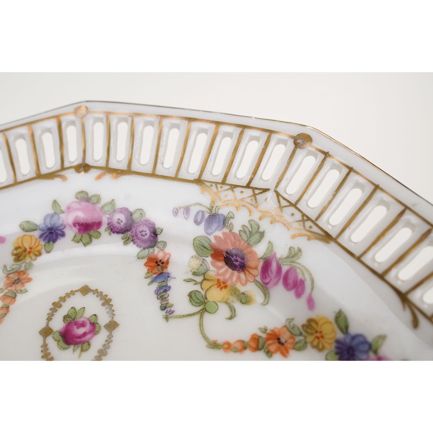 SCHUMANN PARA UROCZYCH AŻUROWYCH TALERZYKÓW GIRLANDY BARWNYCH KWIATÓW